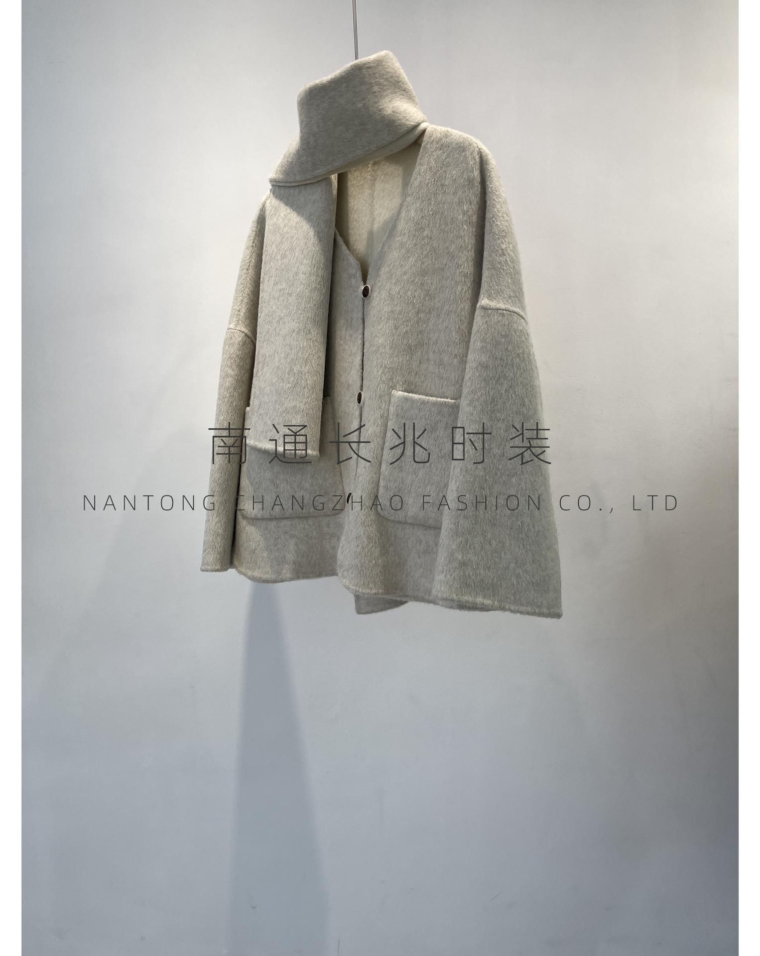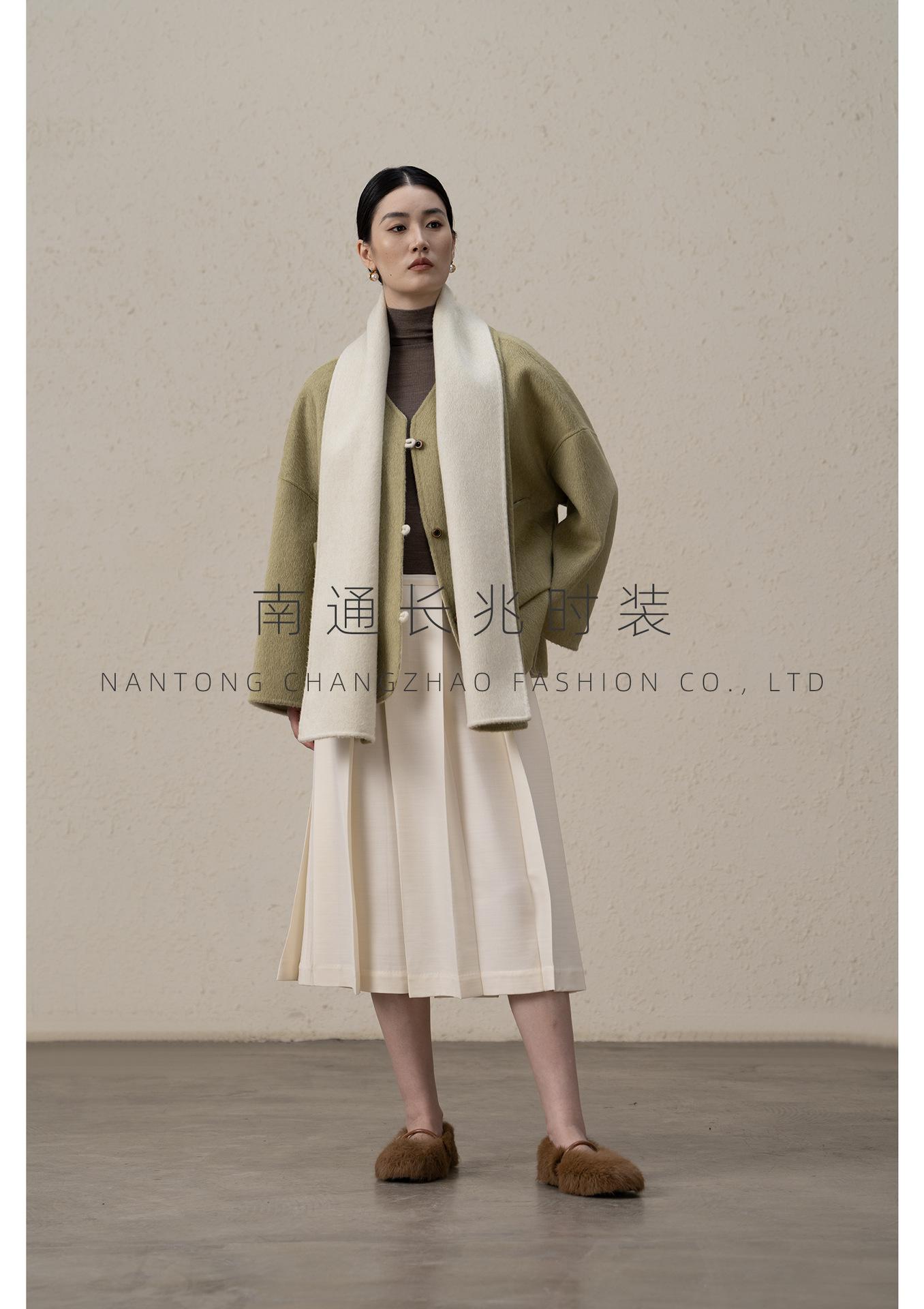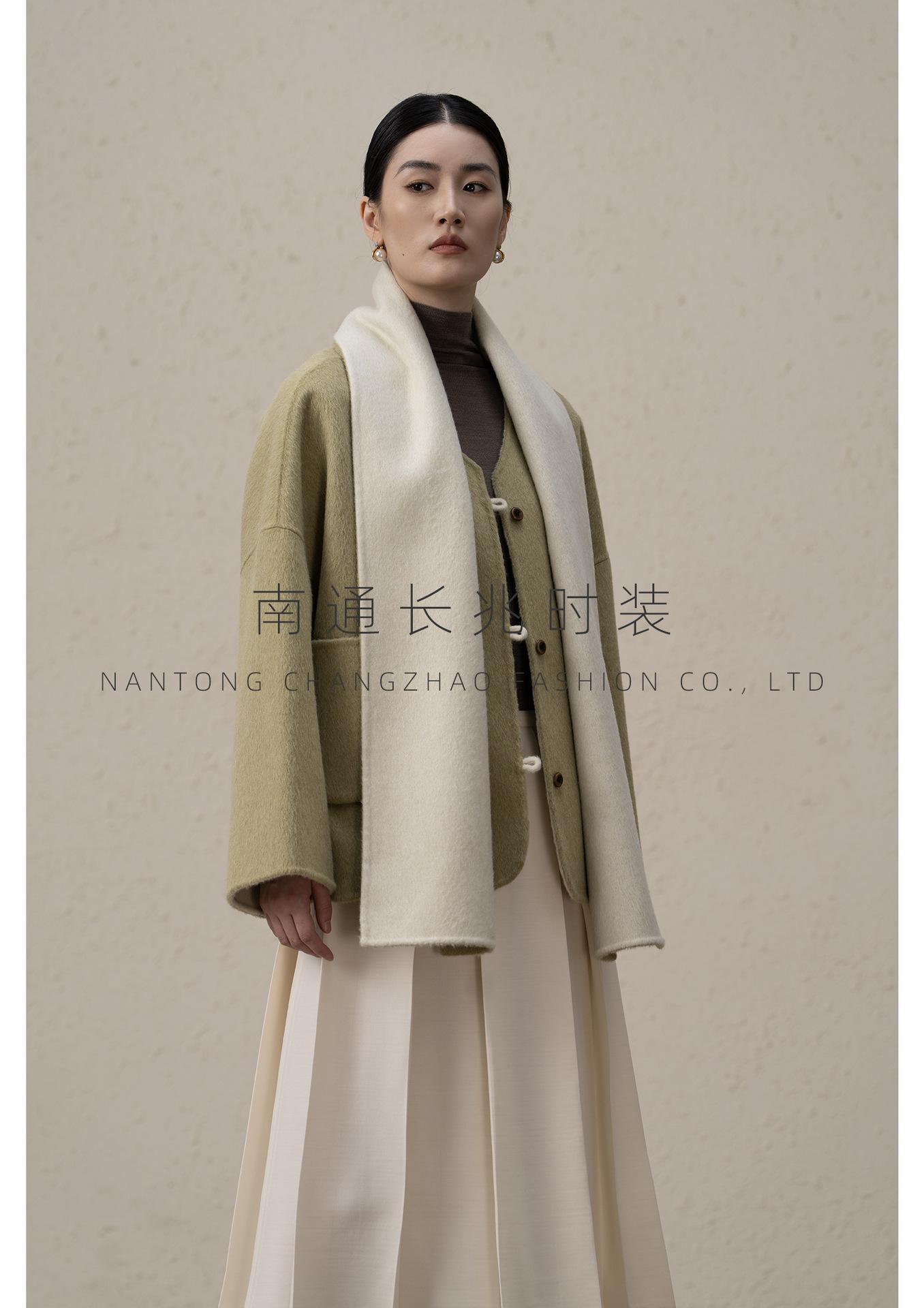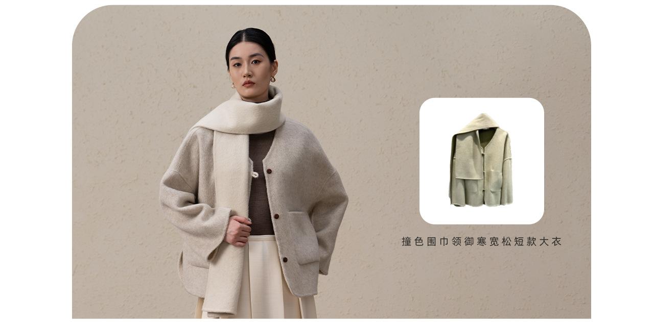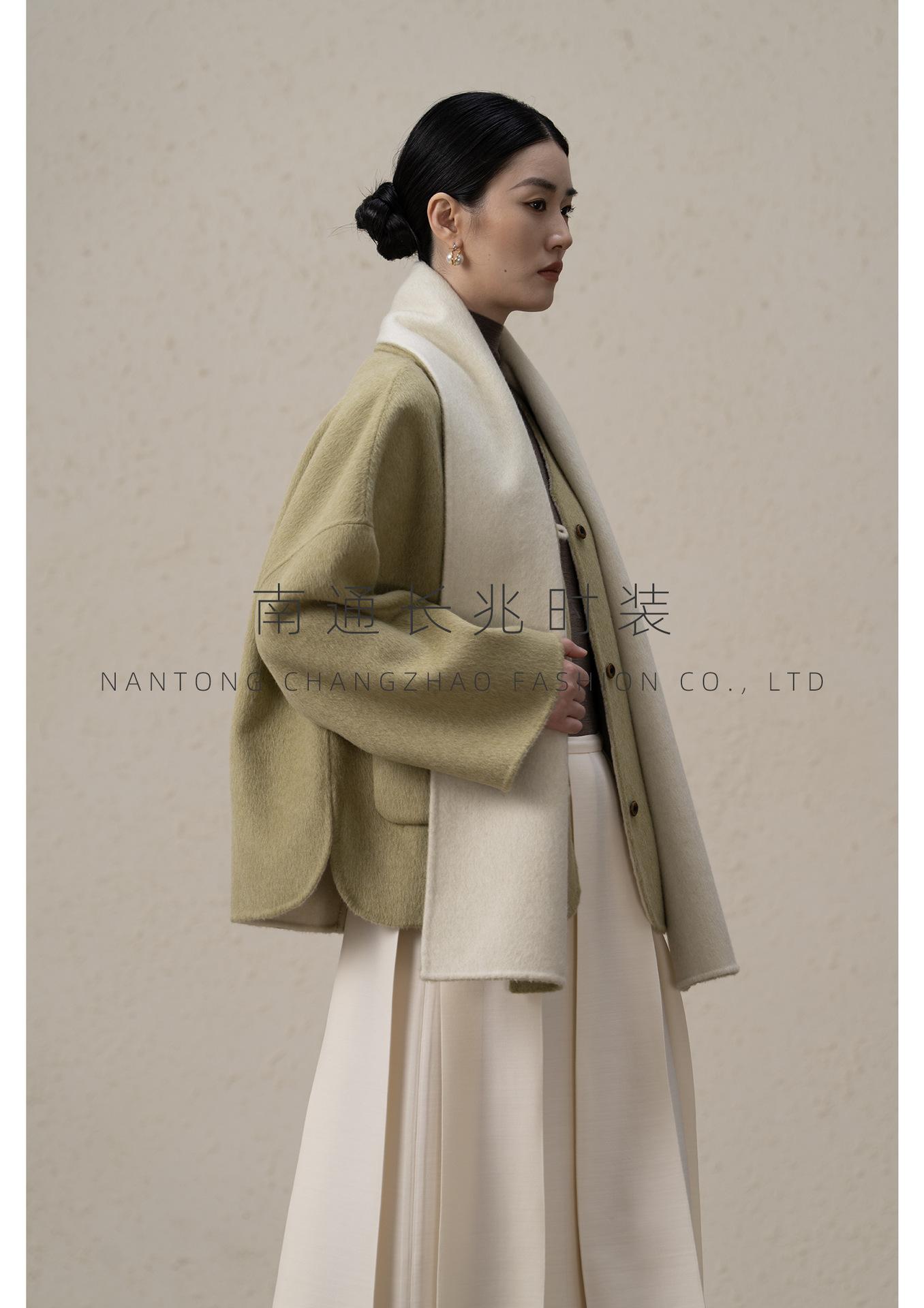 Abrigo corto reversible de doble faz de mezcla de lana, estilo bufanda color block, para mujer, otoño e invierno, exterior de longitud media, nicho