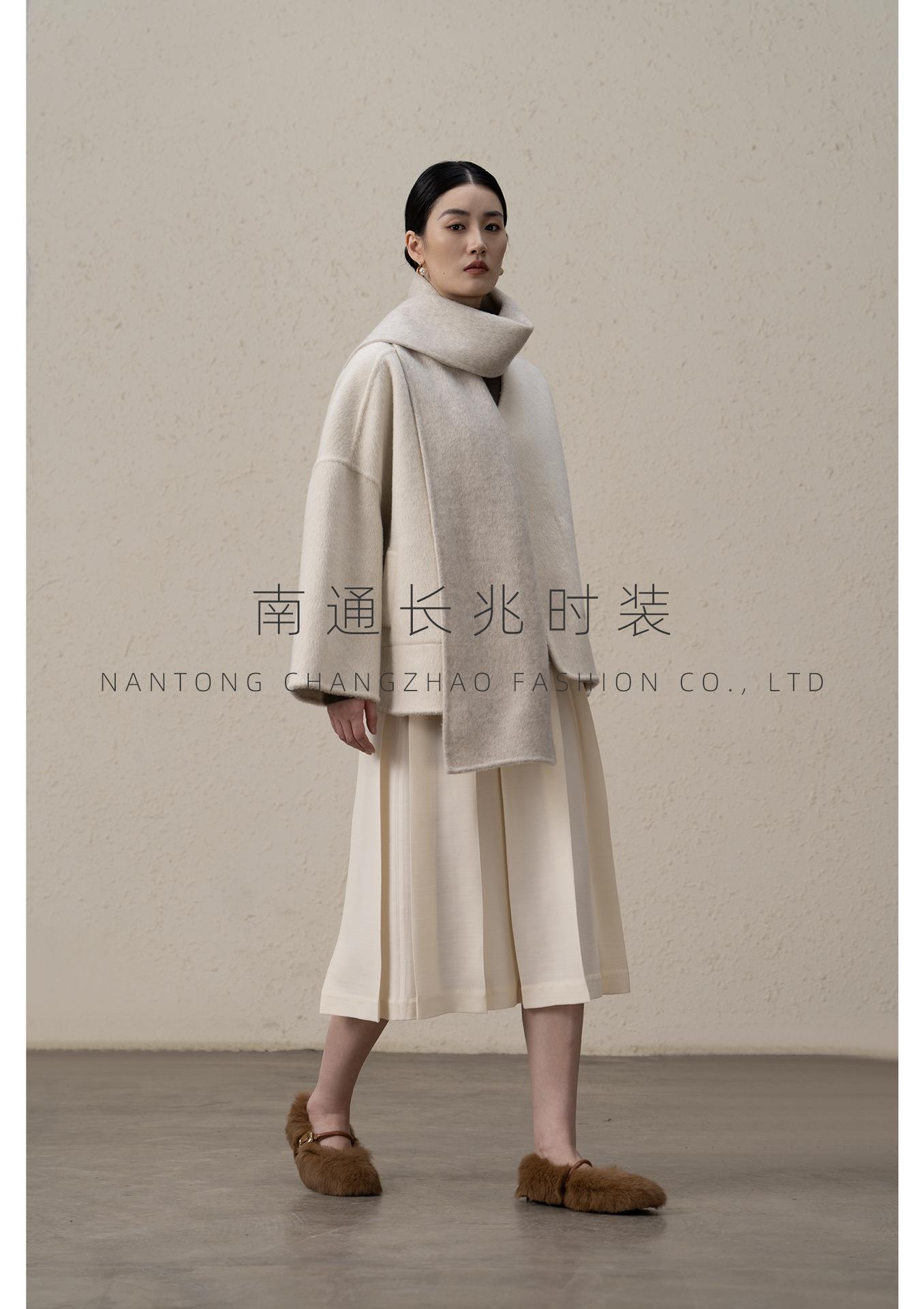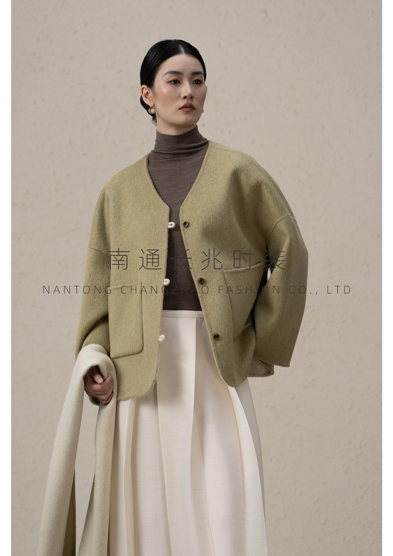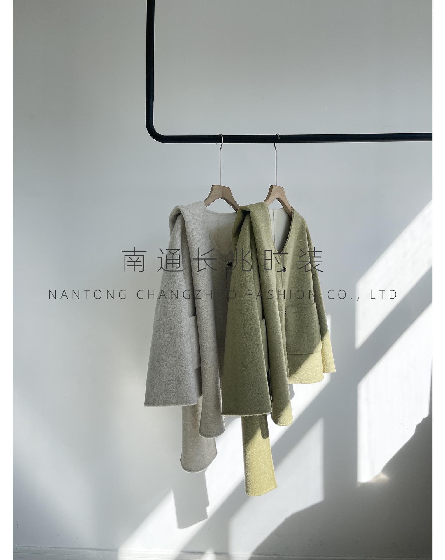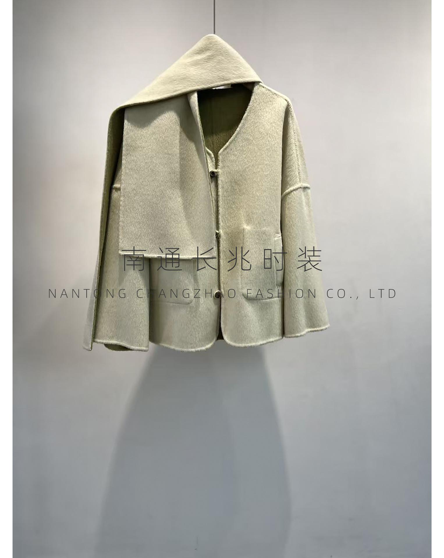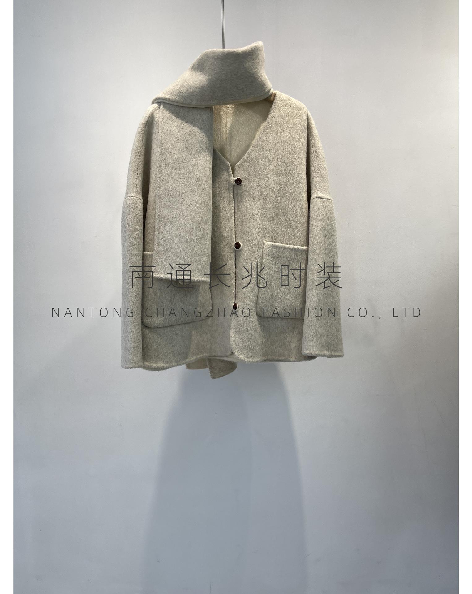 Abrigo corto reversible de doble faz de mezcla de lana, estilo bufanda color block, para mujer, otoño e invierno, exterior de longitud media, nicho