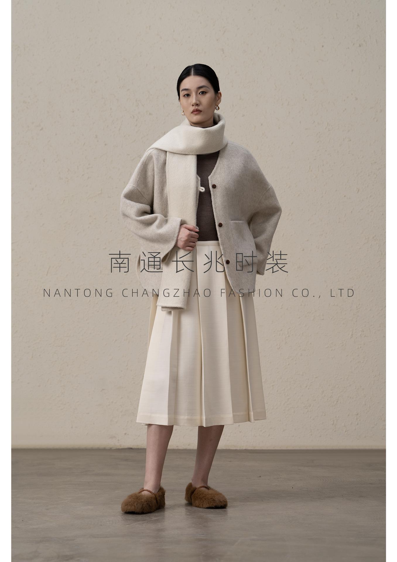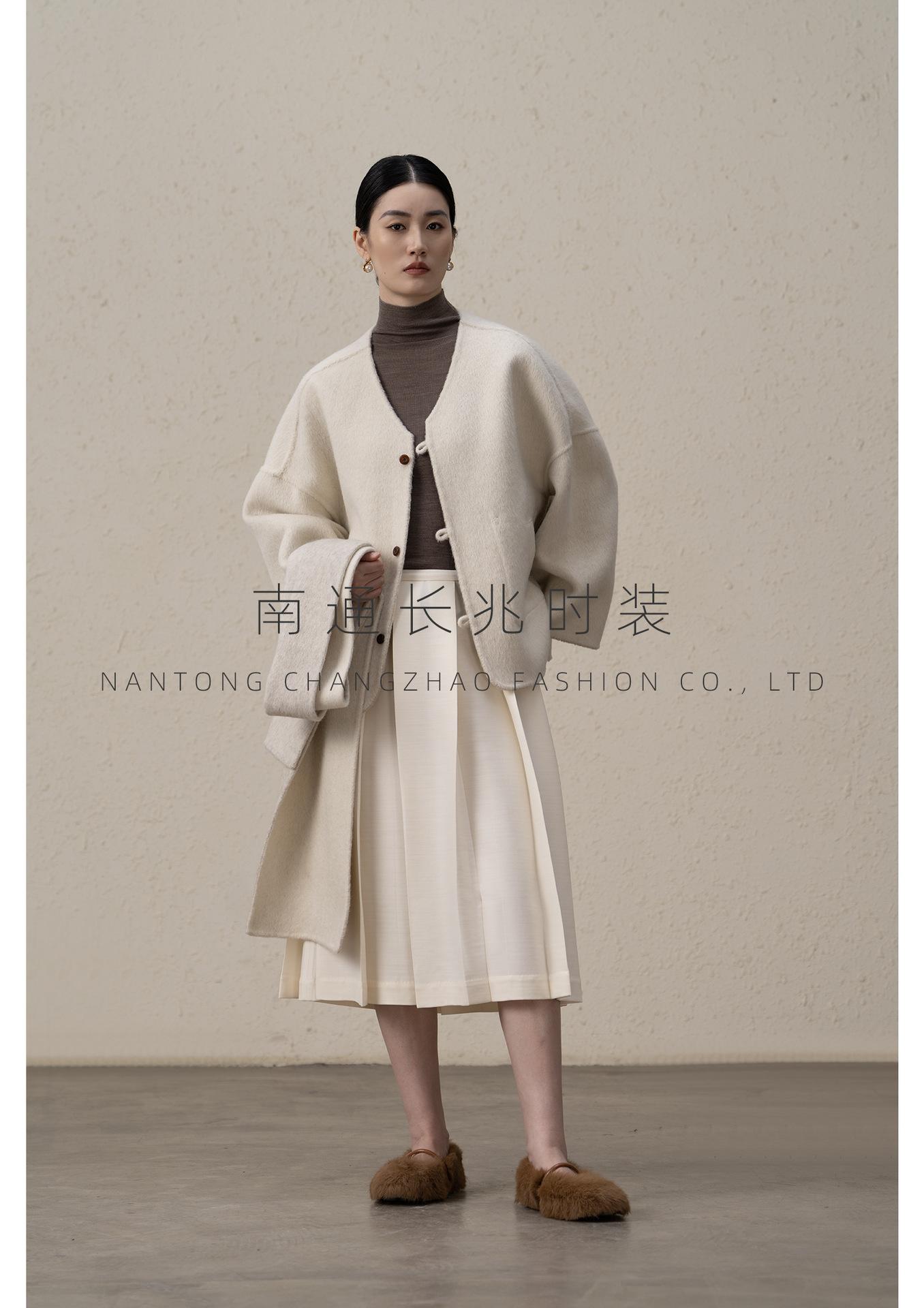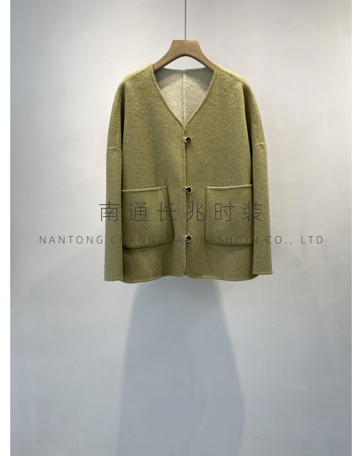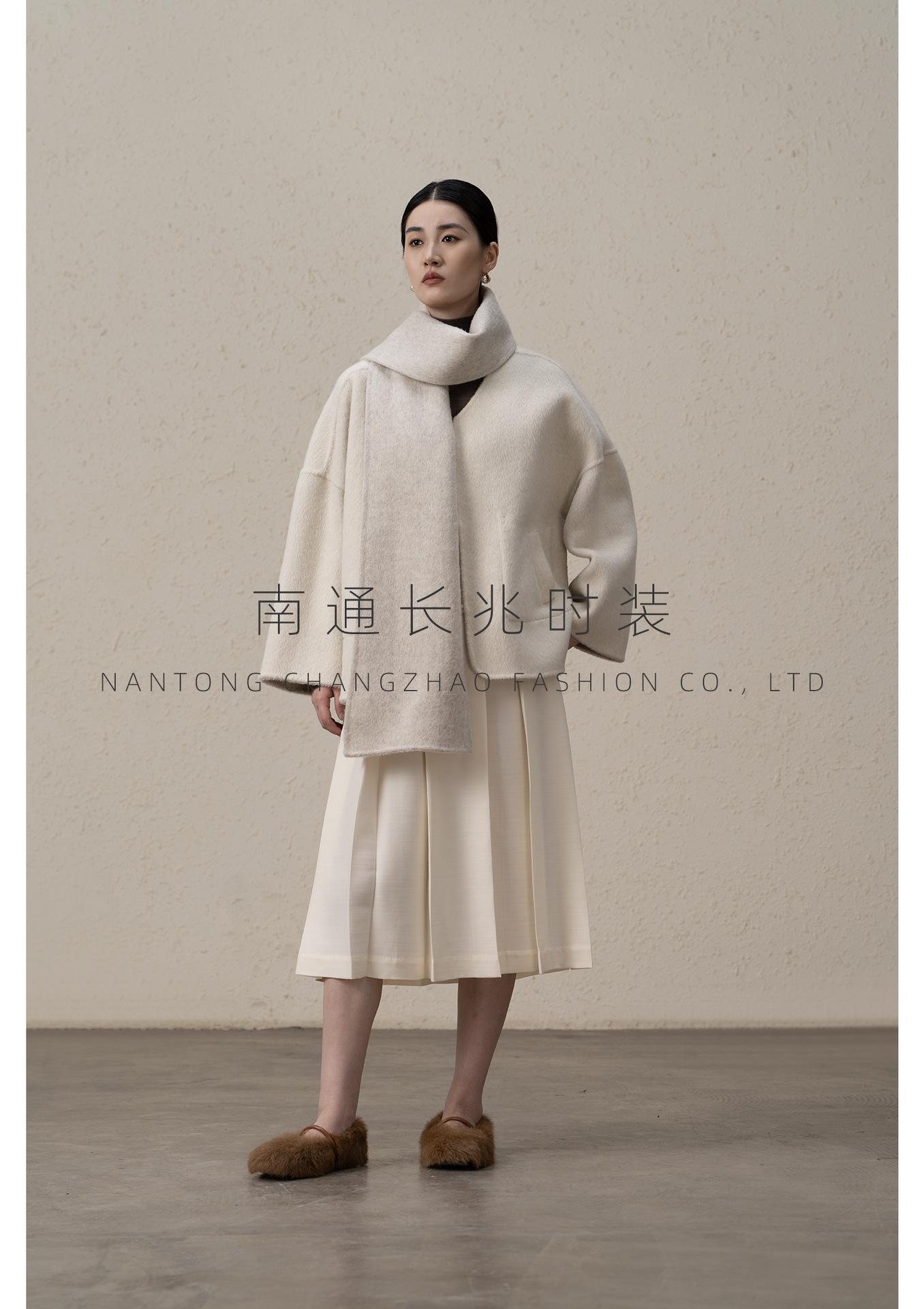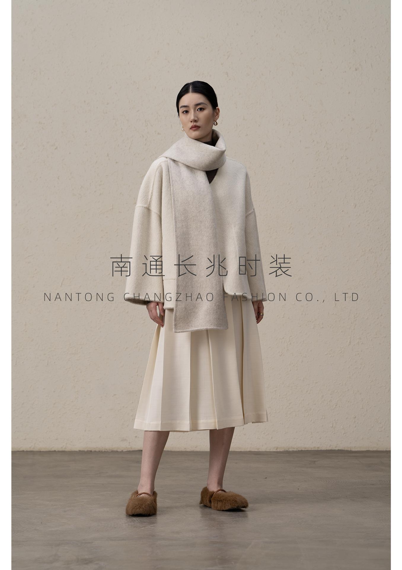 Abrigo corto reversible de doble faz de mezcla de lana, estilo bufanda color block, para mujer, otoño e invierno, exterior de longitud media, nicho