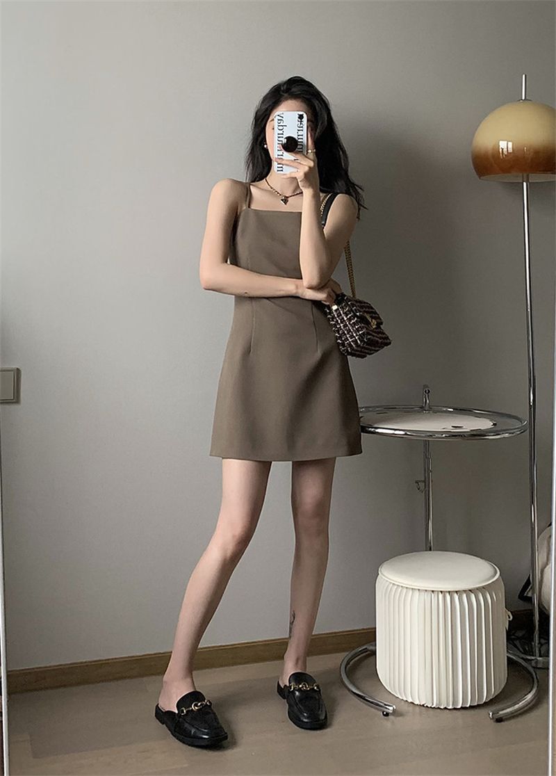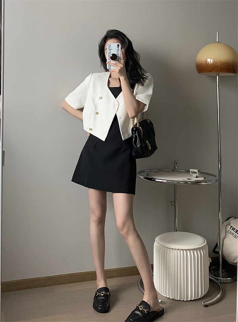 Vestido Blazer Elegante de Tirantes Finos Estilo Francés Verano 2025 Nuevo Deseo Puro Adelgazante de Cintura Sencillo Primavera y Otoño Vestido Corto Interior