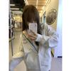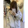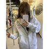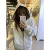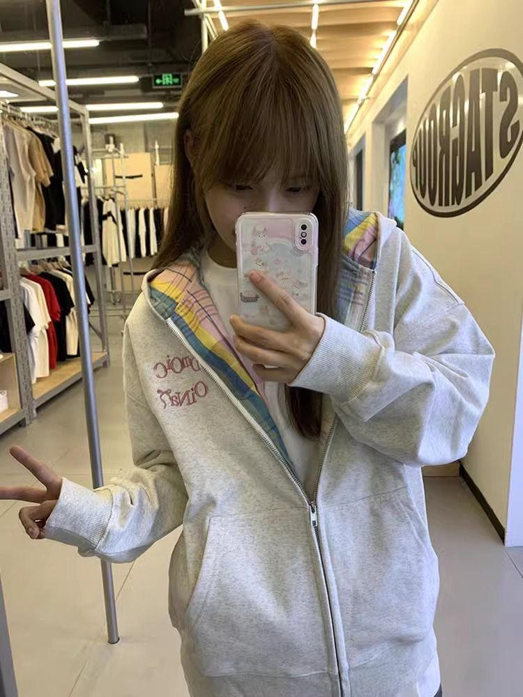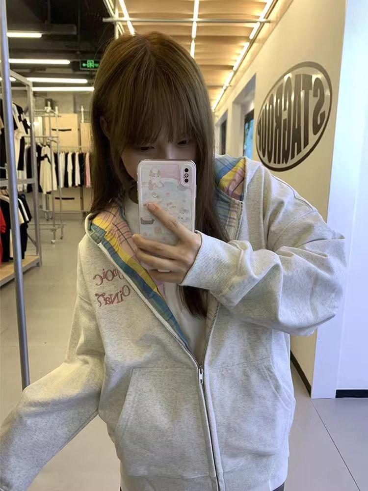 2025 nueva sudadera con capucha y cremallera color gris flor para mujer, primavera y otoño, holgada, extragrande, casual, versátil