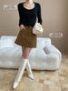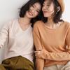 Sinnan Principios de Otoño Nuevo Elegante Estilo Francés Cuello Redondo Grande Ajustado Punto Canalé Camiseta Base Sn6196
