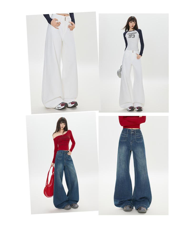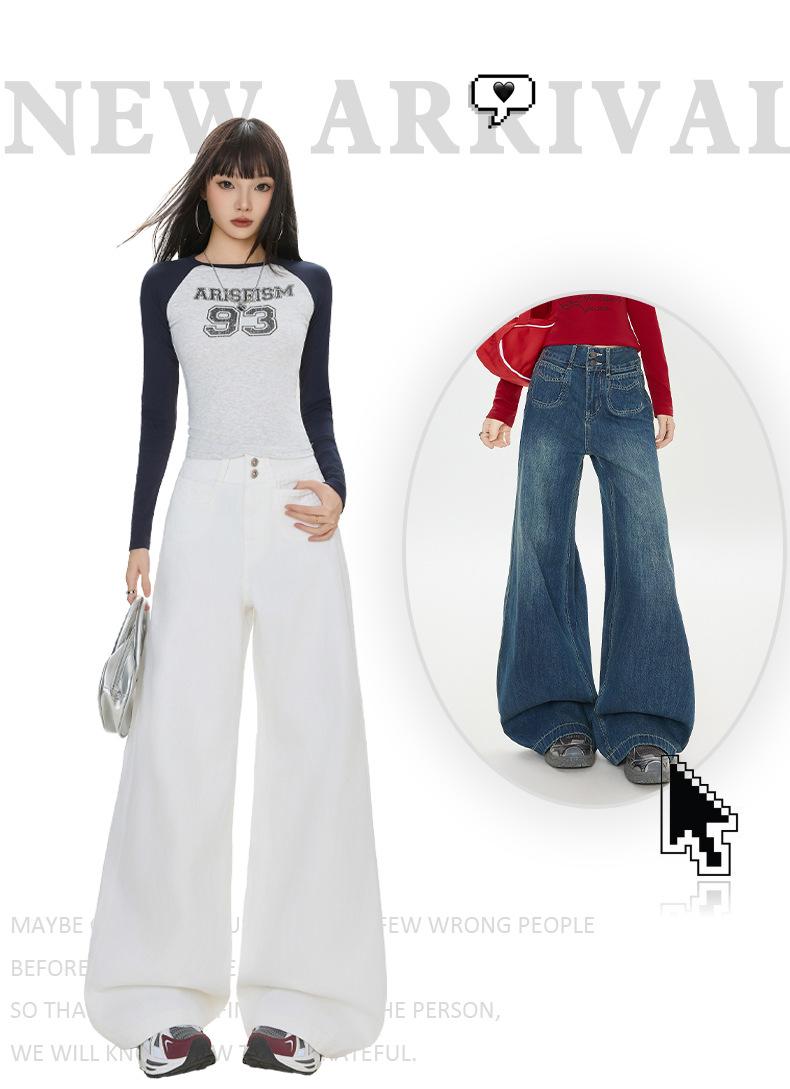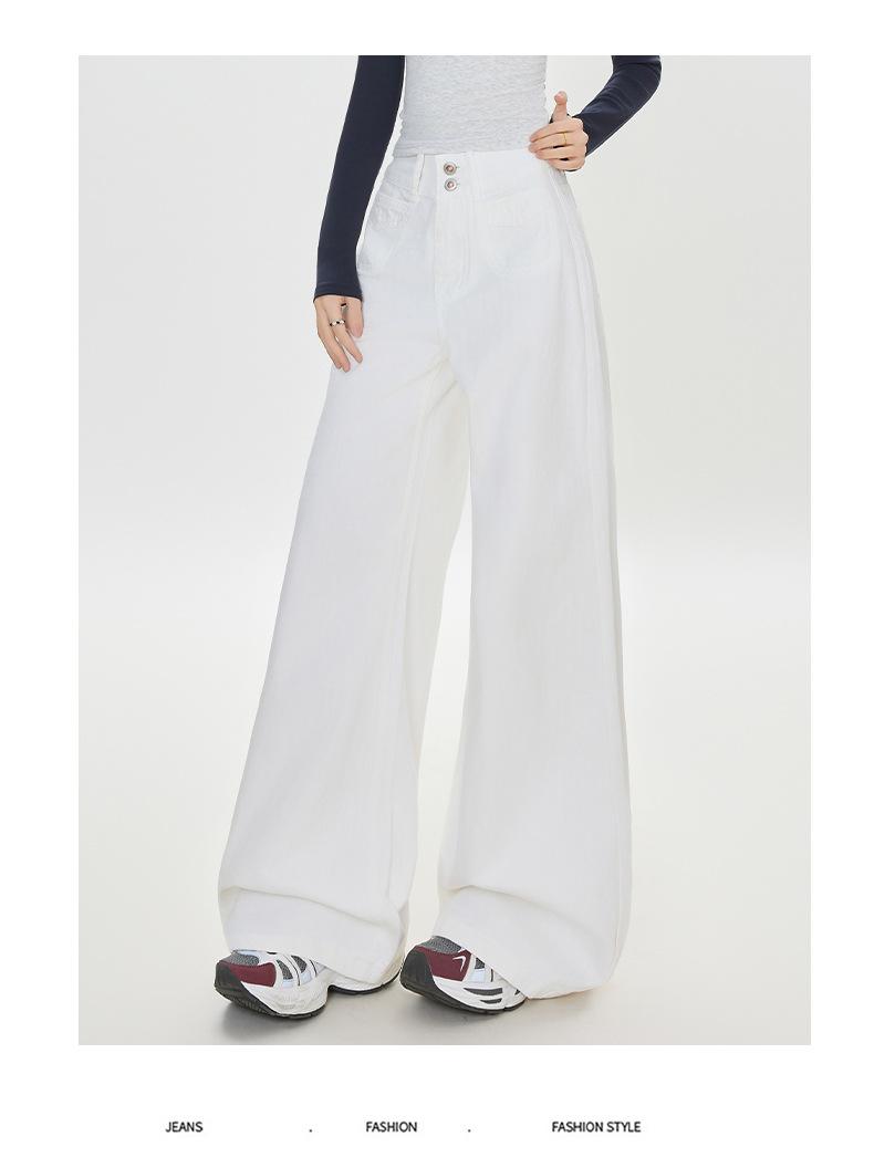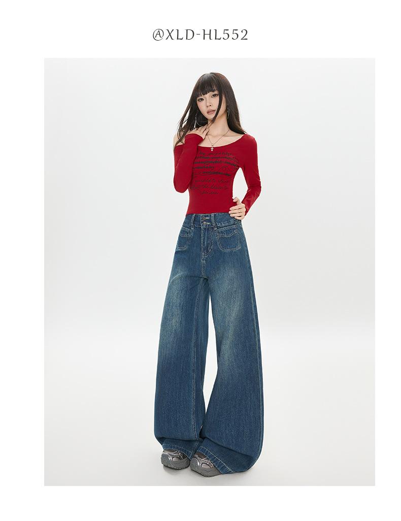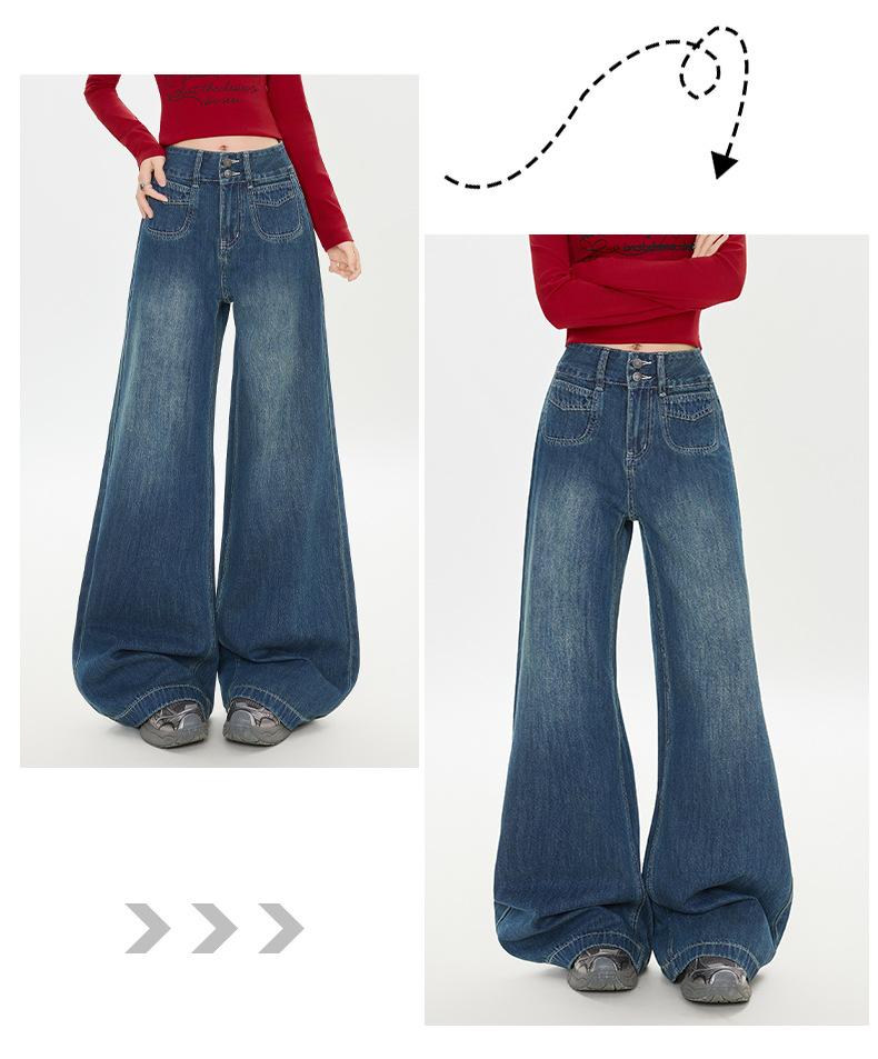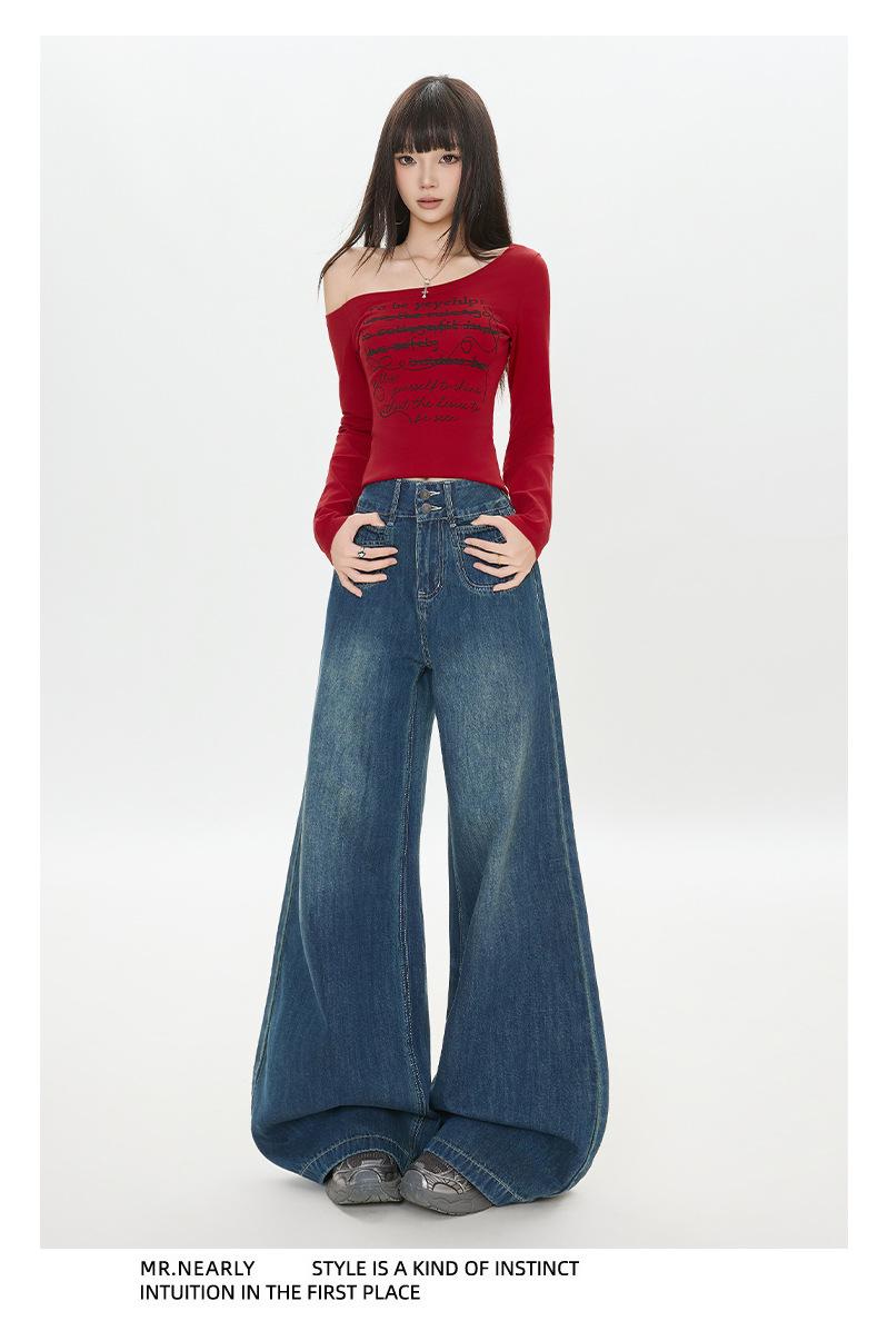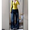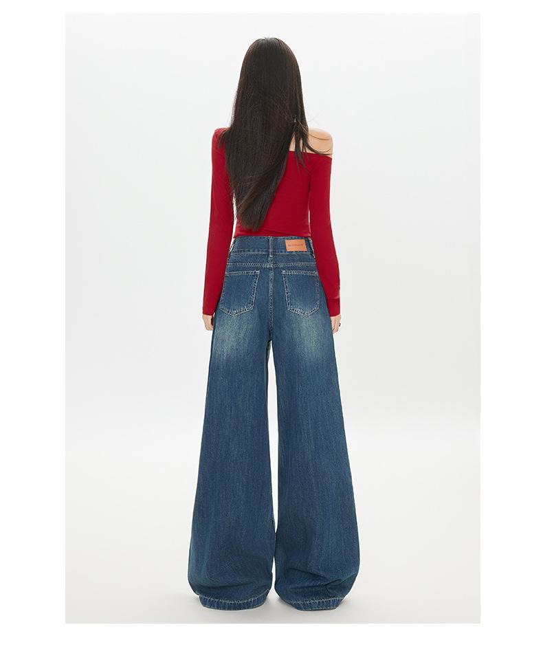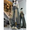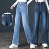 Jeans Drapey de Cintura Alta y Pierna Ancha para Mujer Otoño 2025 Nuevo Cuerpo en Forma de Pera Retro Sueltos Holgados Rectos