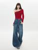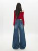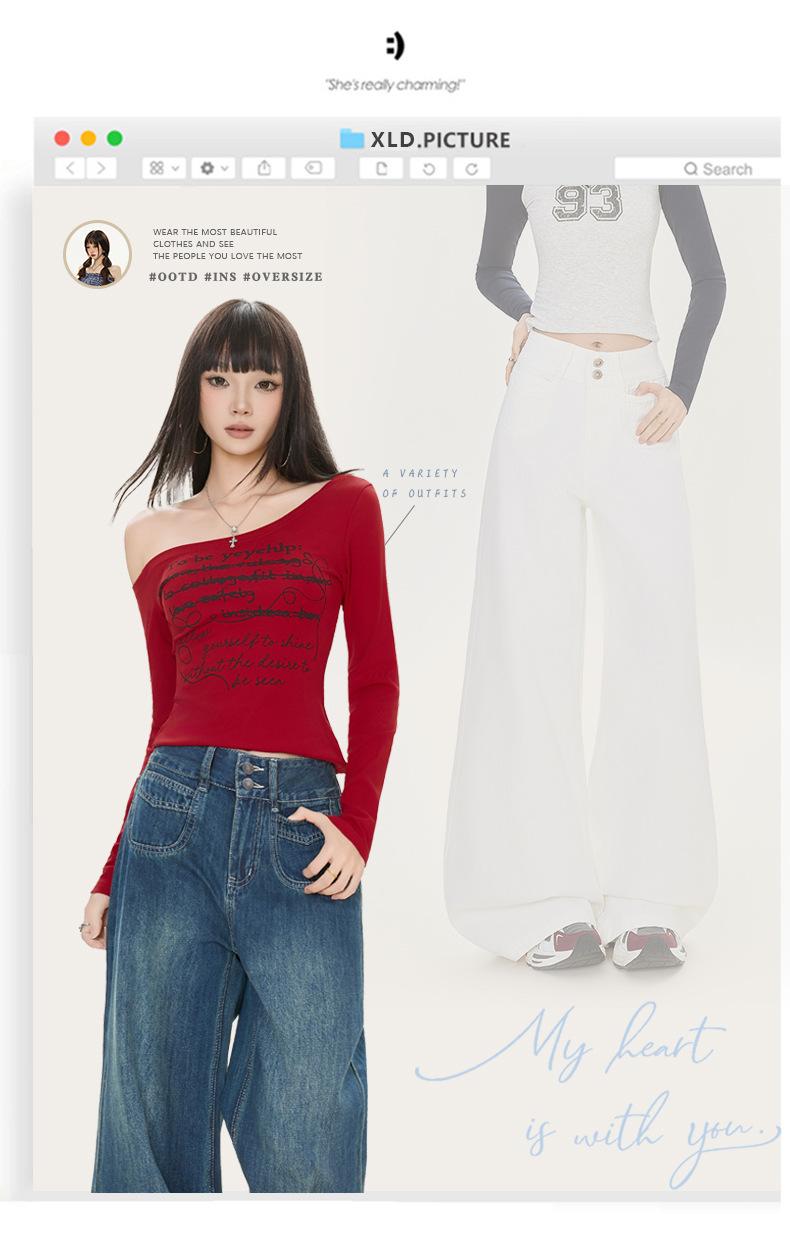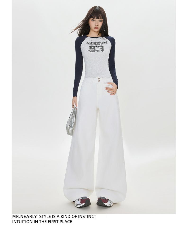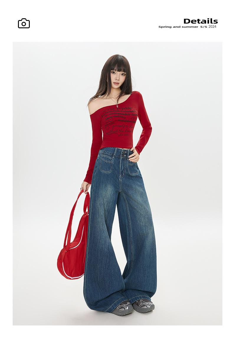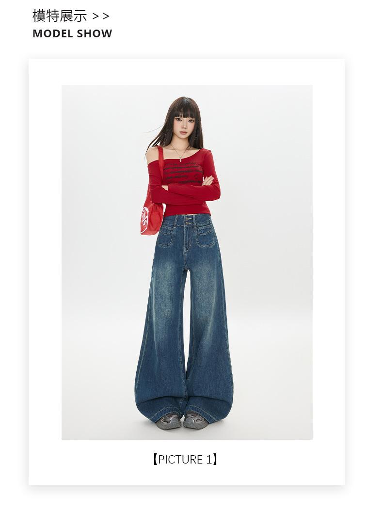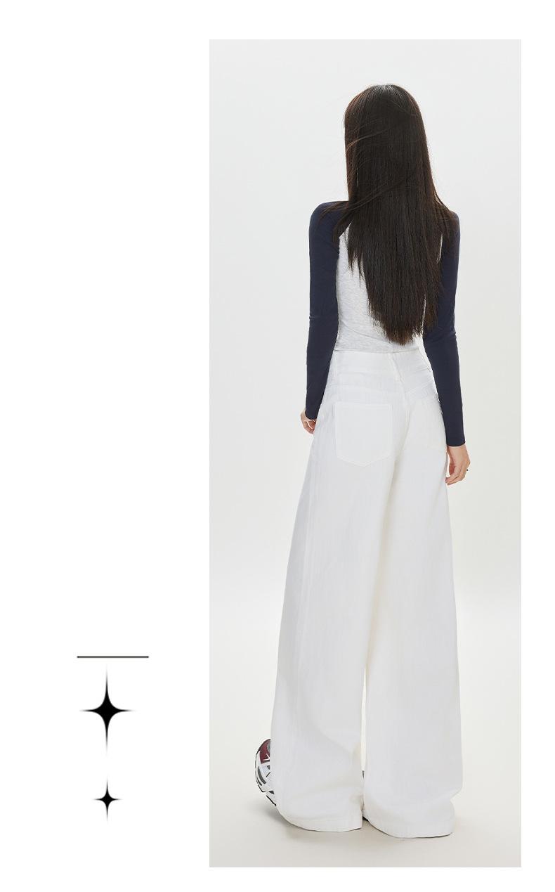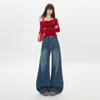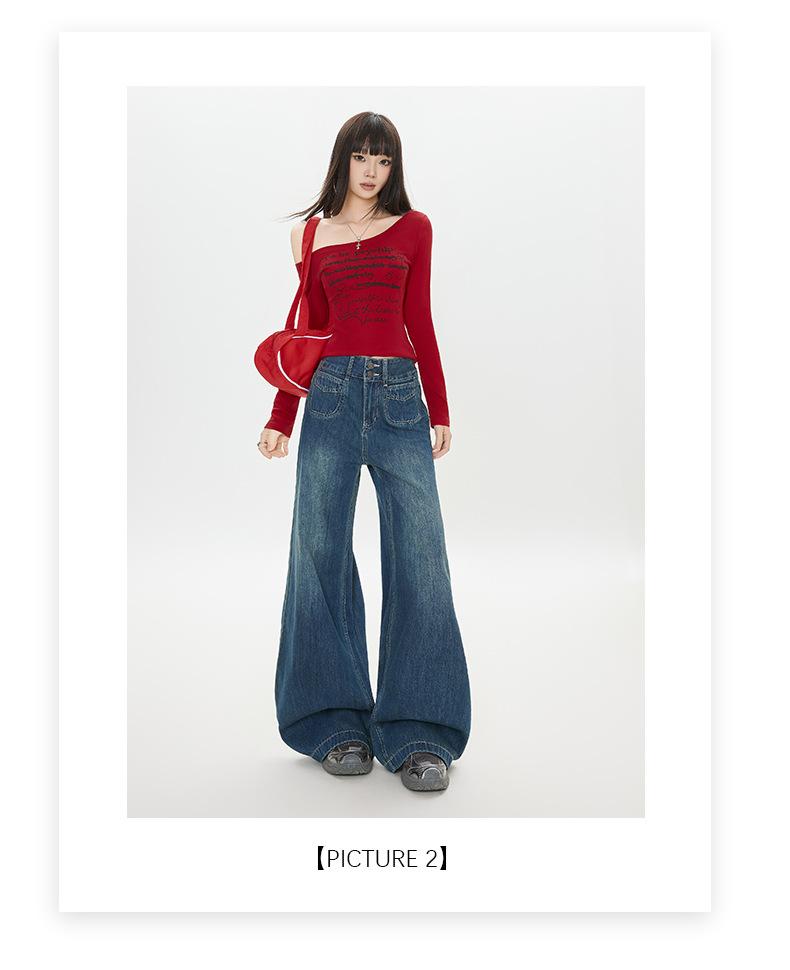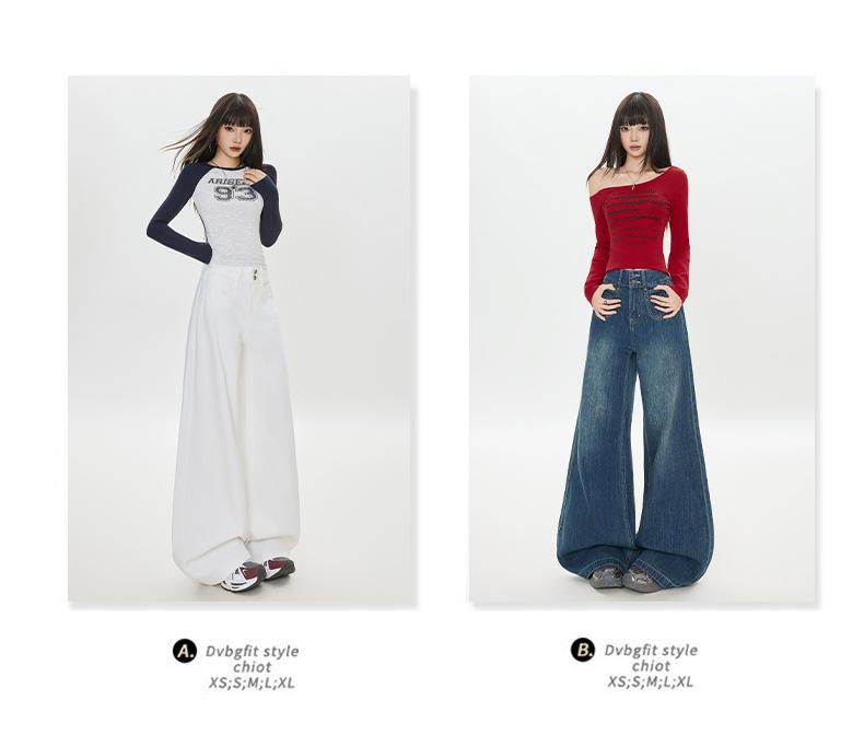 Jeans Drapey de Cintura Alta y Pierna Ancha para Mujer Otoño 2025 Nuevo Cuerpo en Forma de Pera Retro Sueltos Holgados Rectos