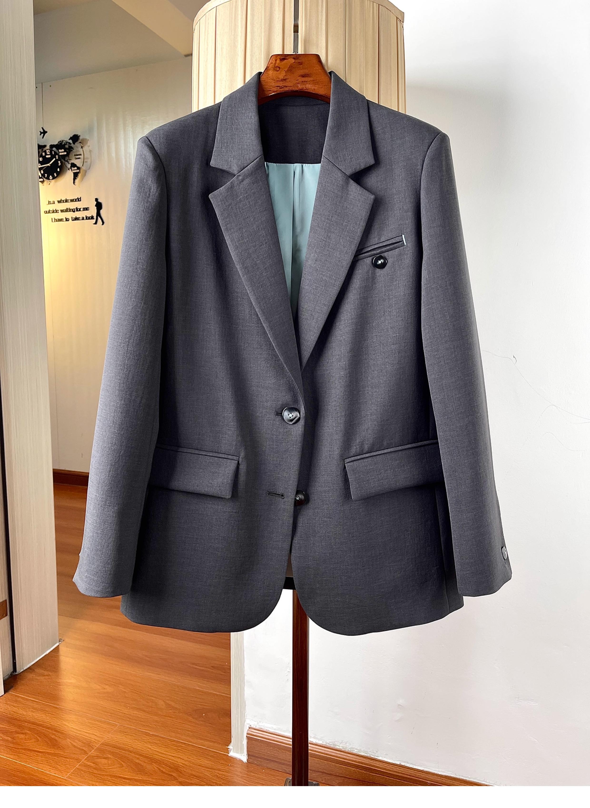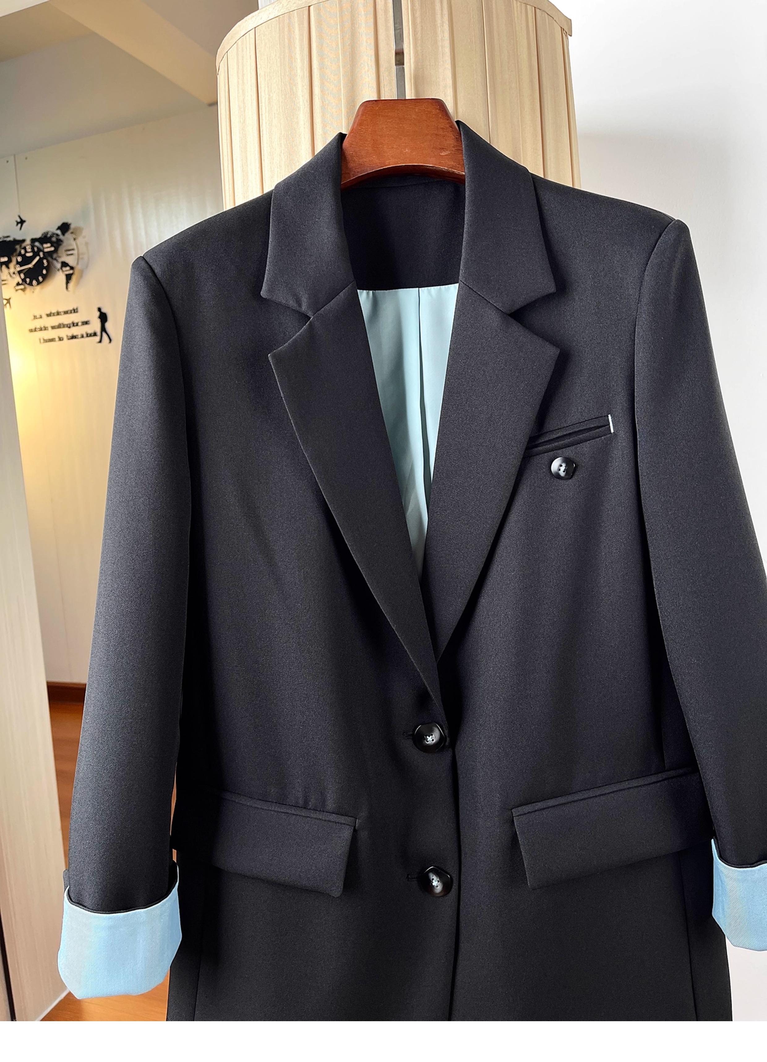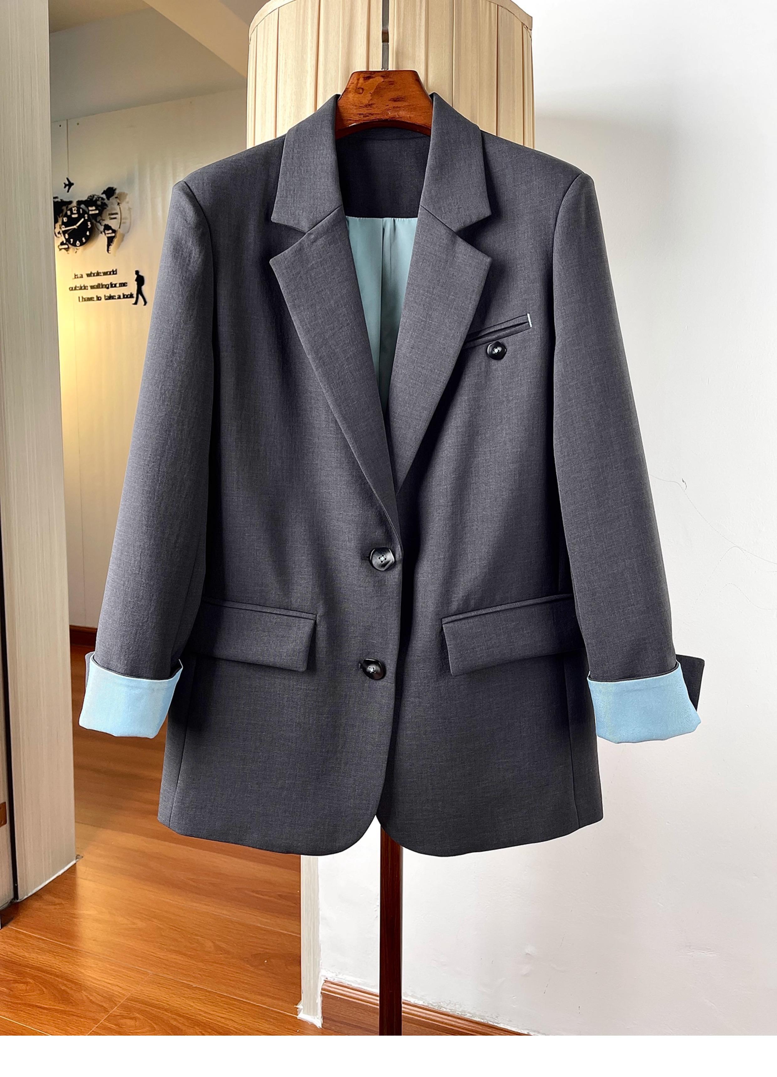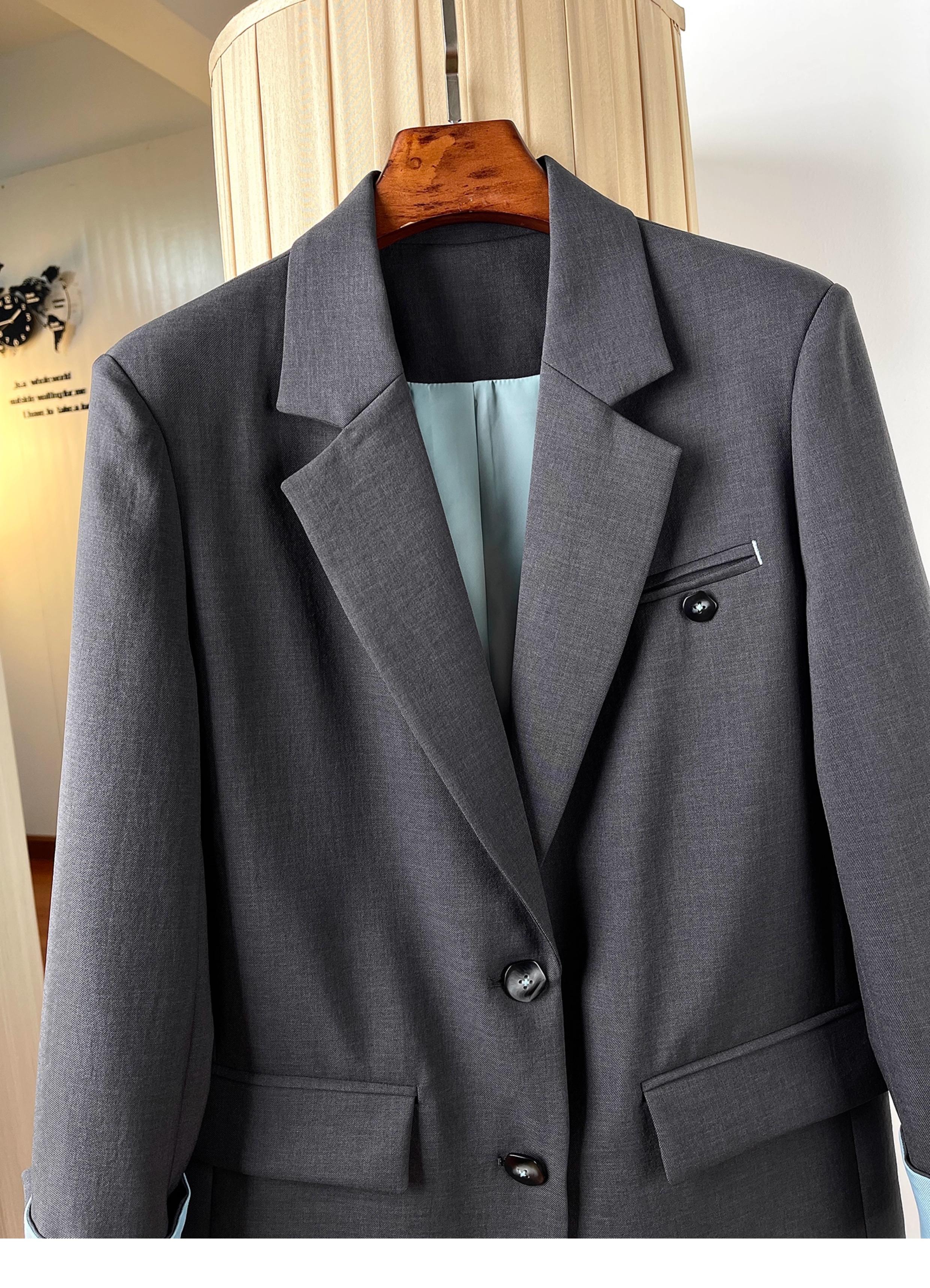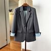 Moda 2025 Estilo Coreano Suelto Relajado Estilo Perezoso Blazer Casual Chaqueta Mujer Principios de Otoño Largo a la Cadera Largo Medio