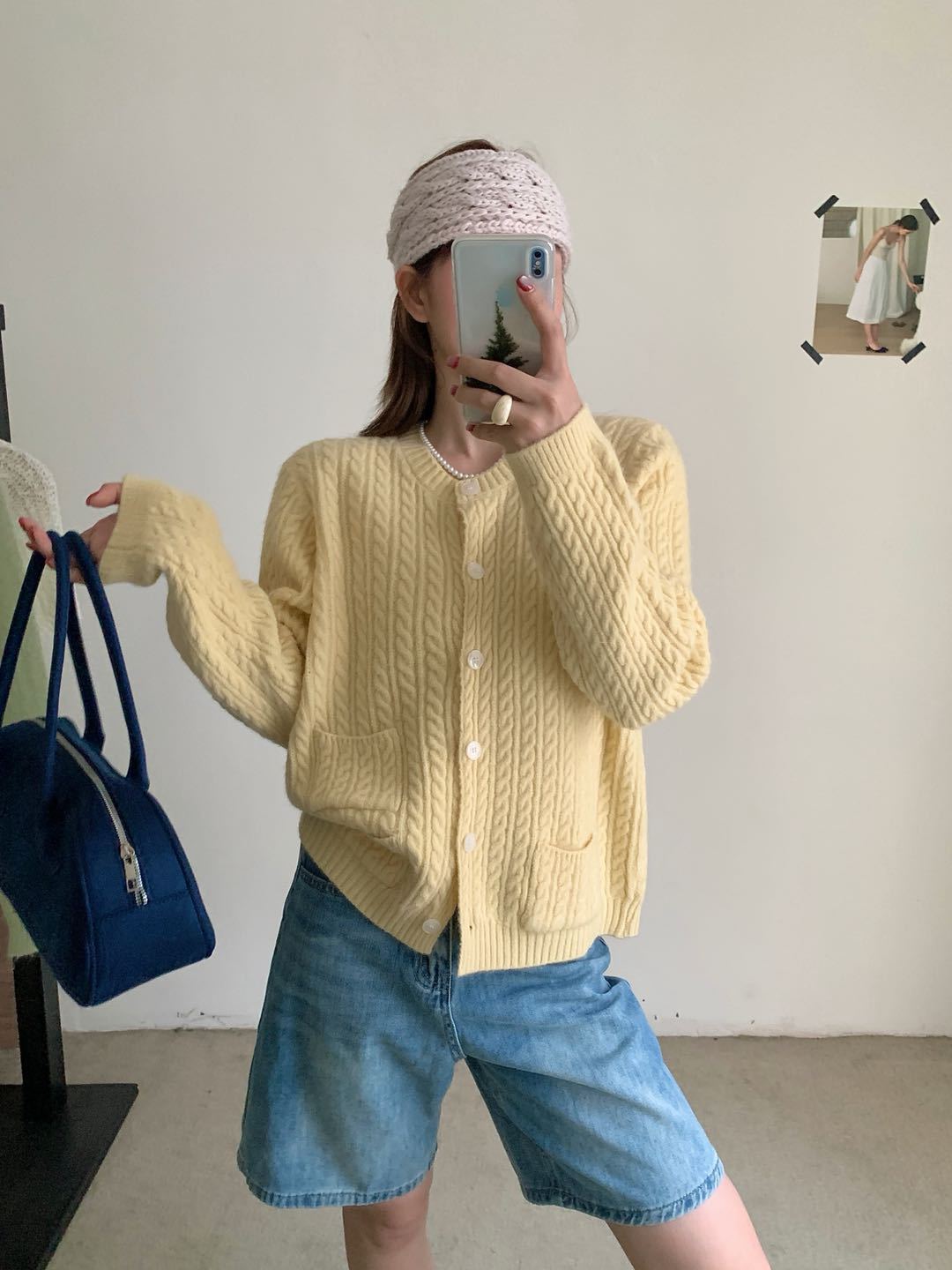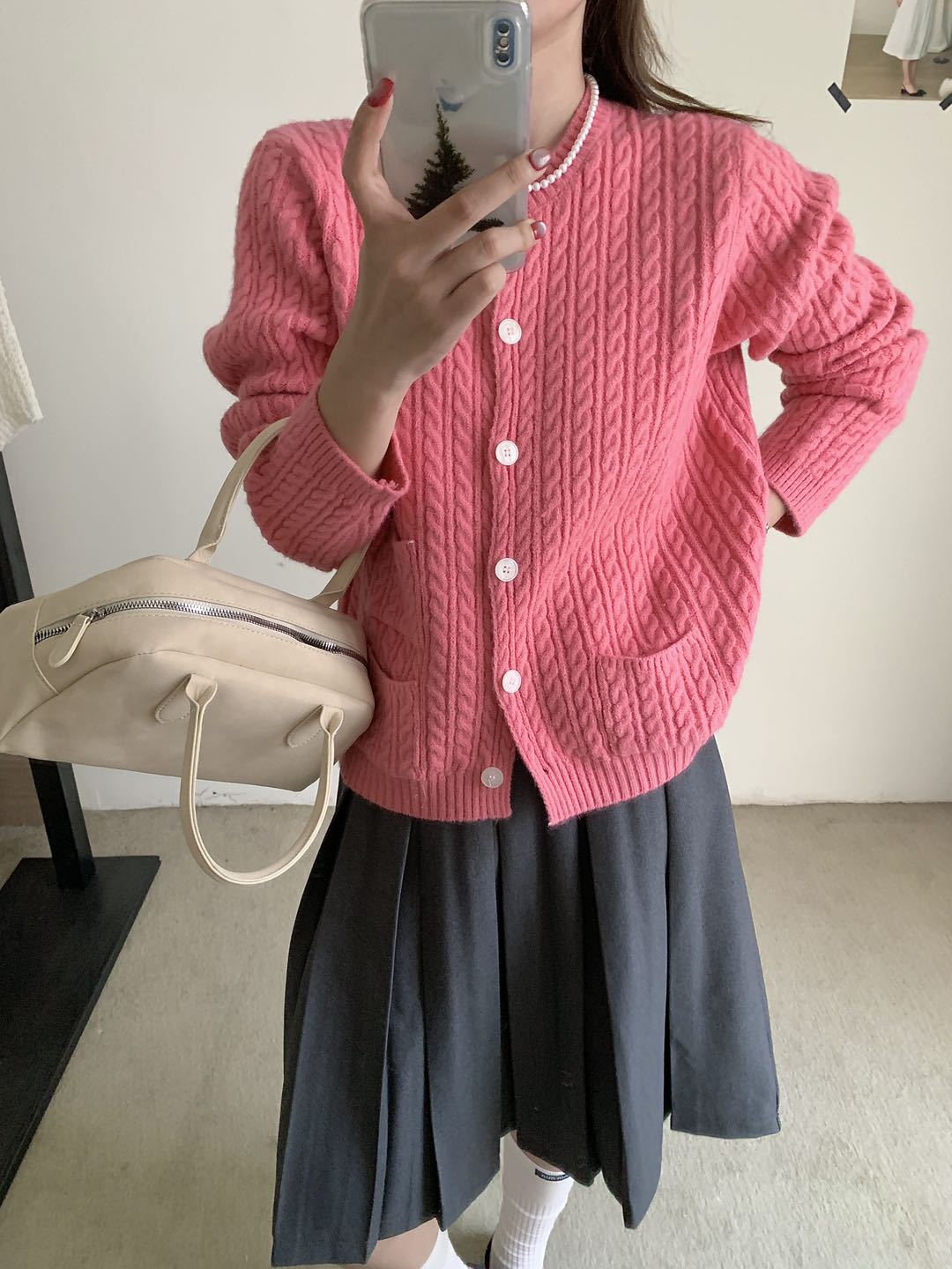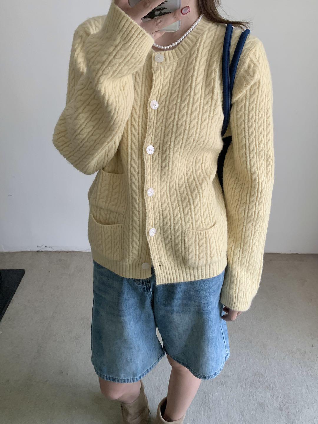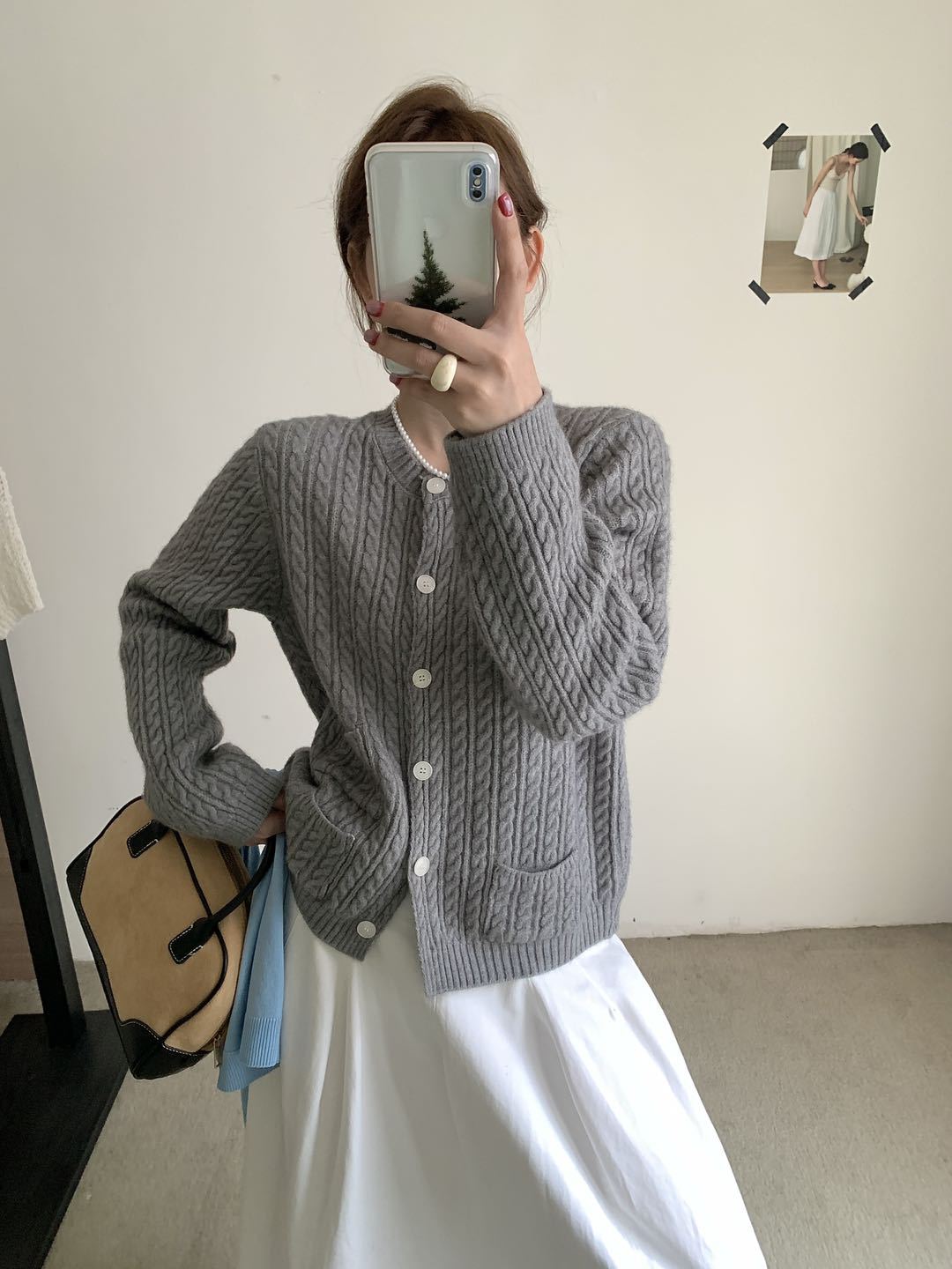 Cárdigan de Punto Trenzado Retro Coreano de Otoño Temprano 2025 Nuevo Suéter Holgado Adelgazante Versátil para Mujer