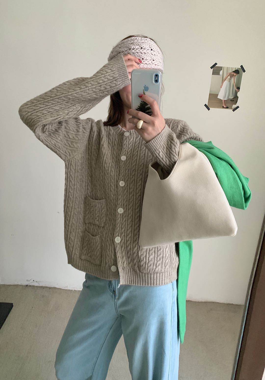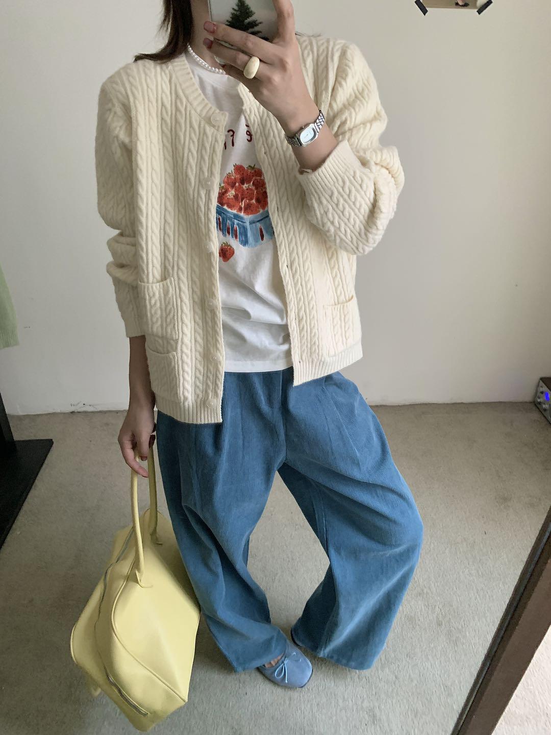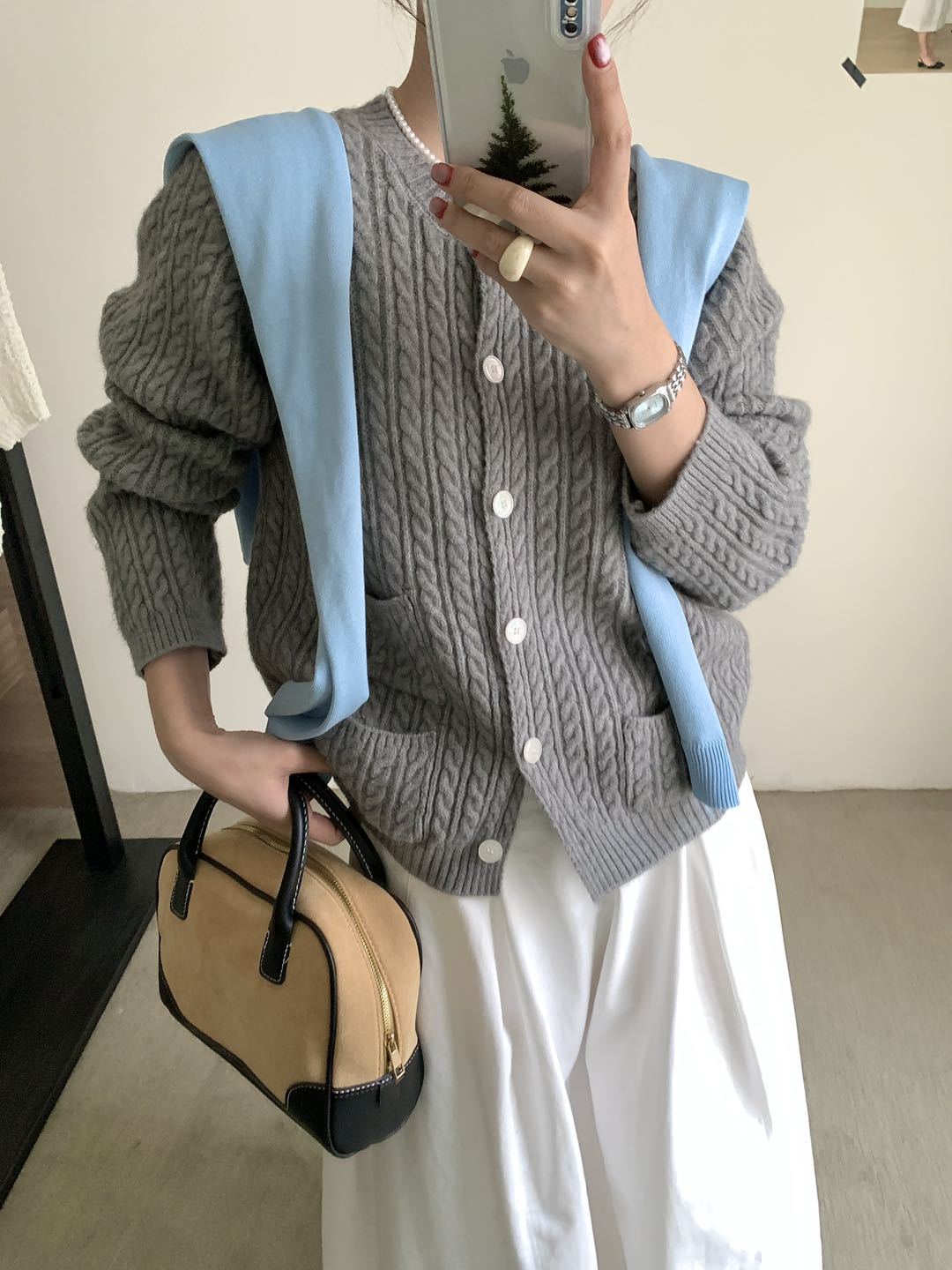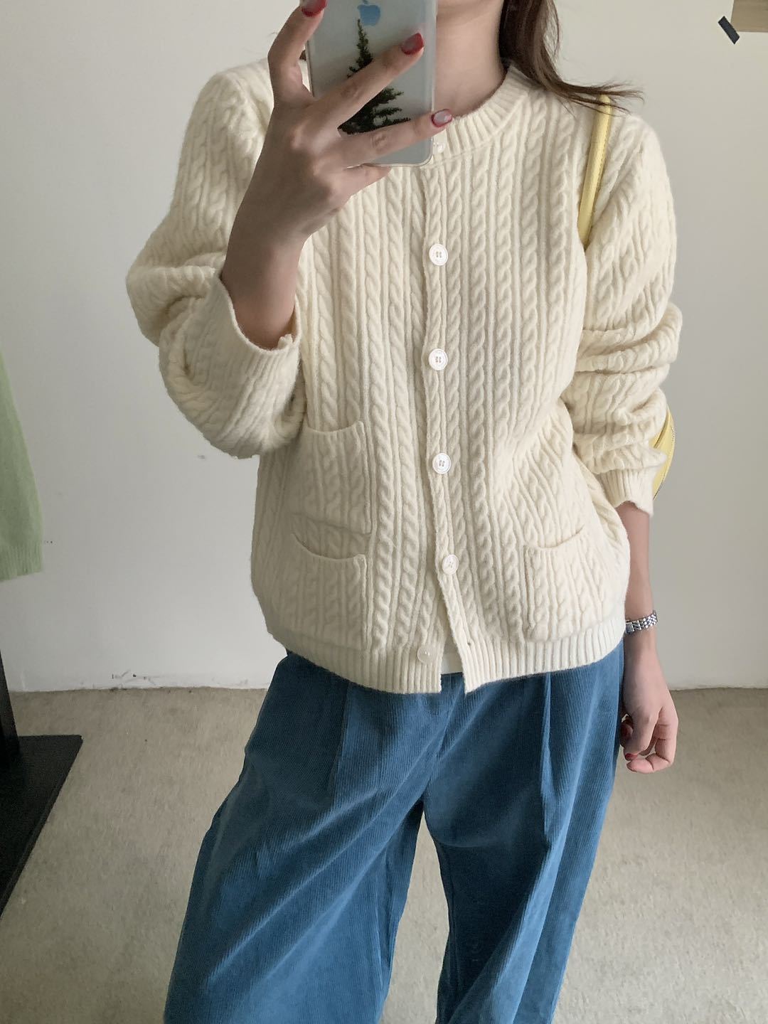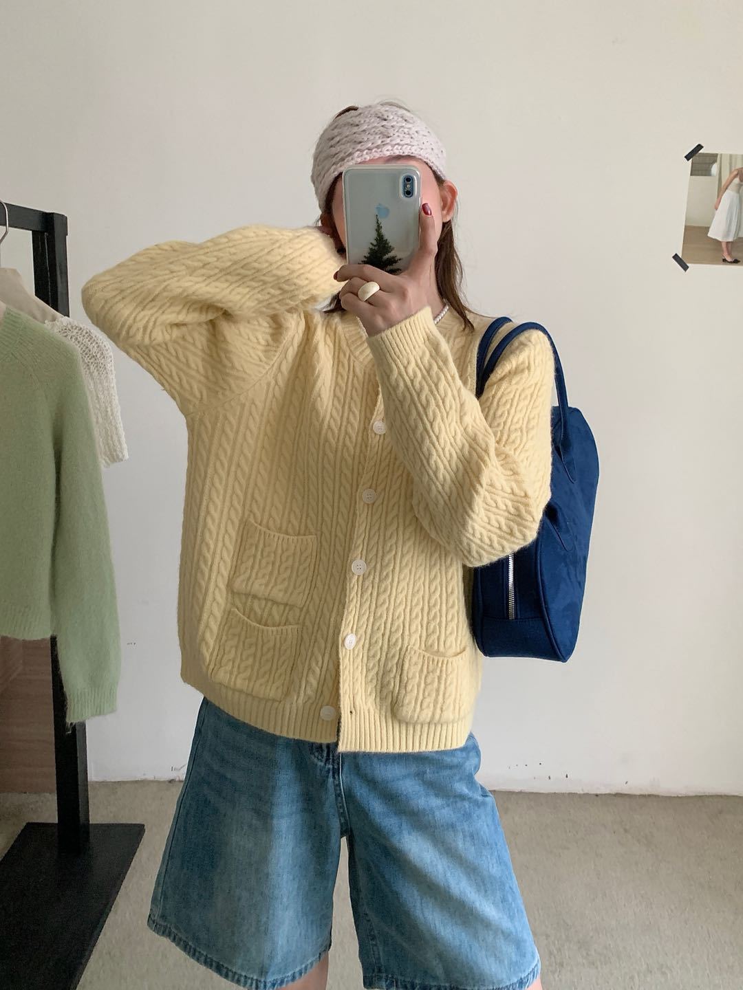 Cárdigan de Punto Trenzado Retro Coreano de Otoño Temprano 2025 Nuevo Suéter Holgado Adelgazante Versátil para Mujer