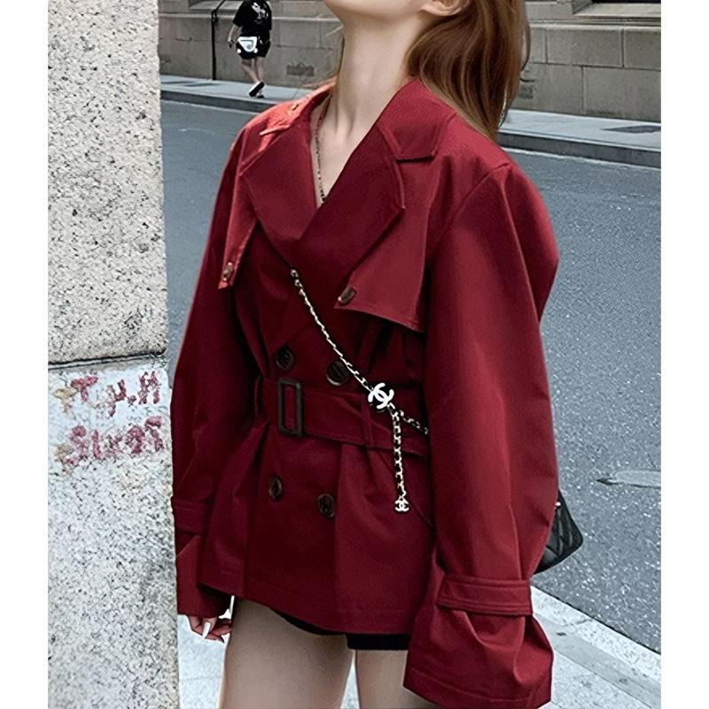 2025 Primavera y Otoño Nuevo Versátil Doble Botonadura Manga Larga Suelto Adelgazante Traje Cuello Gabardina Chaqueta de Largo Medio Mujer