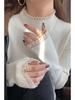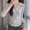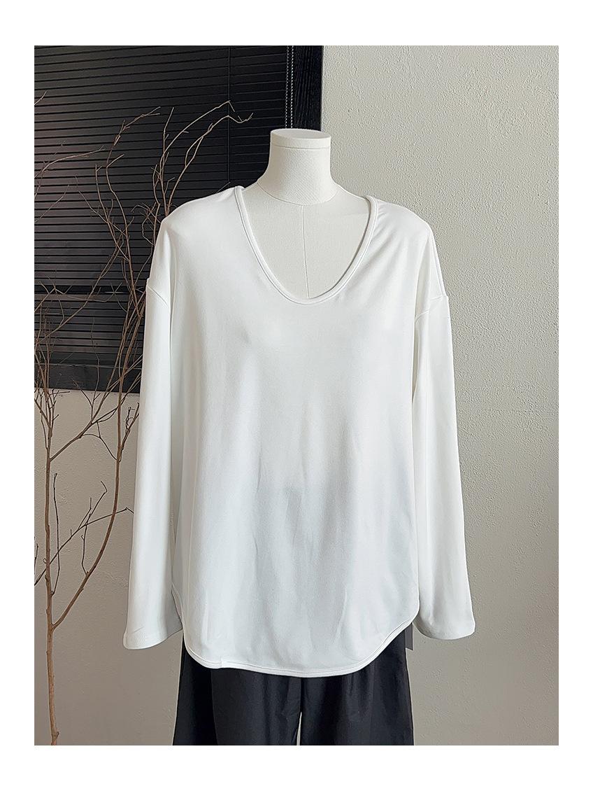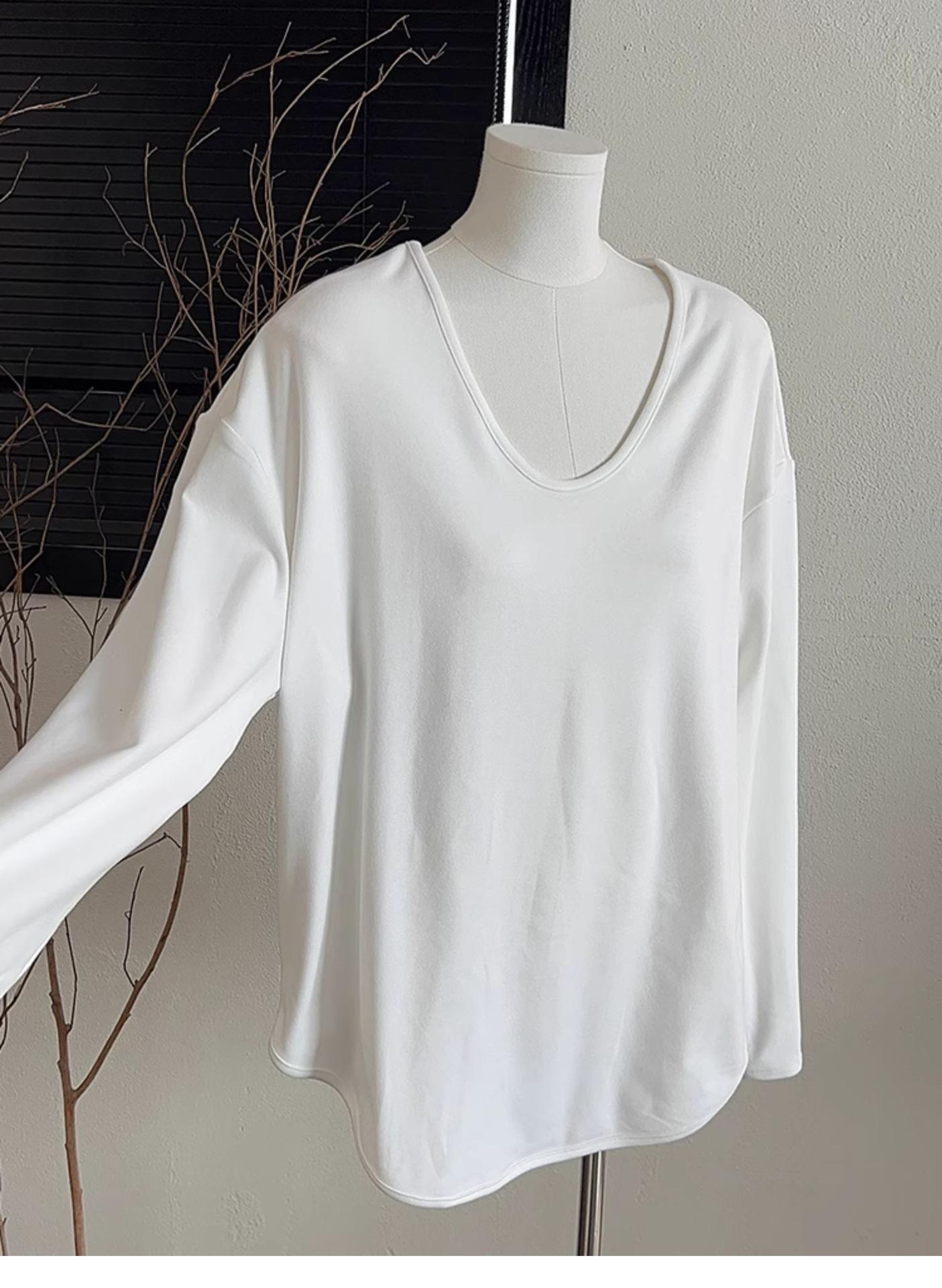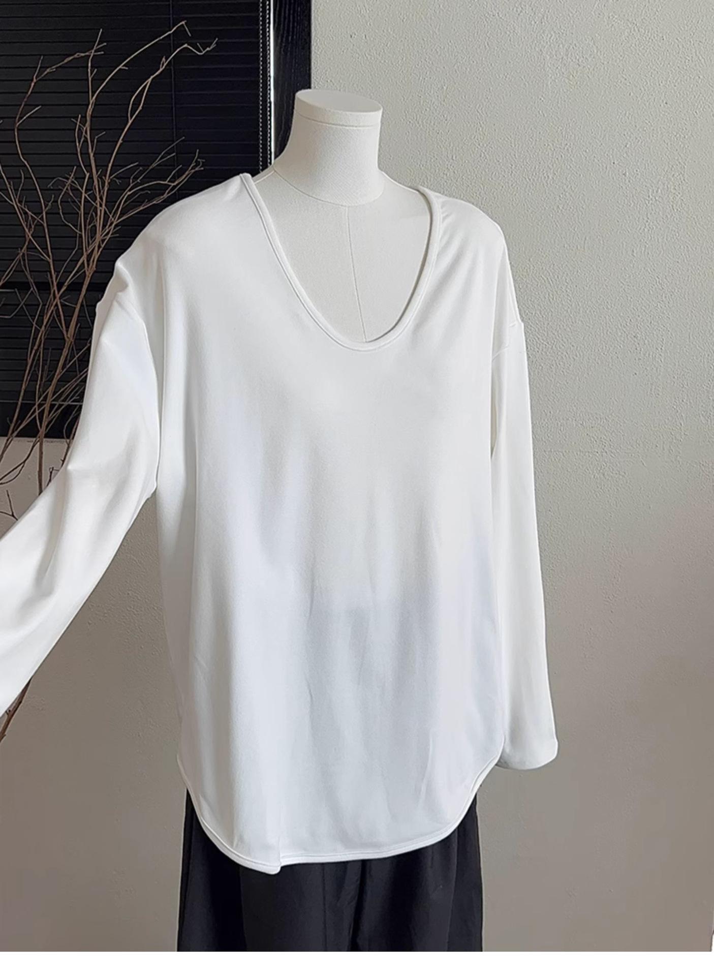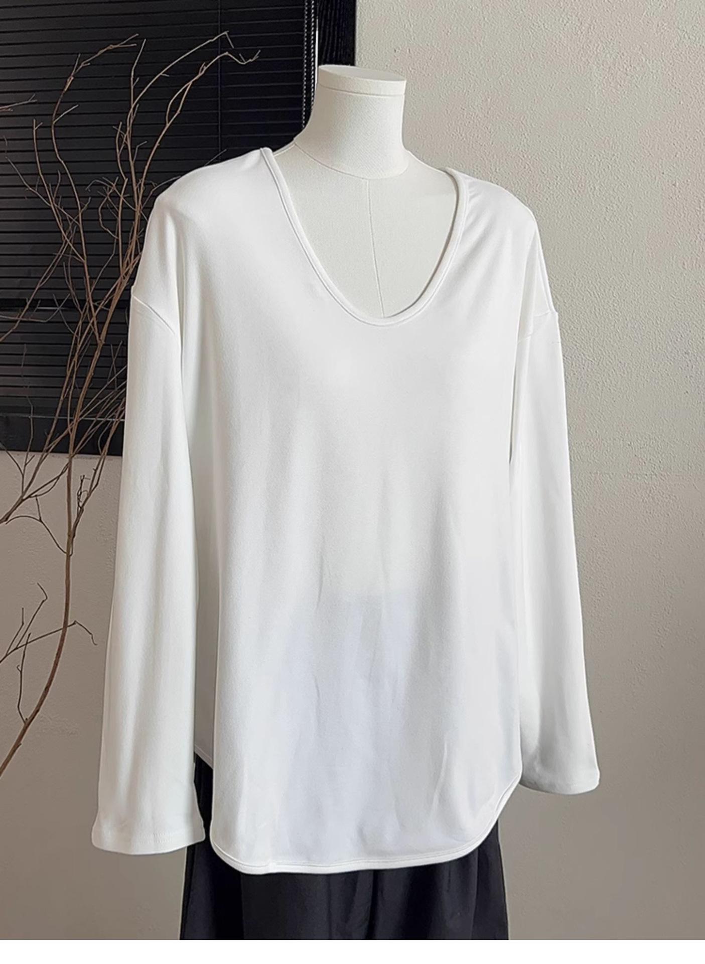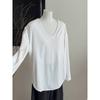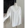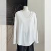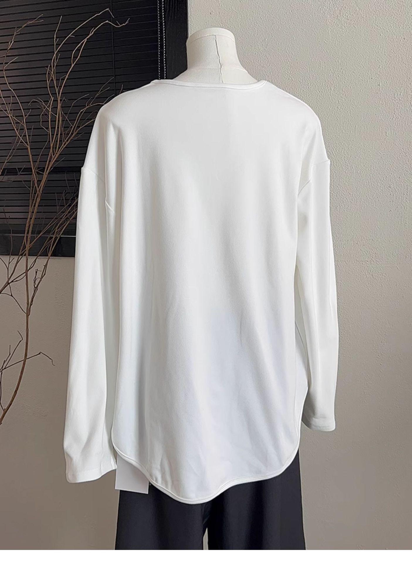 Camiseta Blanca de Manga Larga con Diseño Sensorial Dividido para Mujer Primavera Holgada Adelgazante Top Interior Ins Sencillo Combinable Camiseta Básica