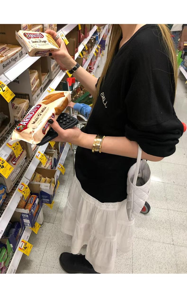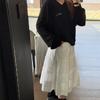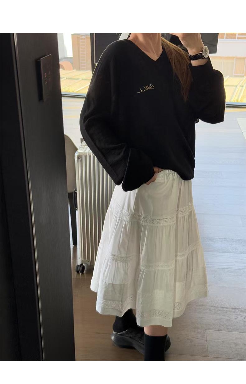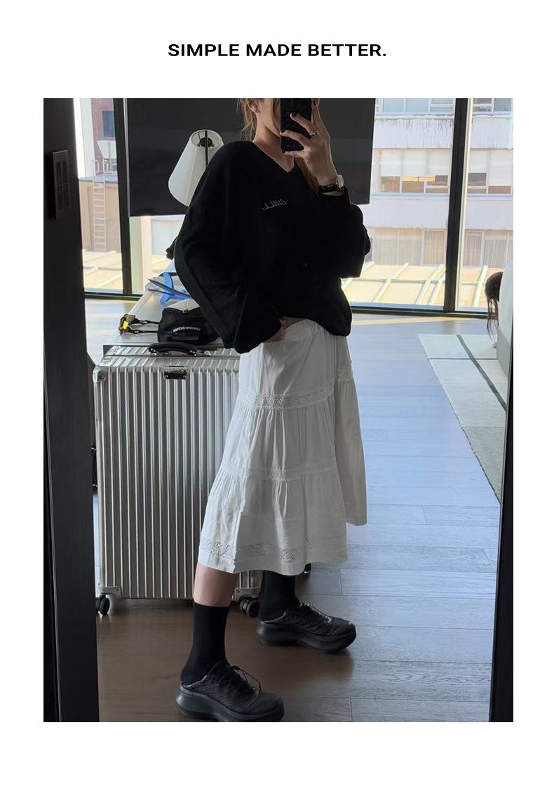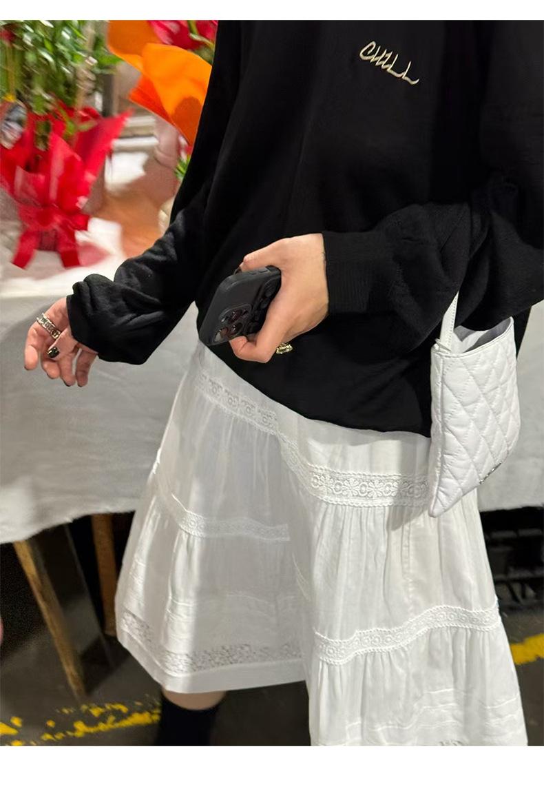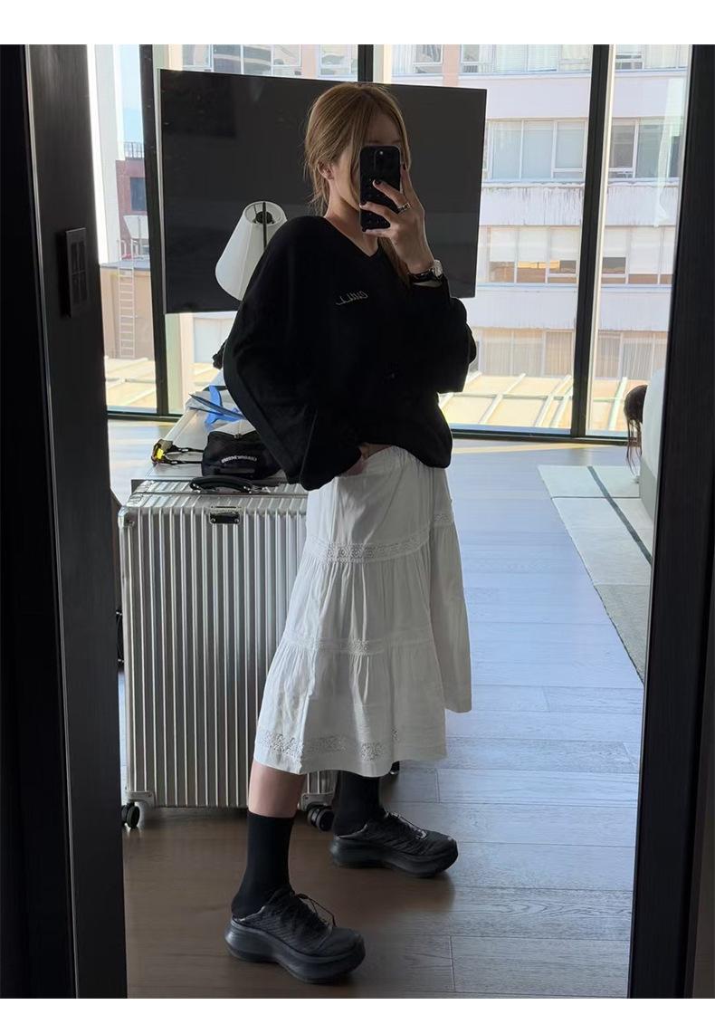 Otoño 2025 Nueva Corea Dongdaemun Dulce Temperamento Suave Elástico Cintura Alta Larga Blanca Acampanada Falda