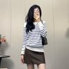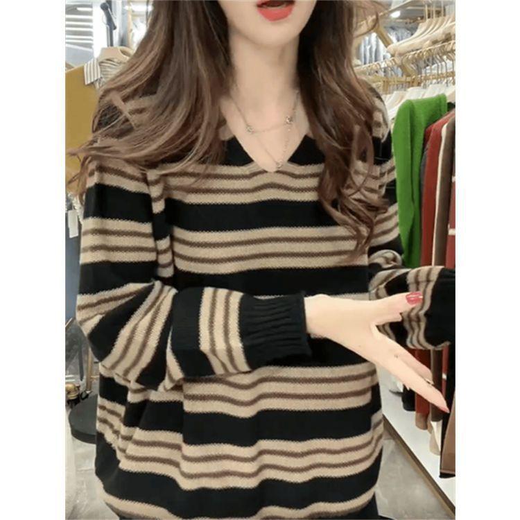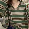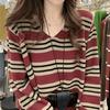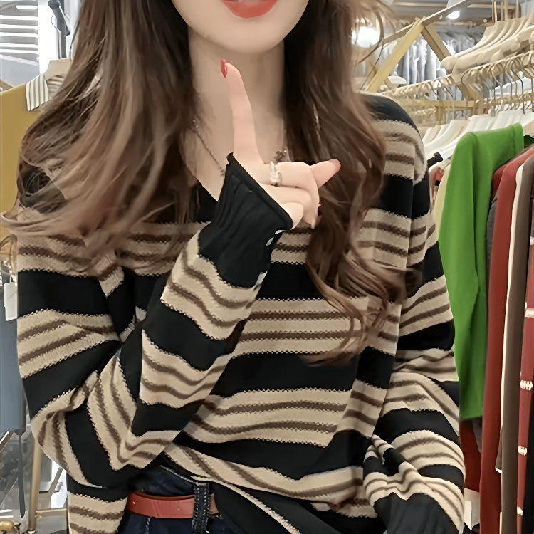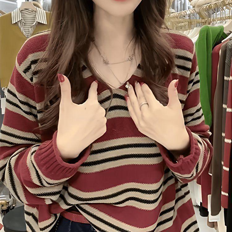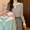 Shanlidaidi 2025 Primavera y Otoño Nuevo Suéter Tejido a Rayas Moda Casual Jersey Reductor de Edad Bloque de Color Top Base