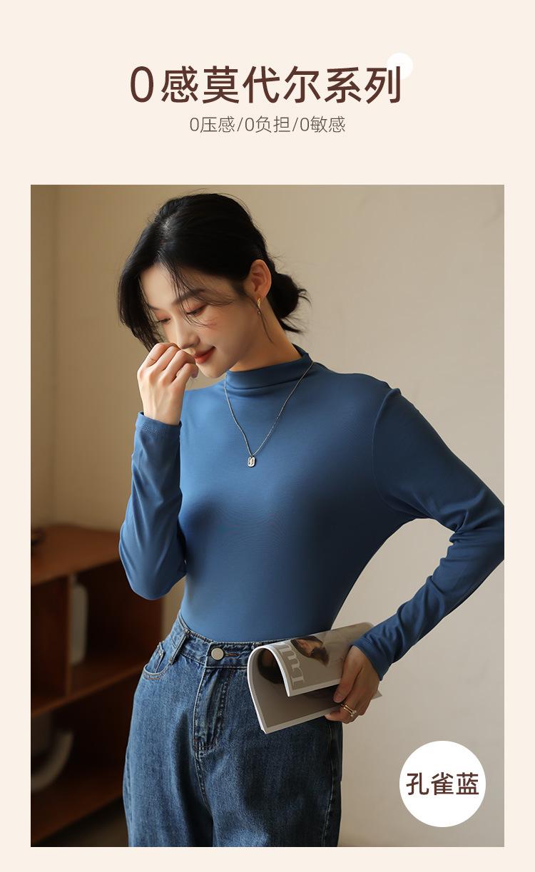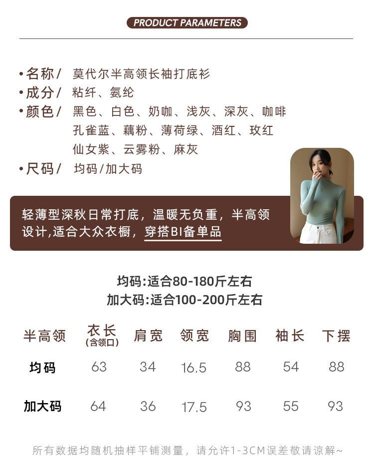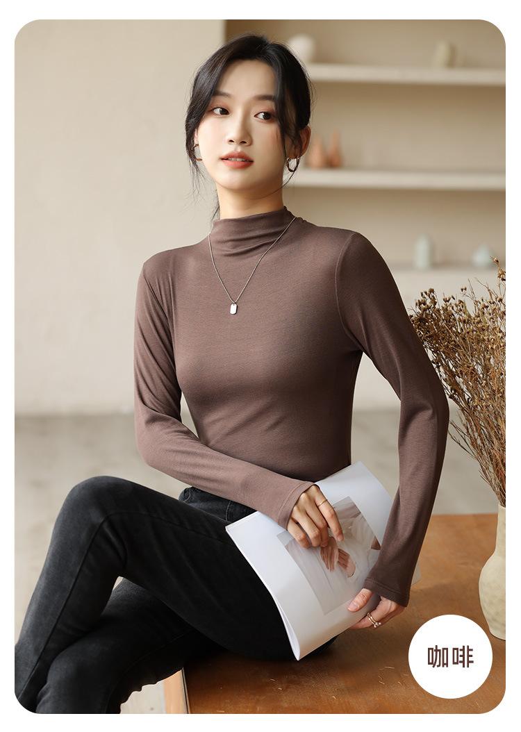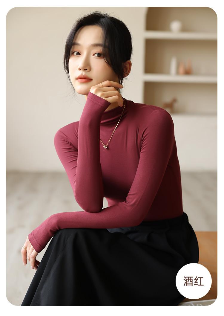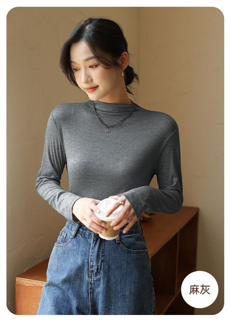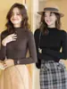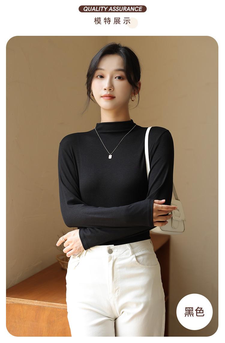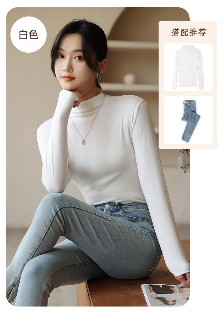 Camiseta básica de cuello medio alto para mujer, primavera y otoño, ropa interior, top de punto modal de alta gama blanco y negro, nuevo 2025