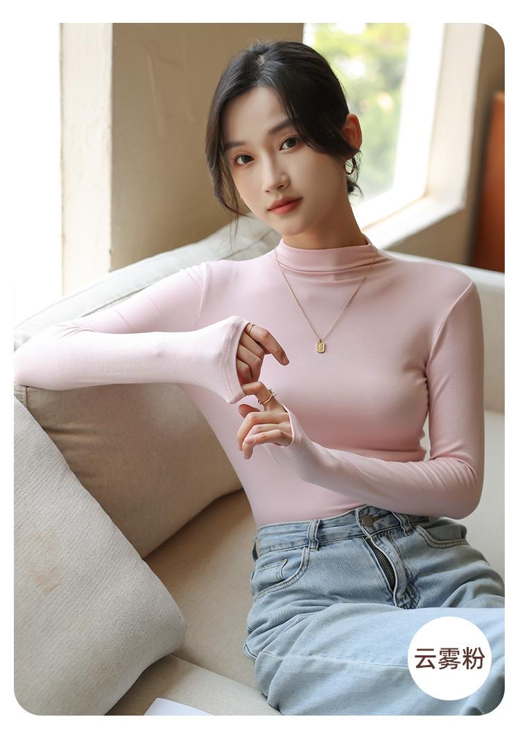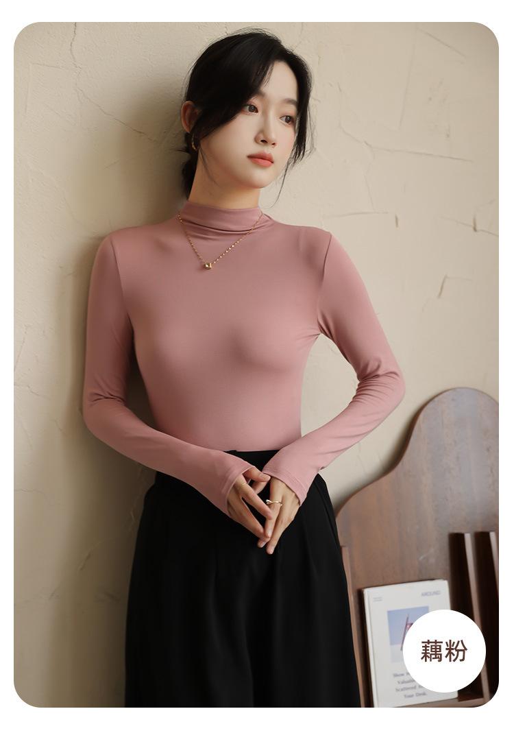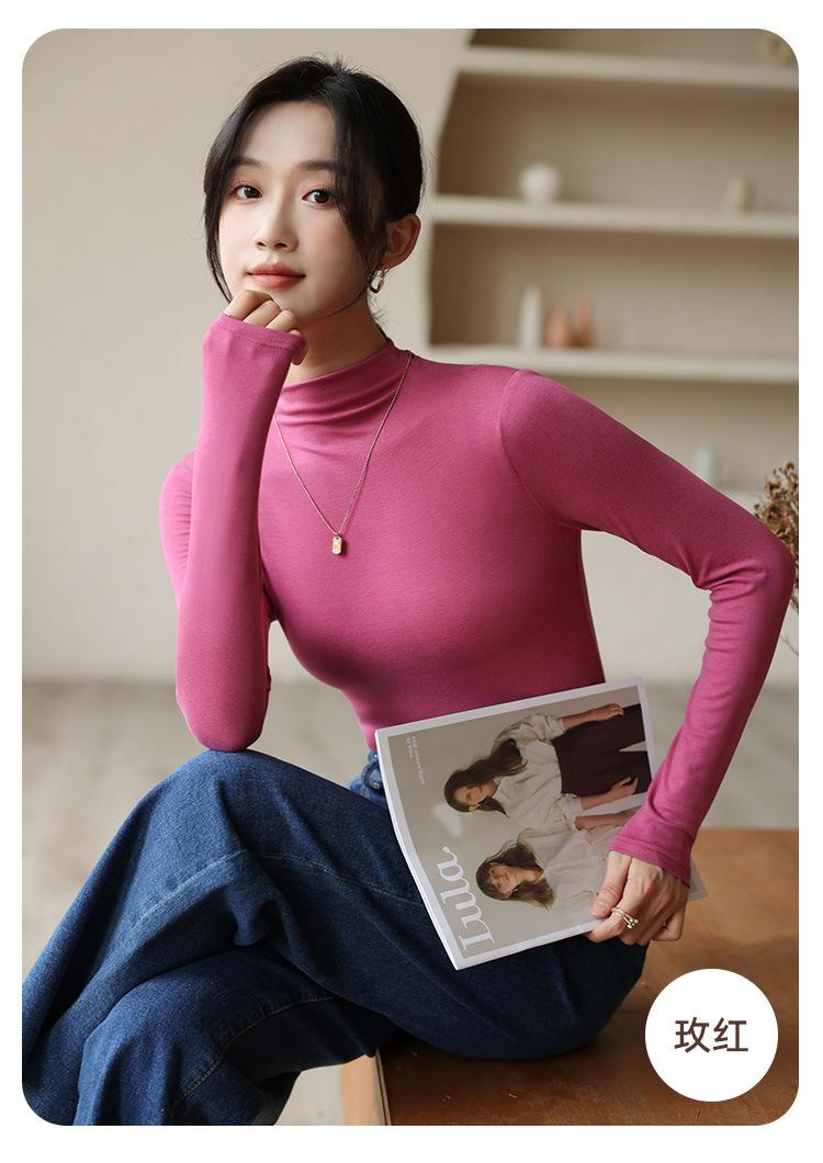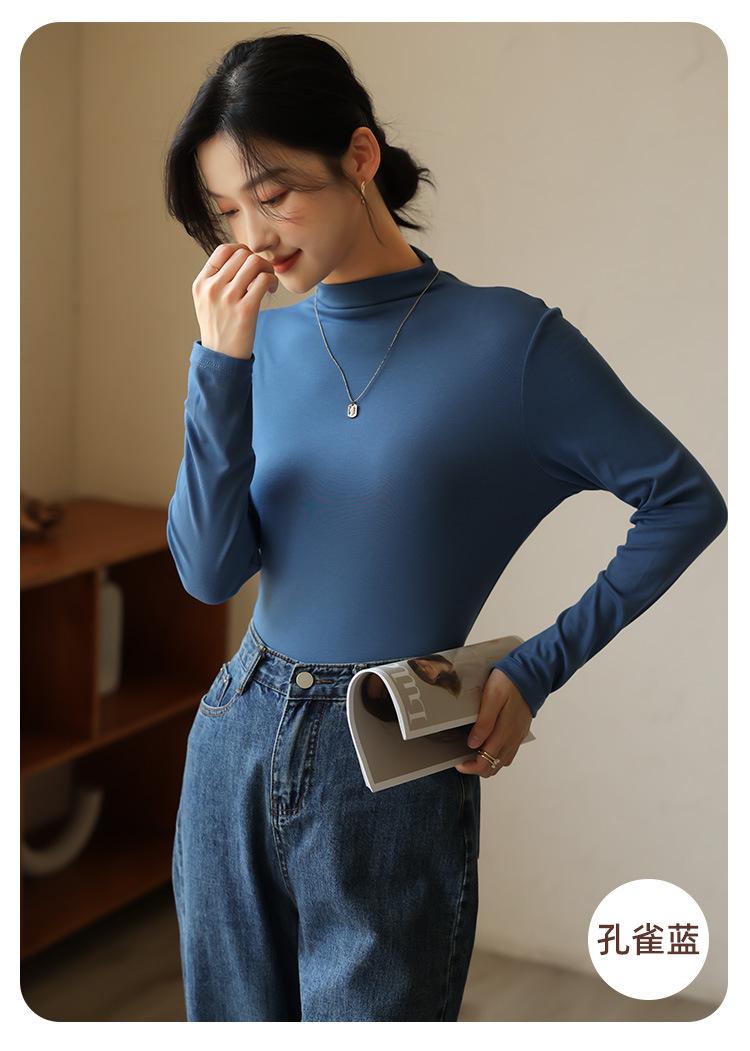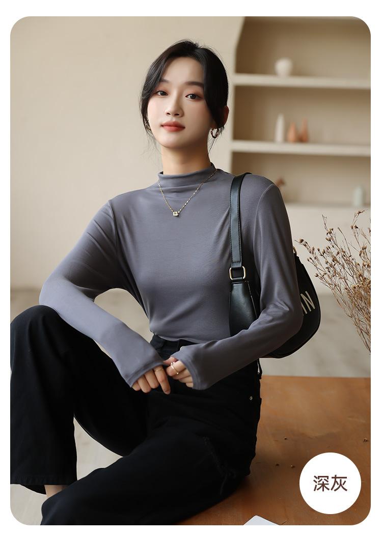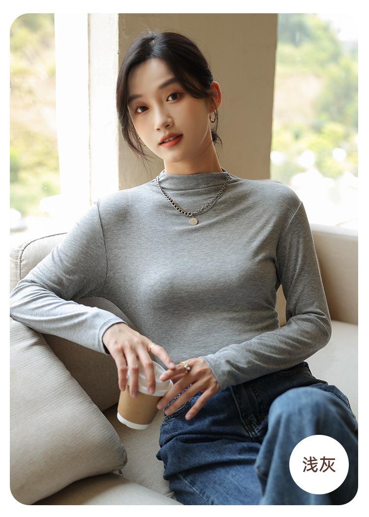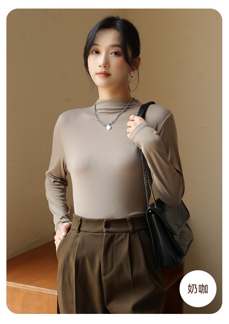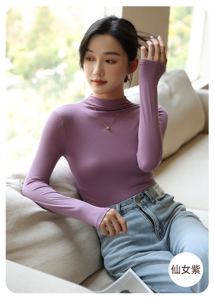 Camiseta básica de cuello medio alto para mujer, primavera y otoño, ropa interior, top de punto modal de alta gama blanco y negro, nuevo 2025