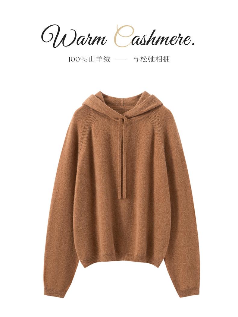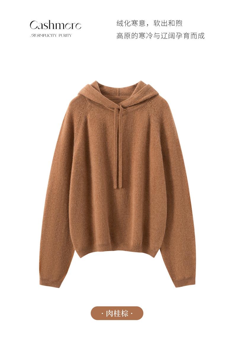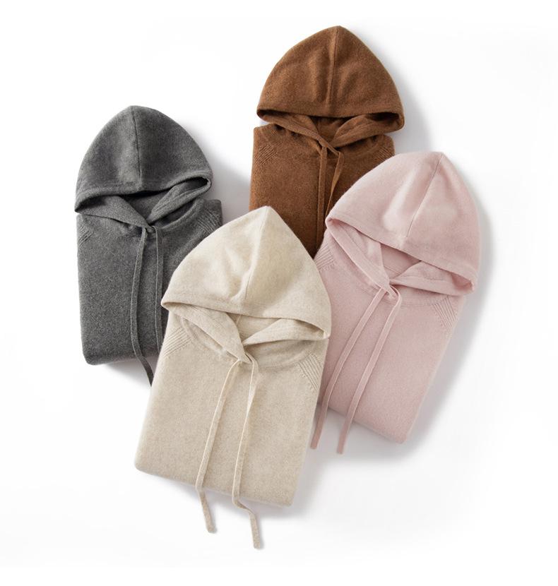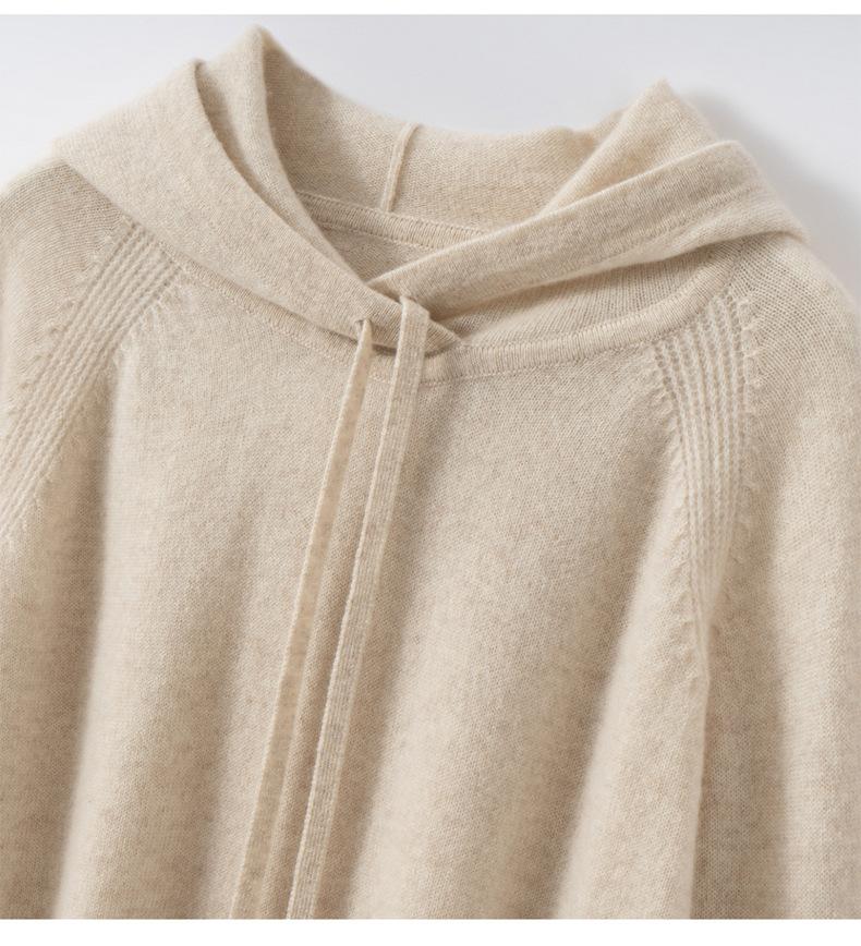Suéter de cachemira 100% cachemira pura para mujer con capucha holgado casual versátil simple otoño e invierno nuevo suéter de punto