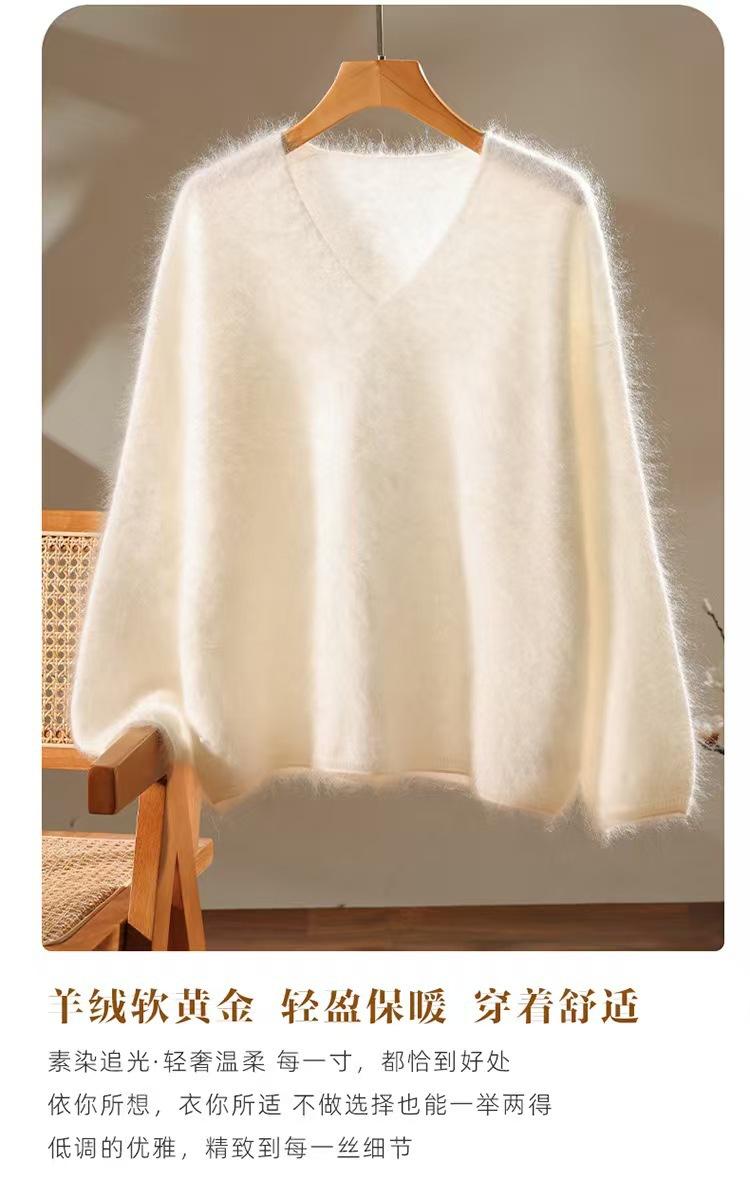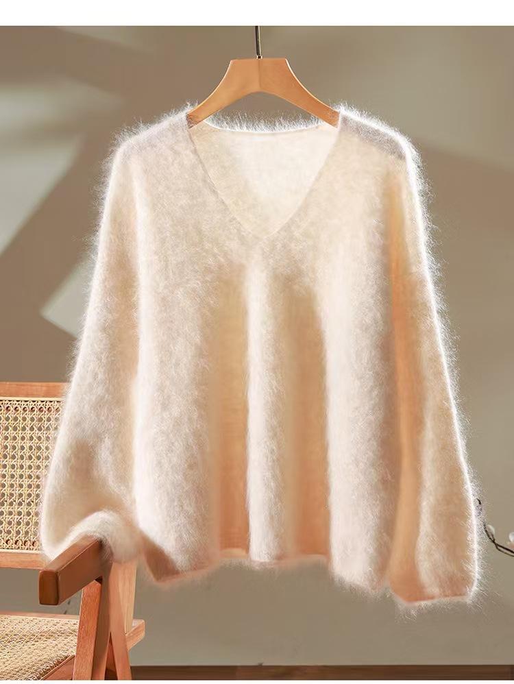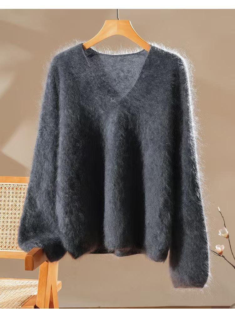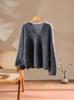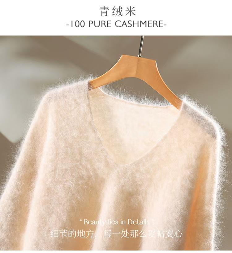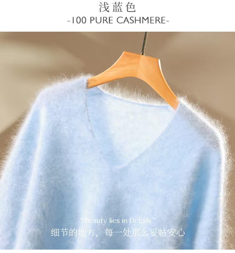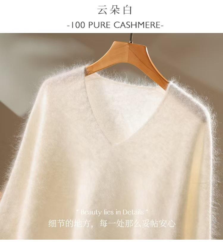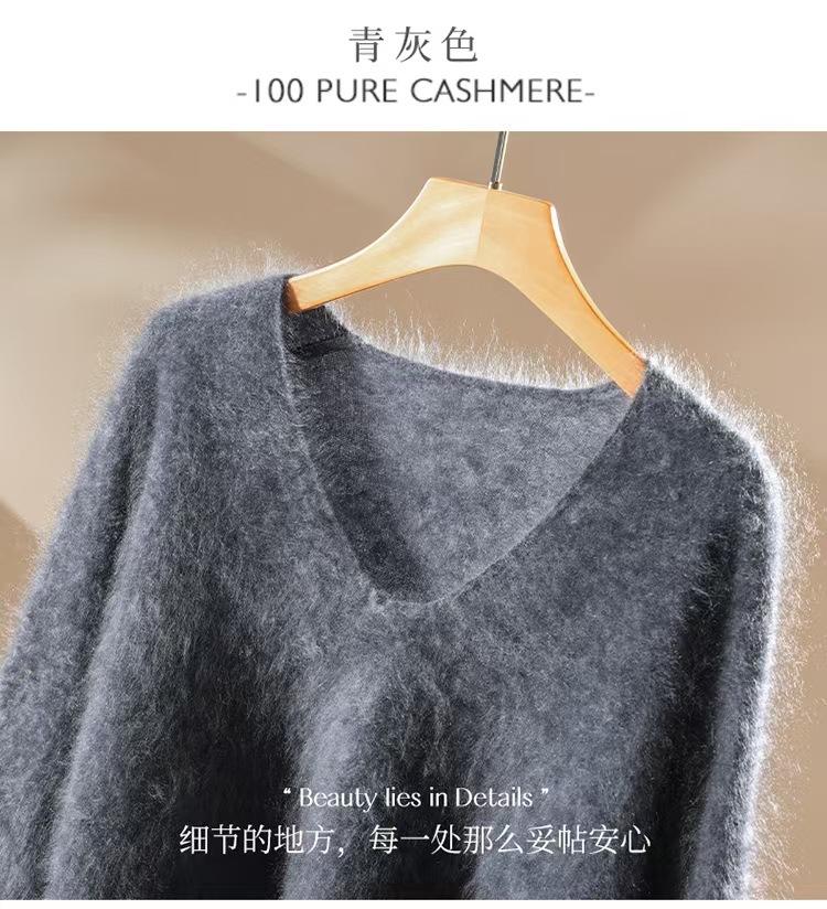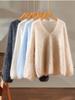 Suéter de cachemira pura 100% cepillada con cuello en V para mujer, nuevo suéter básico de punto holgado para otoño e invierno, top cepillado