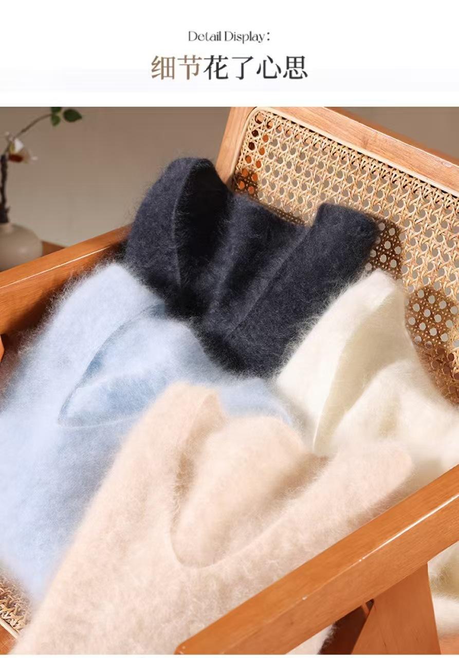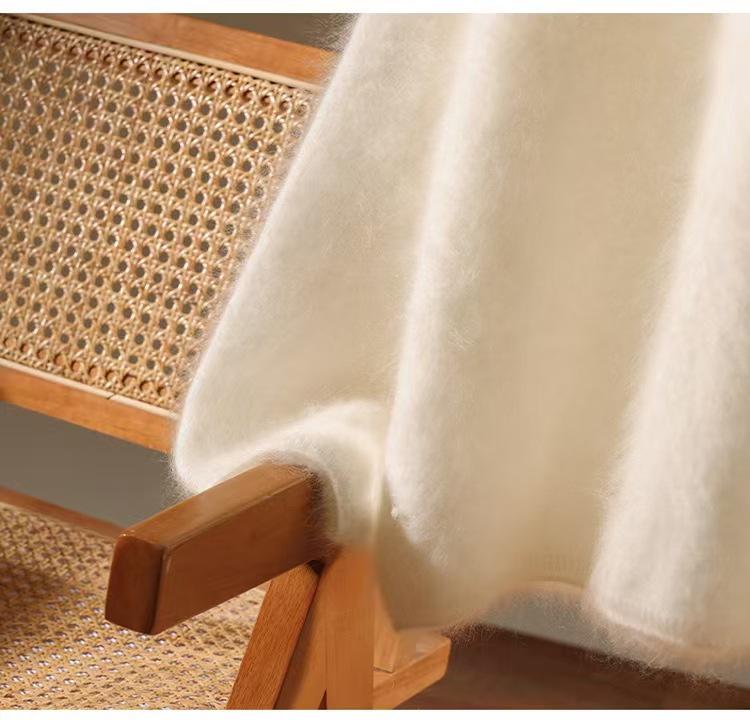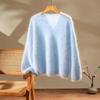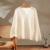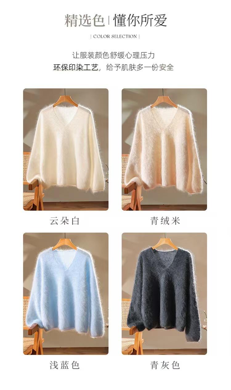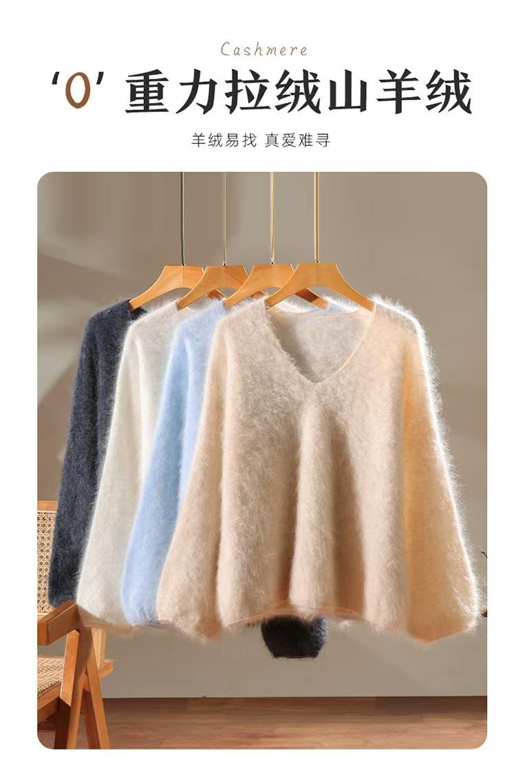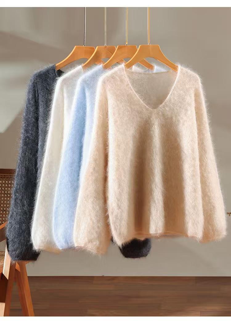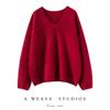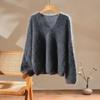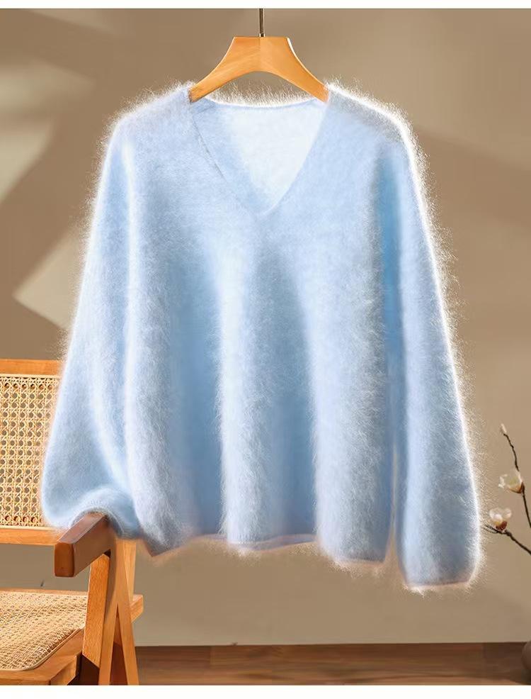 Suéter de cachemira pura 100% cepillada con cuello en V para mujer, nuevo suéter básico de punto holgado para otoño e invierno, top cepillado