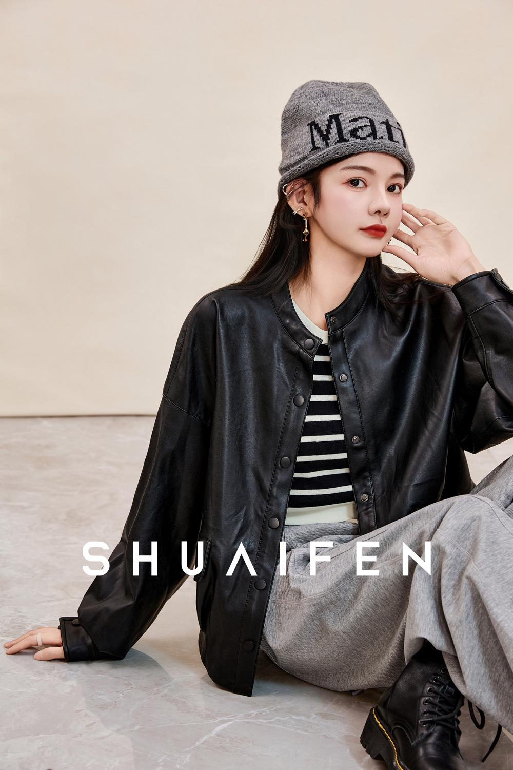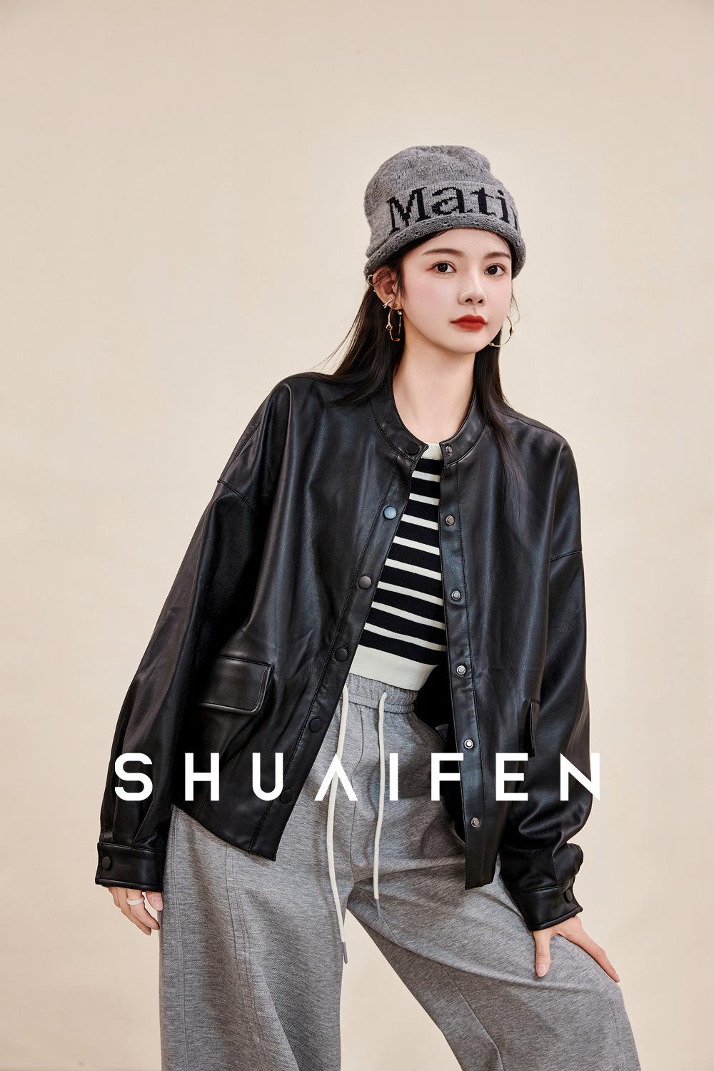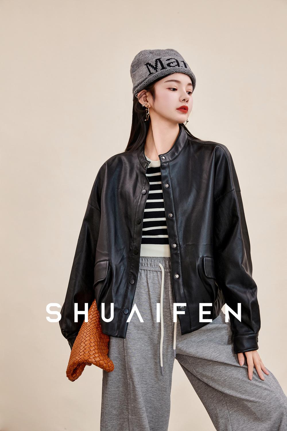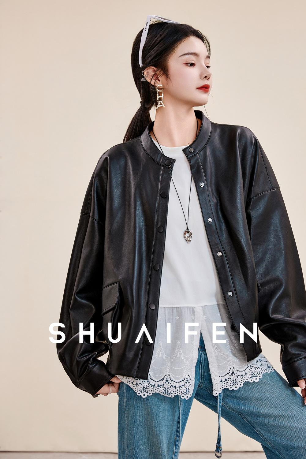 Shuai Fen Simple y Elegante Cuero Proteico Versátil Casual Cuello Redondo Chaleco de Cuero PU Chaqueta de Cuero con Forma de Capullo para Mujer E01H009146RMBComprar ahora>
