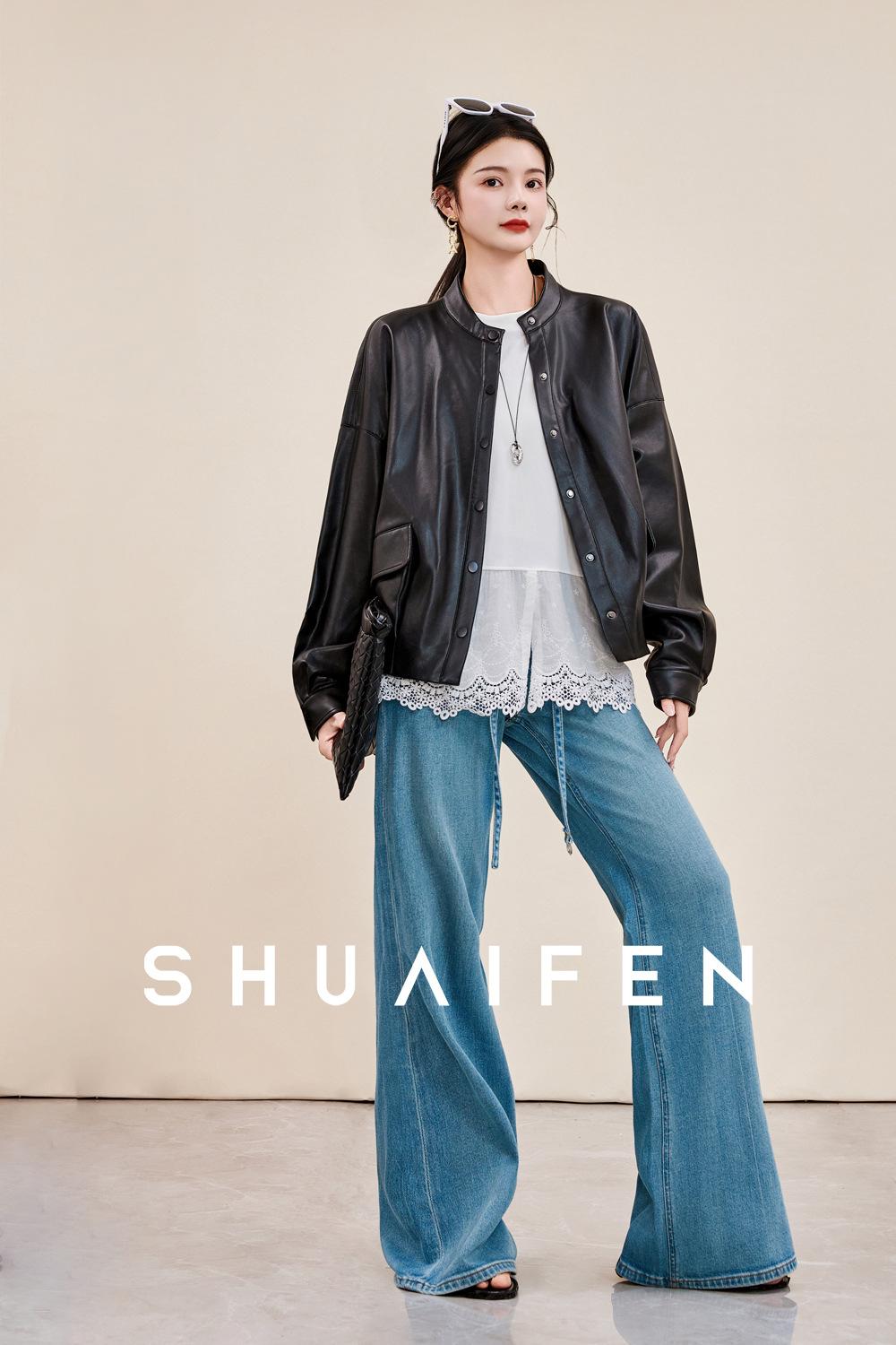 Pantalones de Cuero Shuai Fen Seattle Cuero de Proteína de Lujo Ligero Pantalones de Cuero Otoño 2025 Casual Sueltos Encaje Pierna Ancha Pantalones Recortados118RMBComprar ahora>