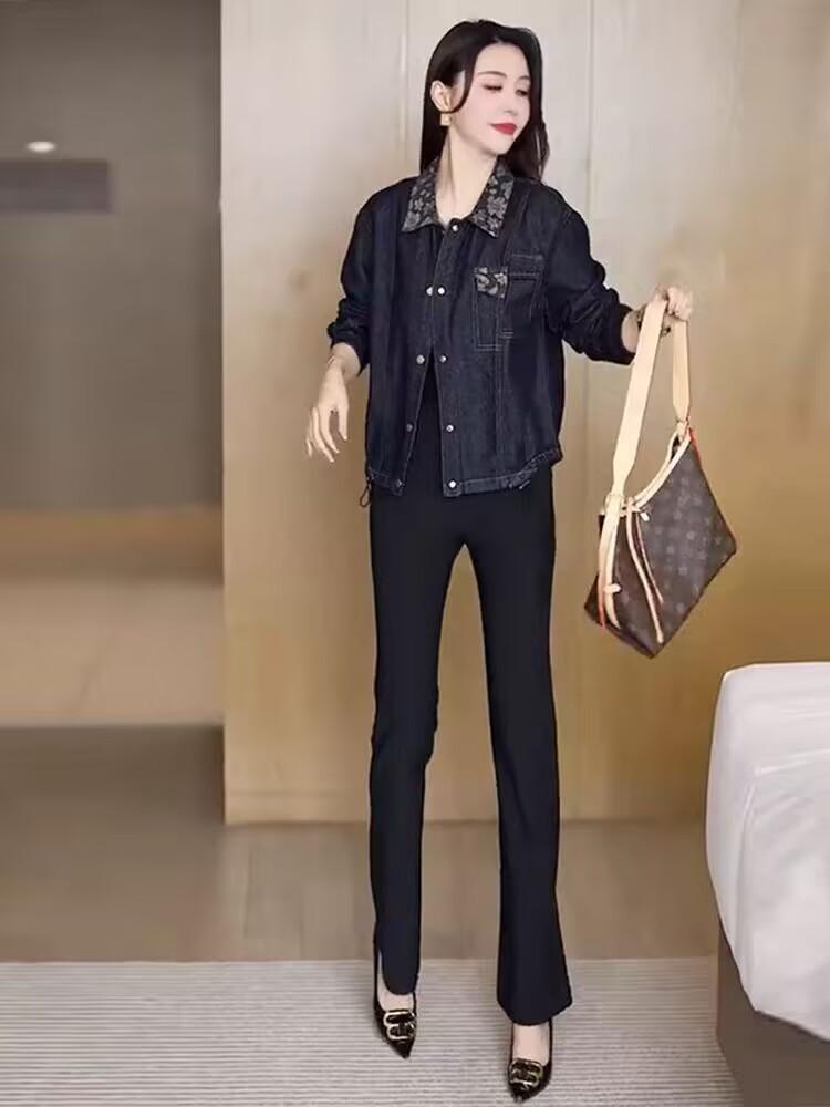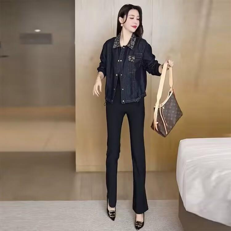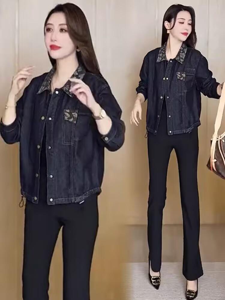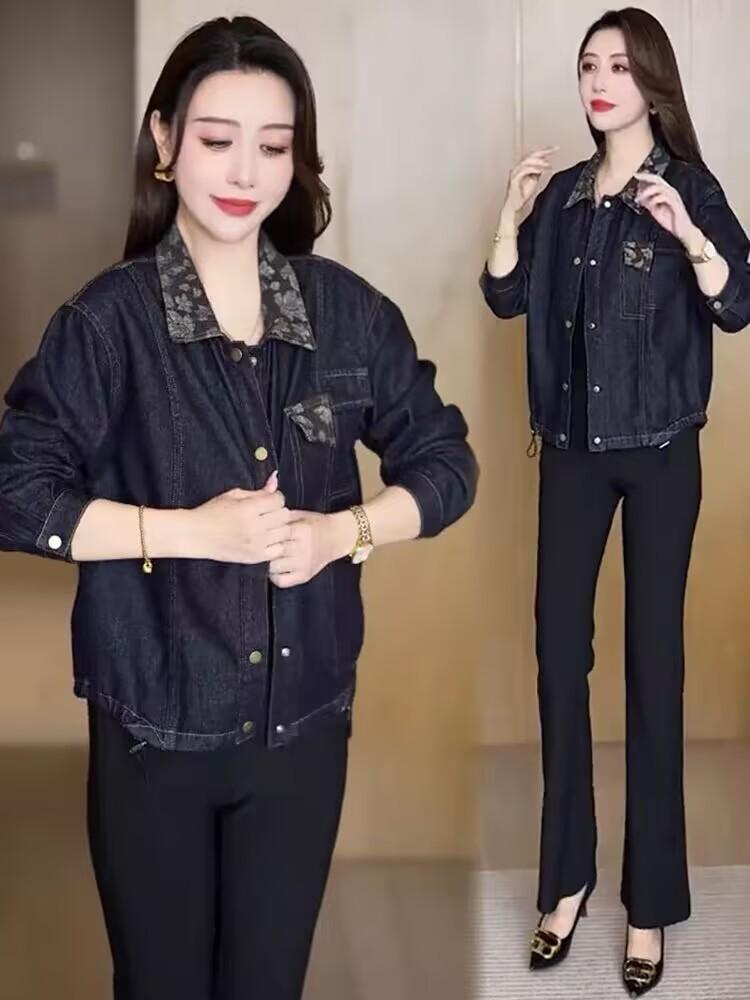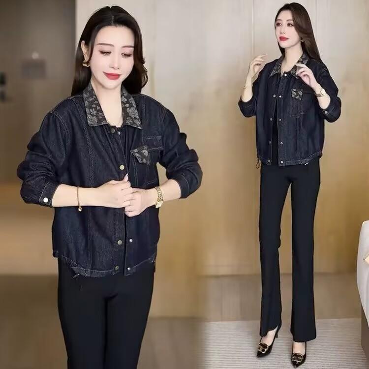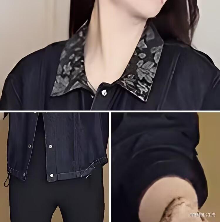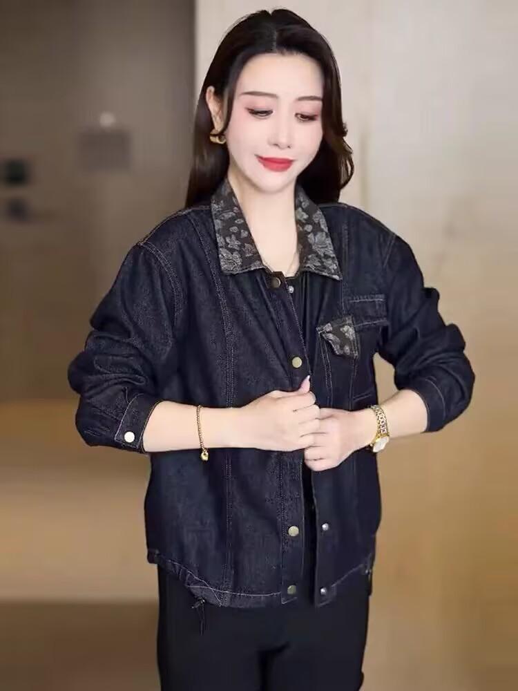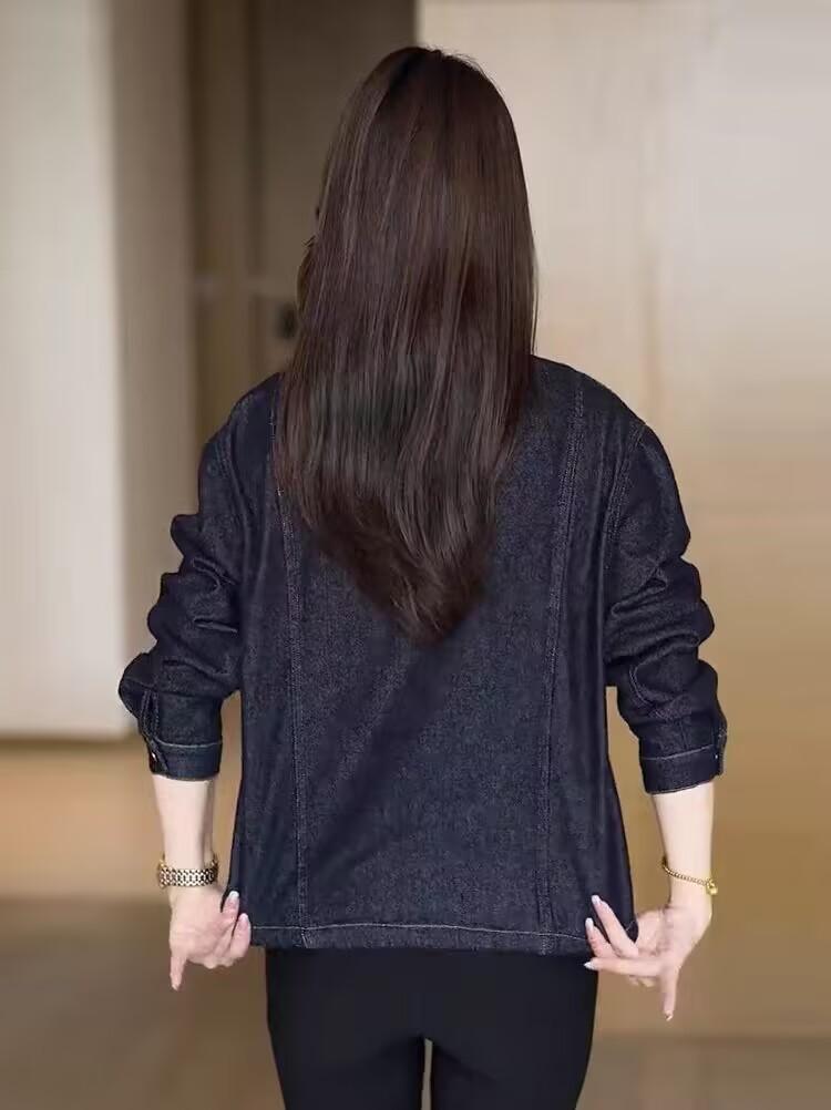 Chaqueta Corta de Mezclilla Casual de Moda para Mujer 2025 Otoño Nuevo Estilo Elegante Suelta Adelgazante Versátil Chaqueta con Solapa Top