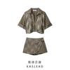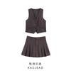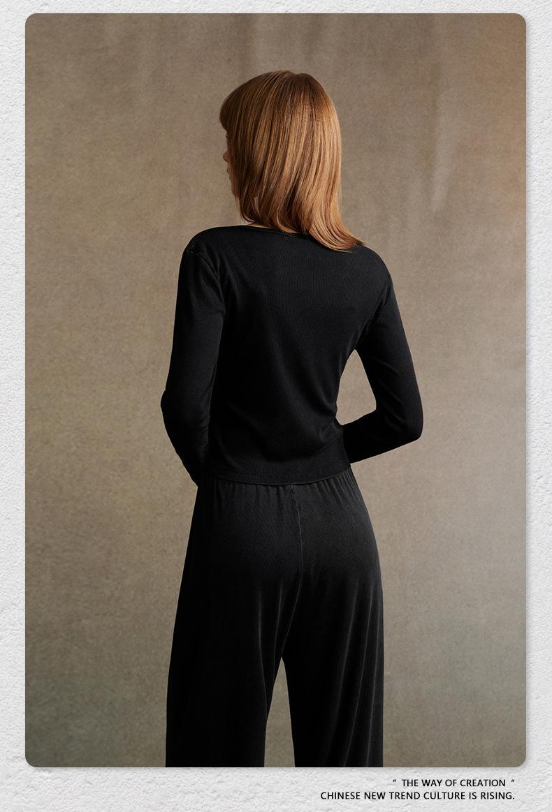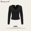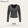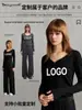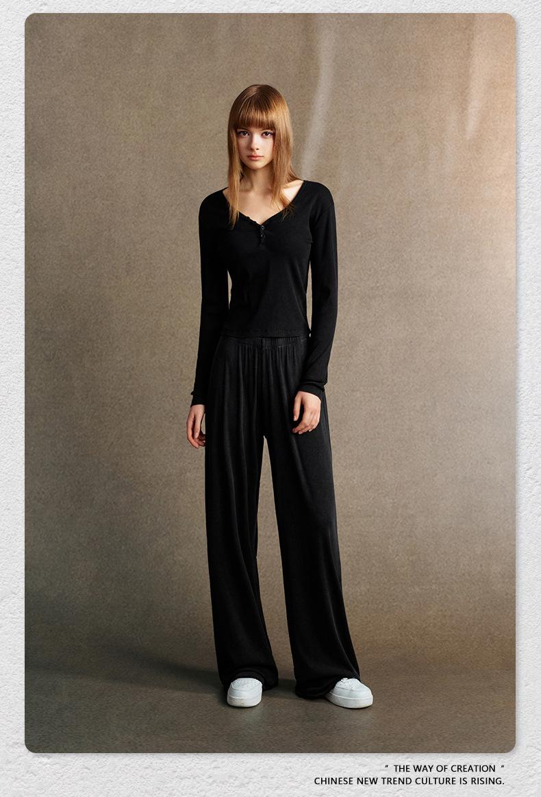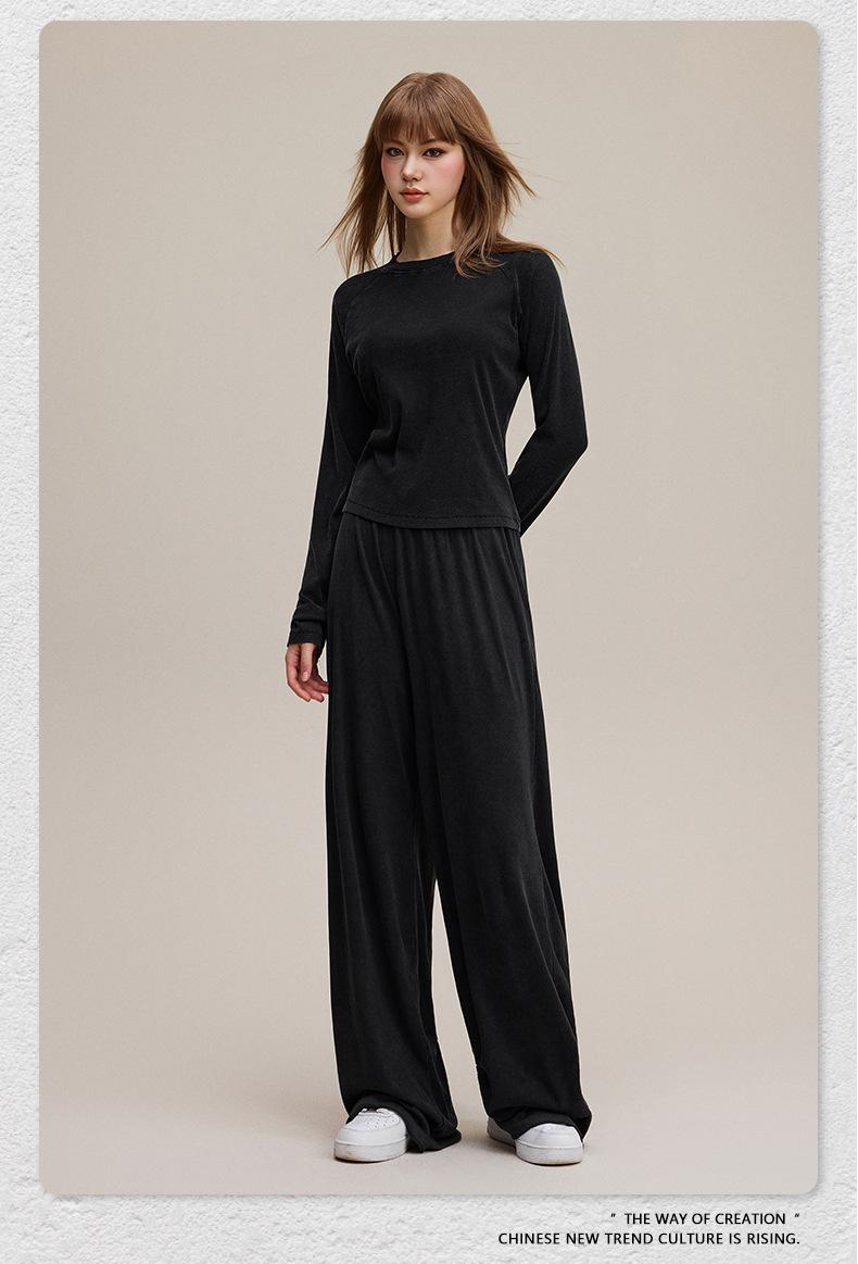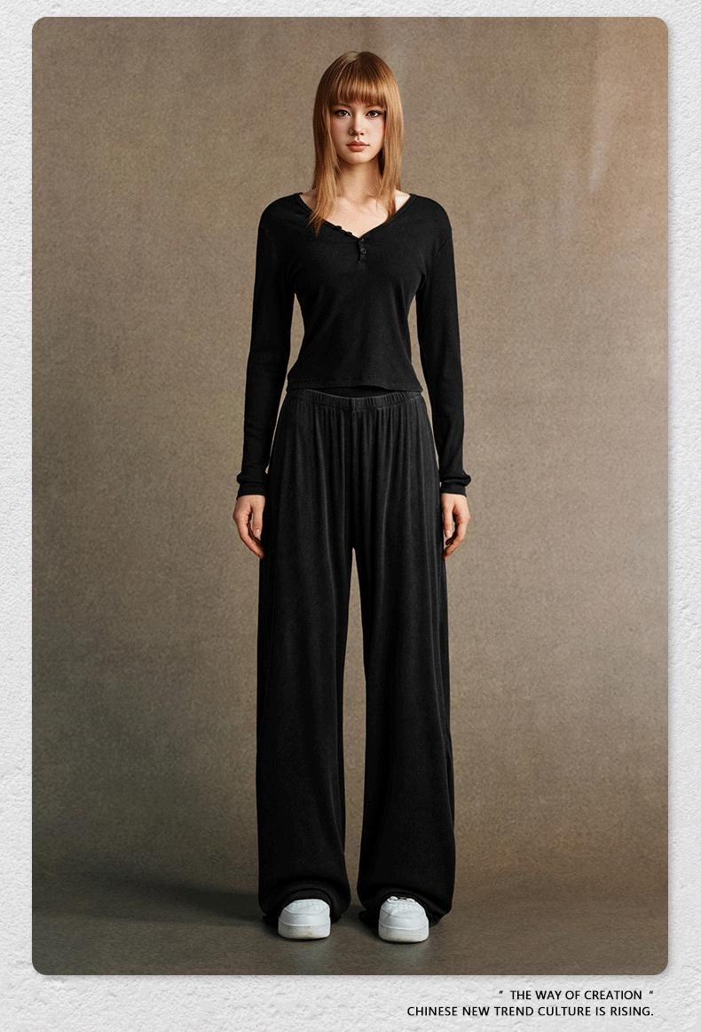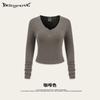 Estilo Callejero|Otoño 2025 Diseño Americano de Chica Sexy Cuello en V Manga Larga Ajustado Lavado Pierna Recta Pantalón Largo Set Mujer