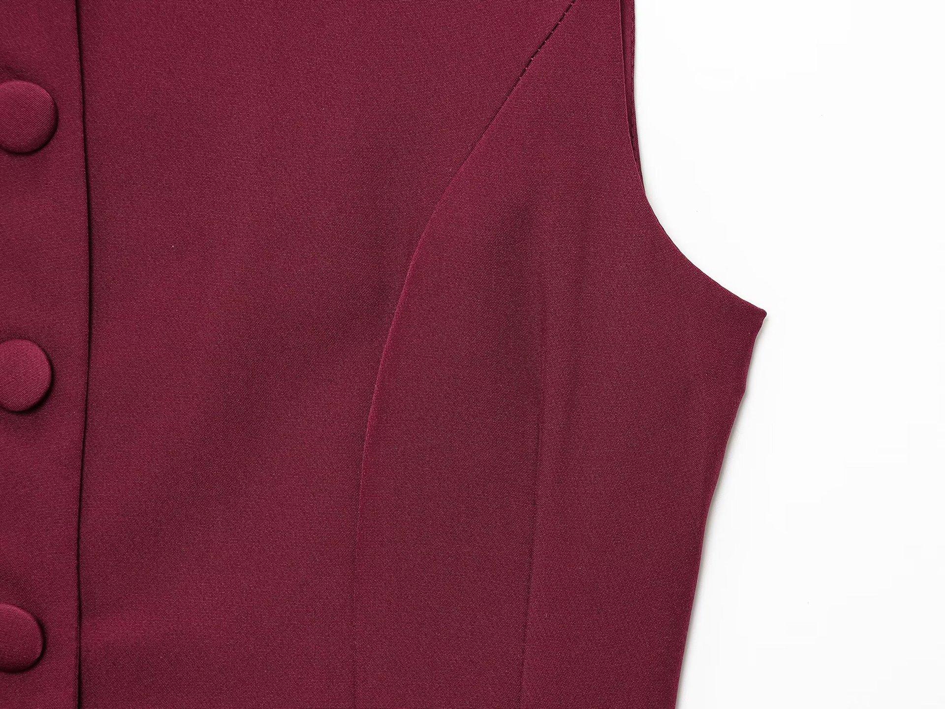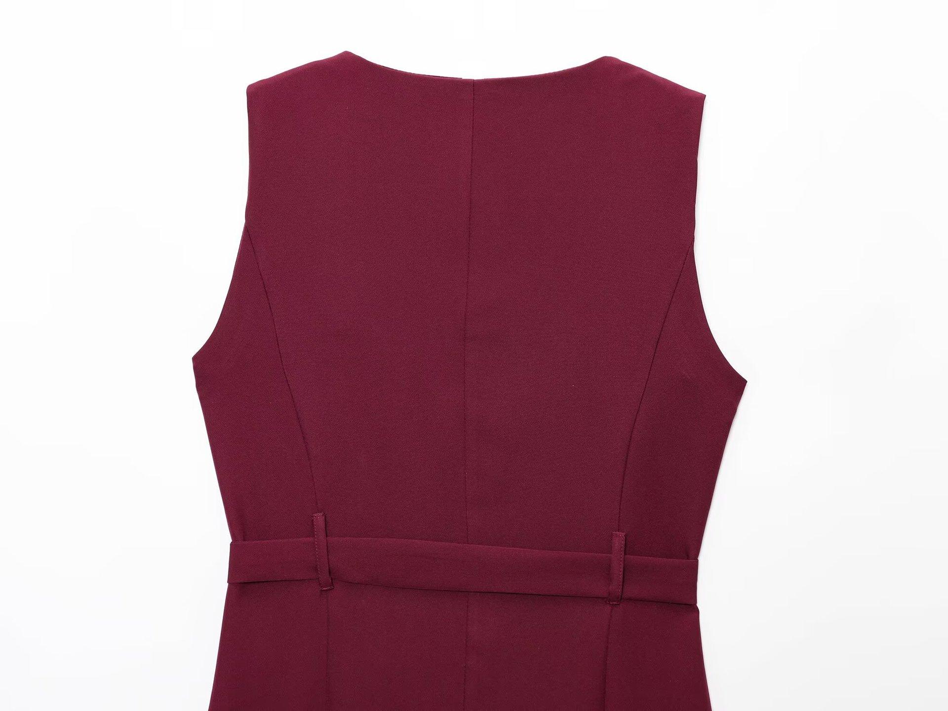 2025 Ropa Nueva de Verano para Mujer Estilo Europeo y Americano Moda Sencilla Ajustada de Un Solo Botón Vestido sin Mangas