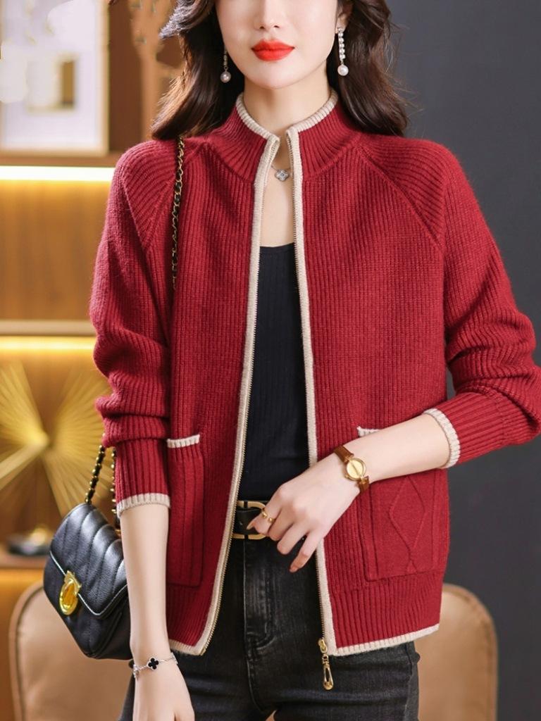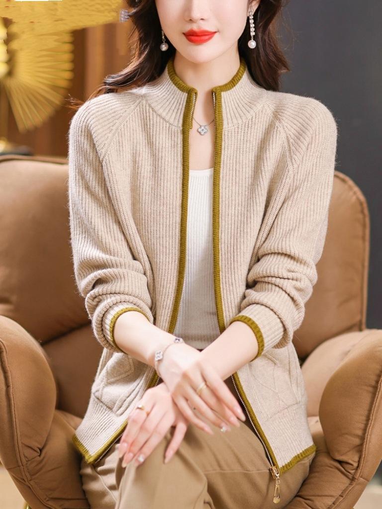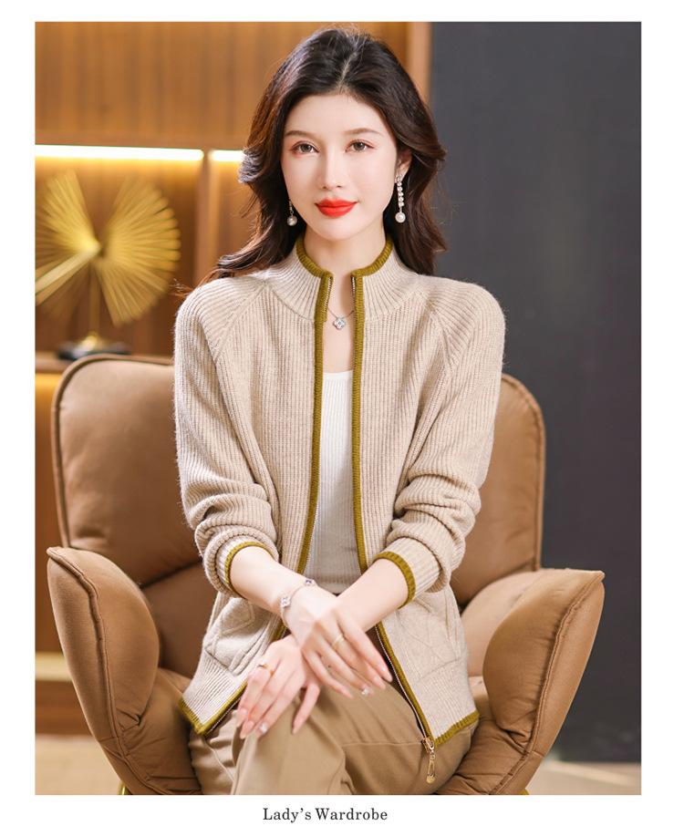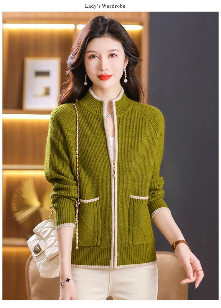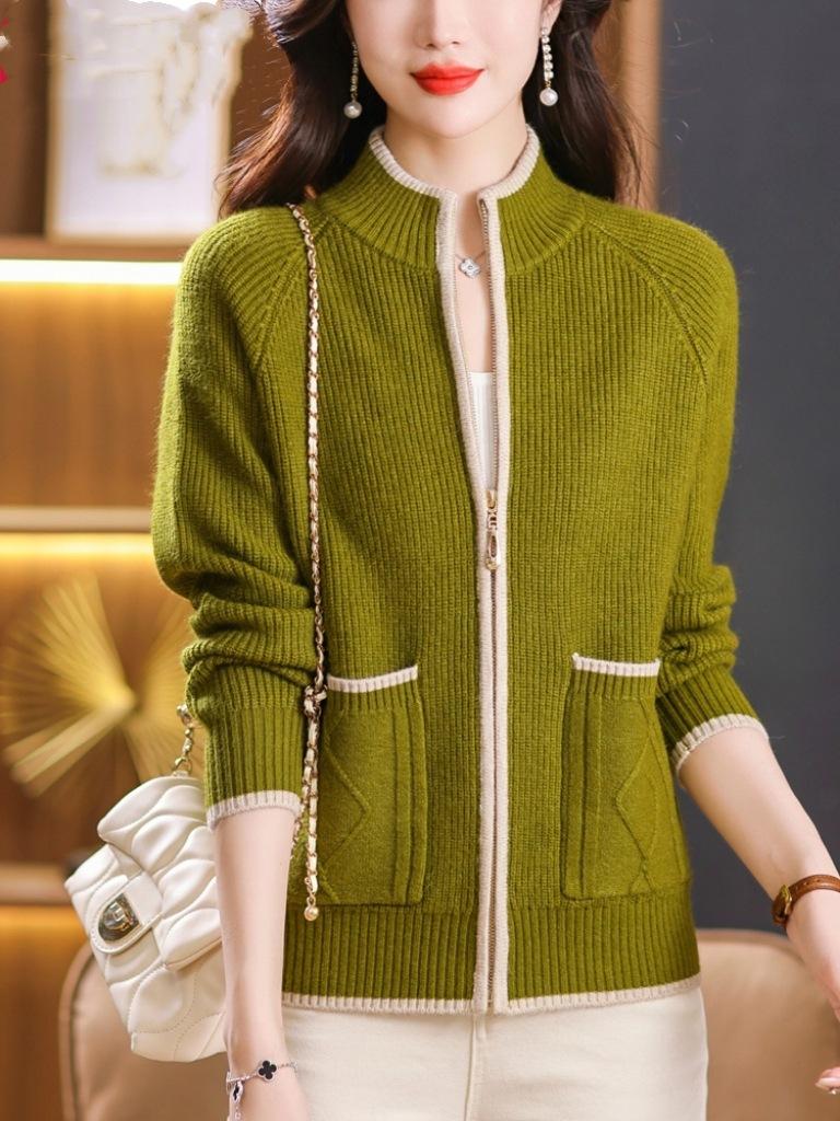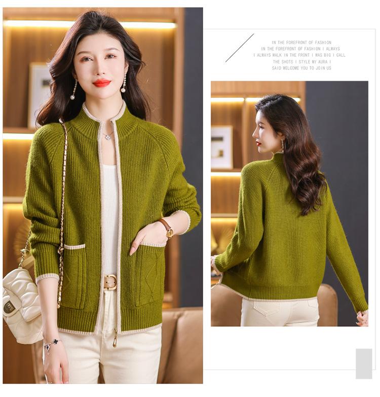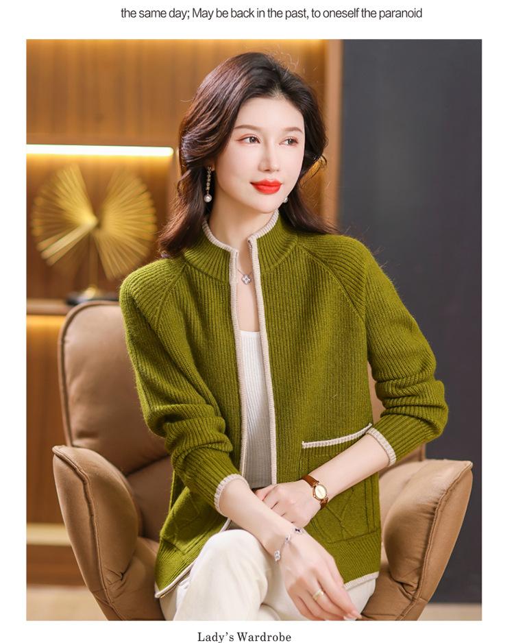 Cárdigan de Punto de Lana con Cuello Alto para Mujer Abrigo Ropa de Otoño Top Holgado Chal de Mamá Ropa Exterior