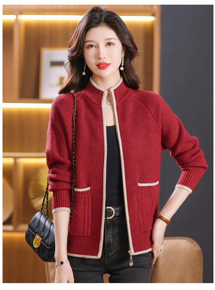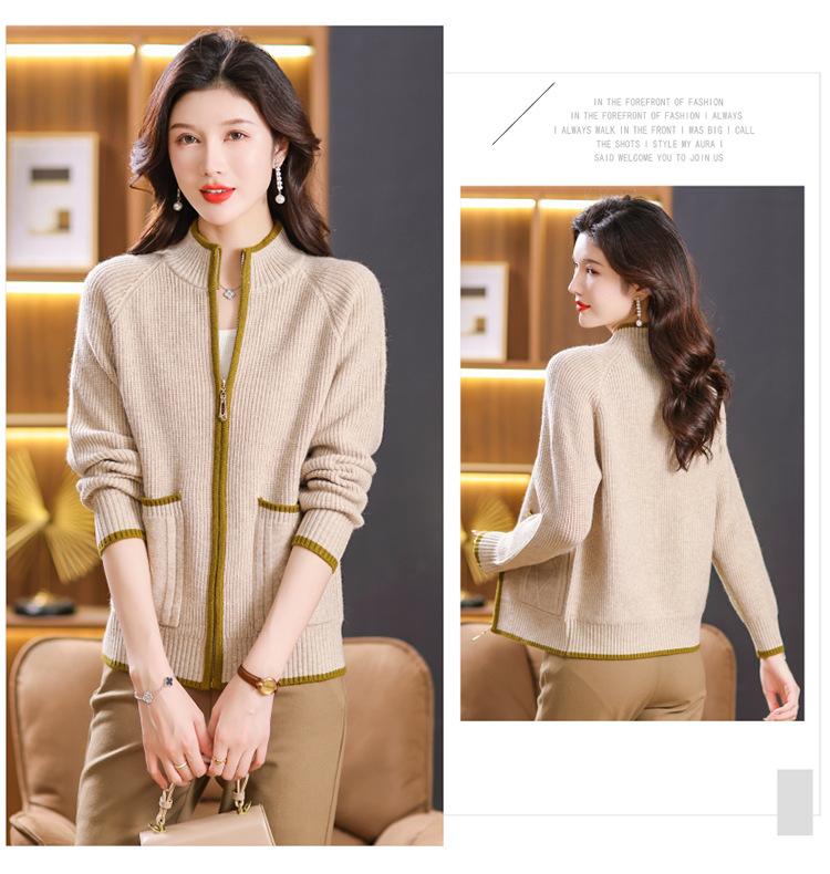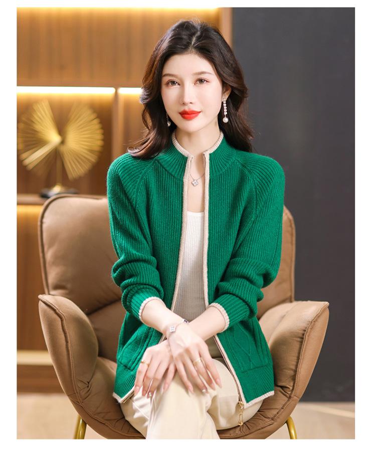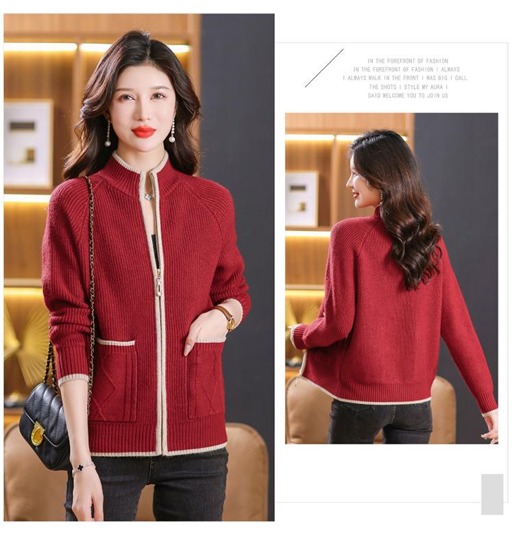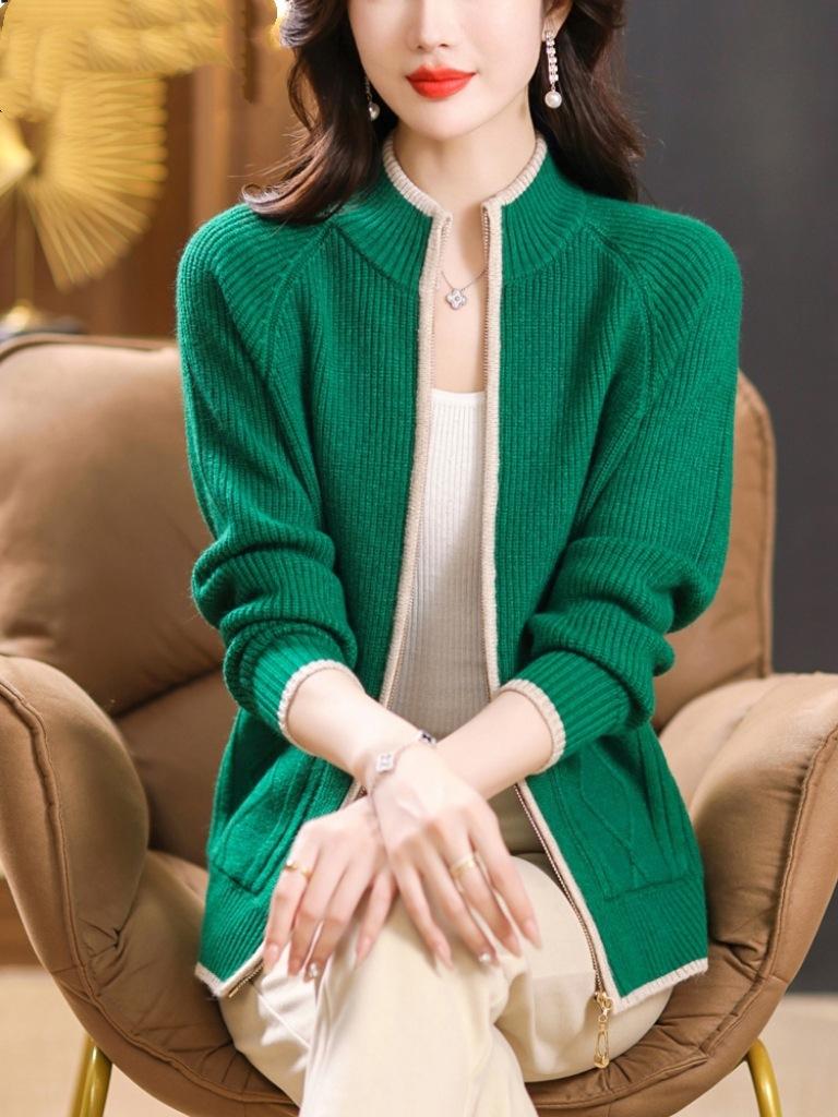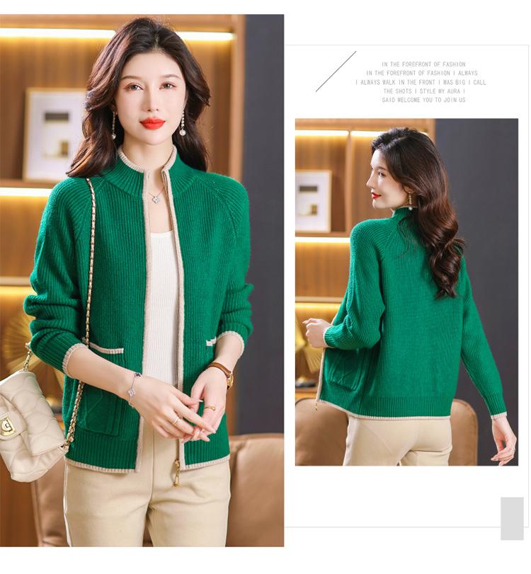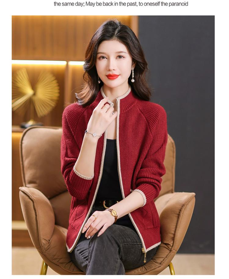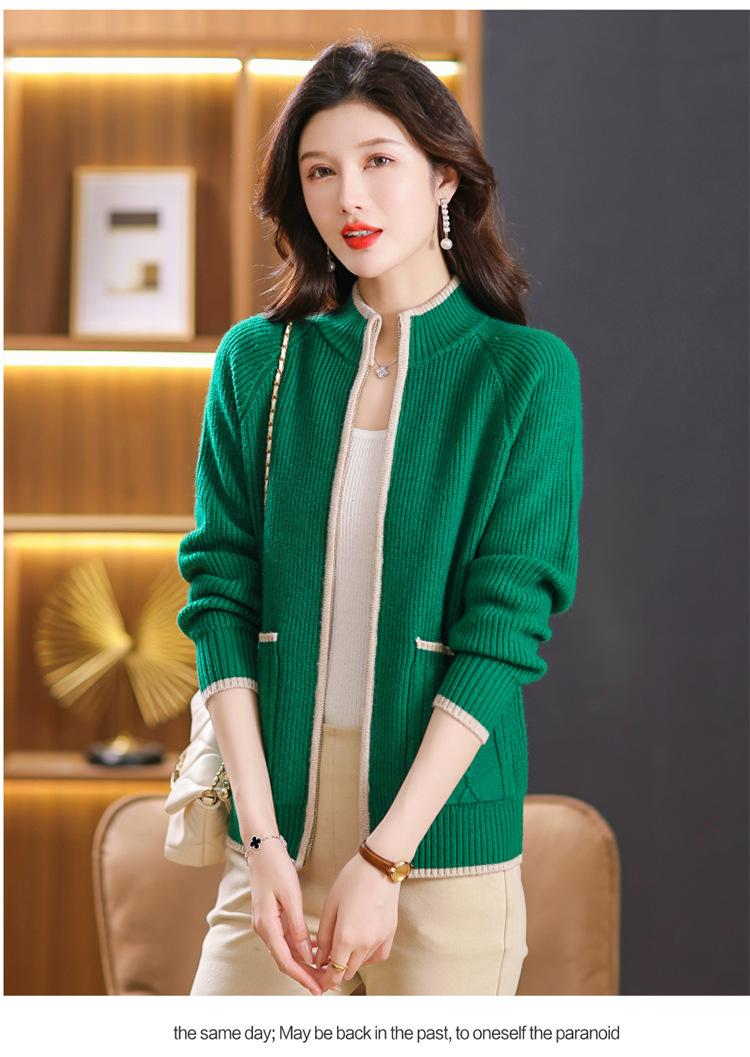 Cárdigan de Punto de Lana con Cuello Alto para Mujer Abrigo Ropa de Otoño Top Holgado Chal de Mamá Ropa Exterior