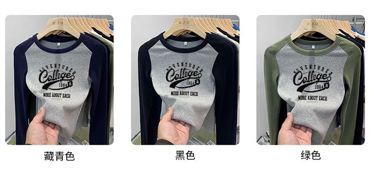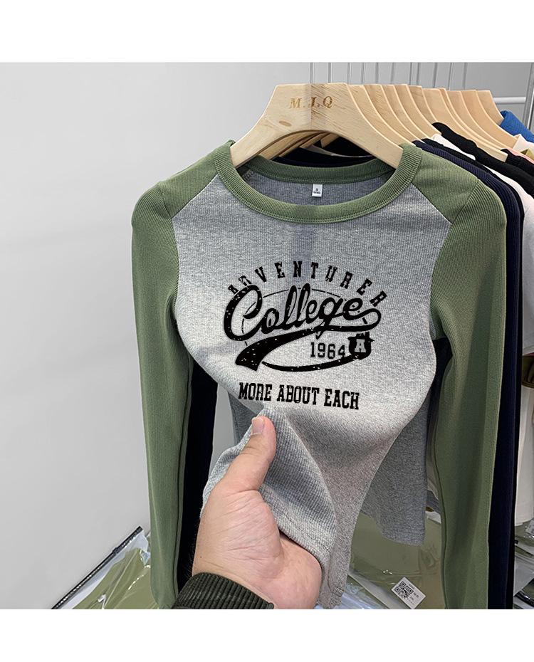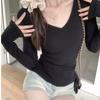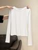 Algodón Puro Hombro Regular Ajuste Slim Camiseta de Manga Larga para Mujer Moda Chica Caliente Otoño Primavera Top Nueva Primavera Capa Interior Camiseta Base