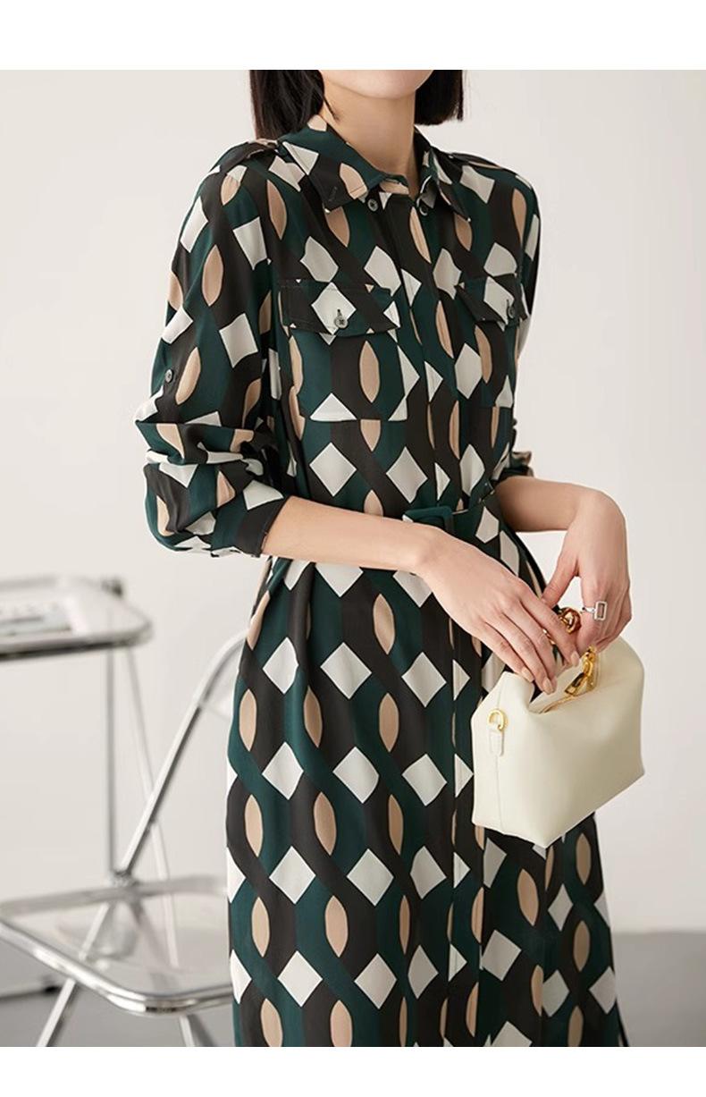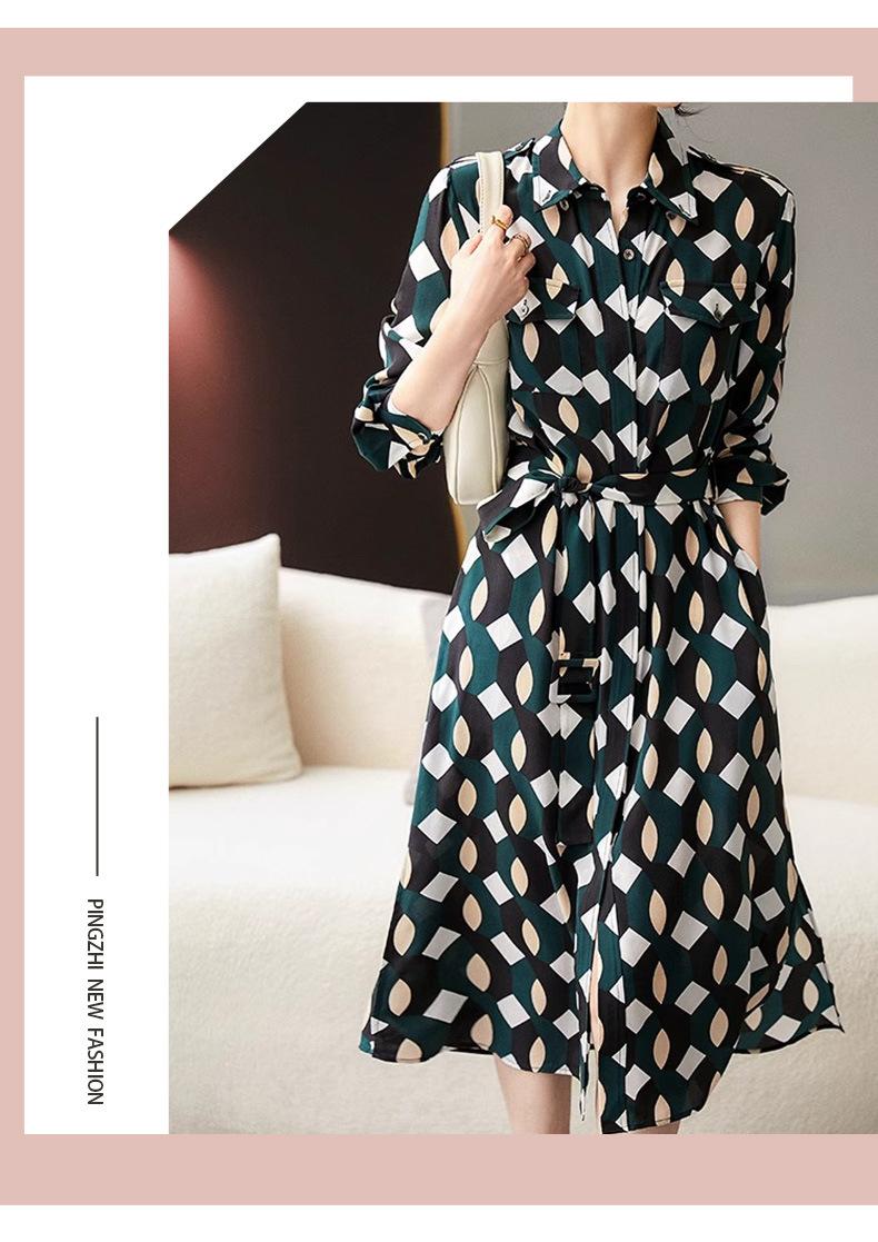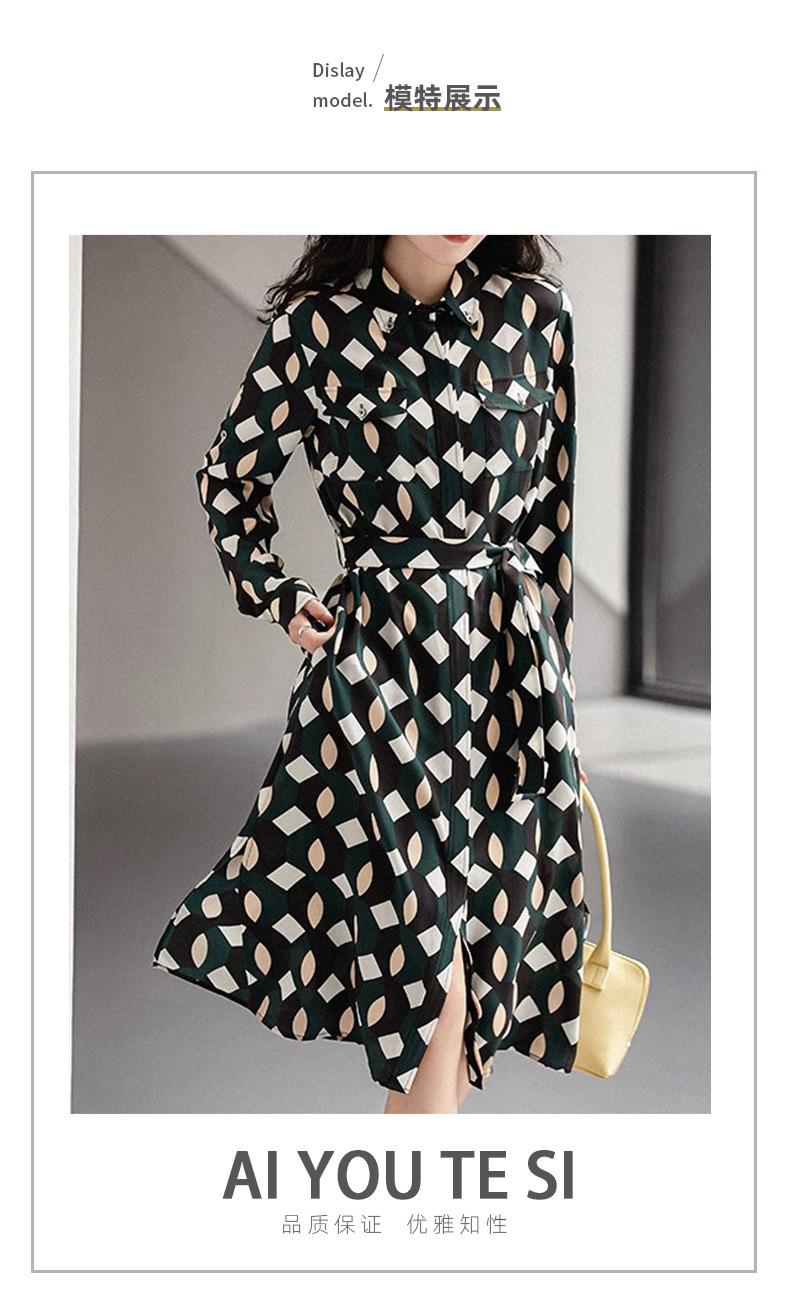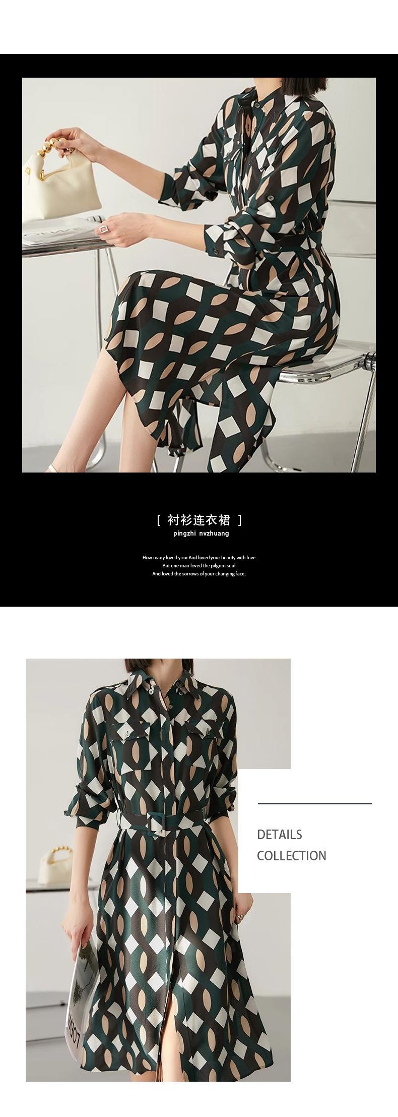 Lingge Camisa de Seda Cuello Falda Vestido de Seda de Morera Cintura Falda Larga Verano 2025 Ropa de Mujer de Alta Gama de Hangzhou
