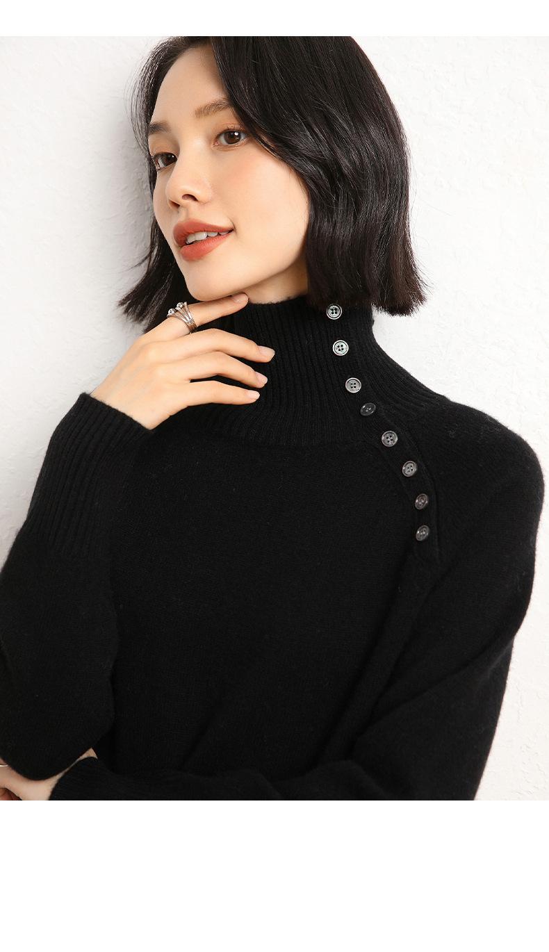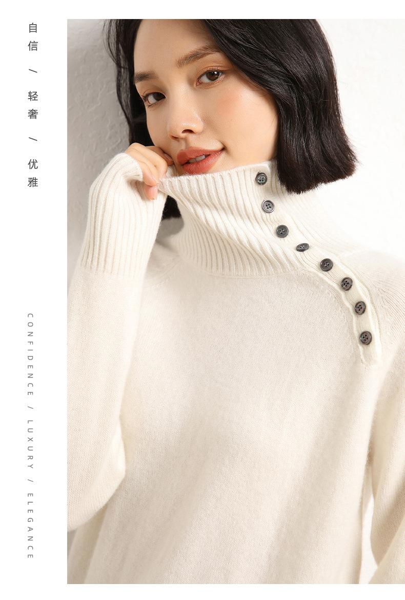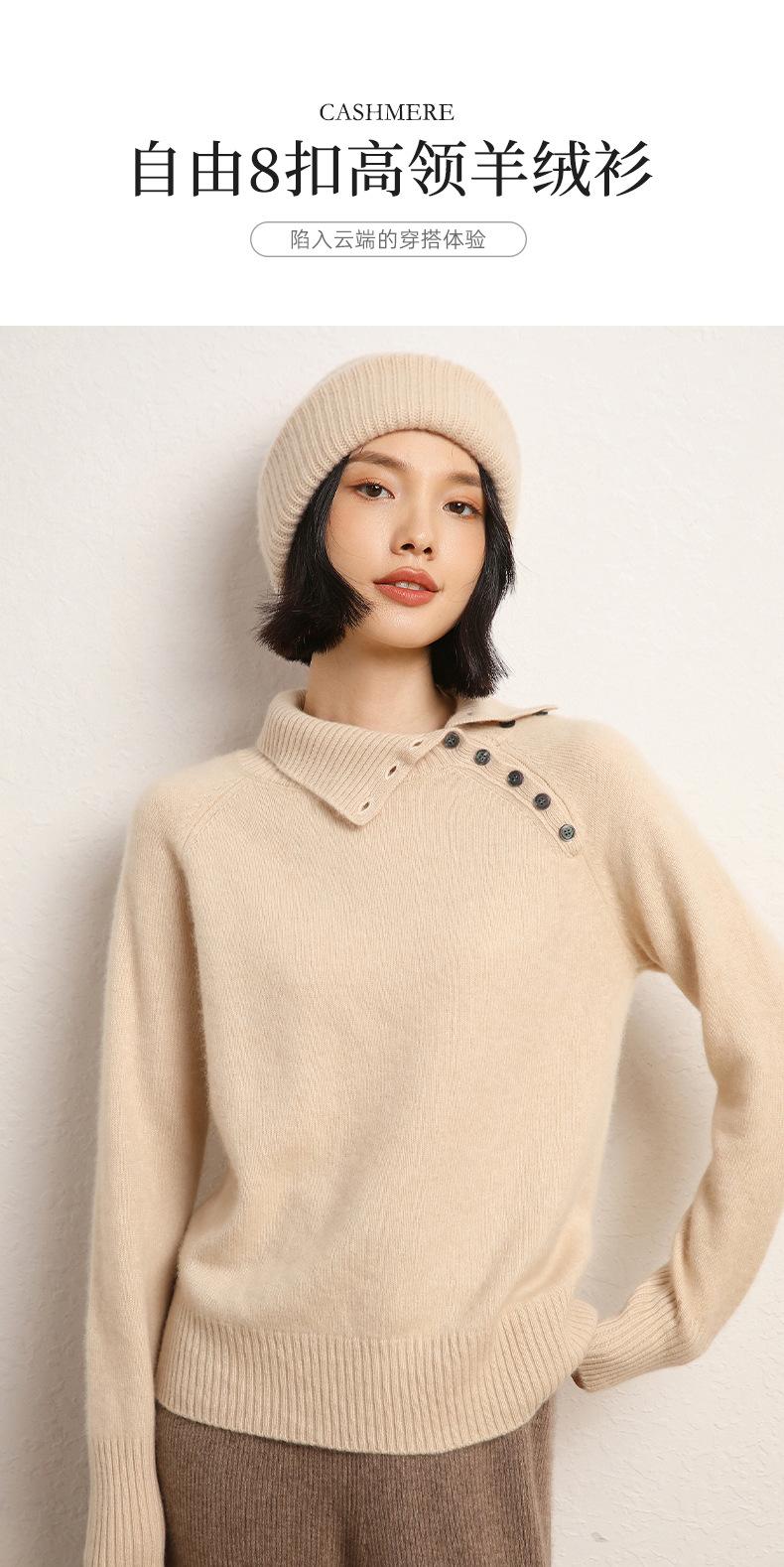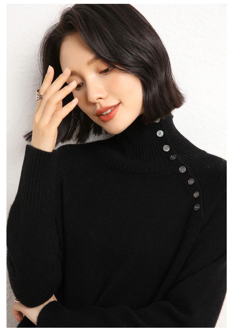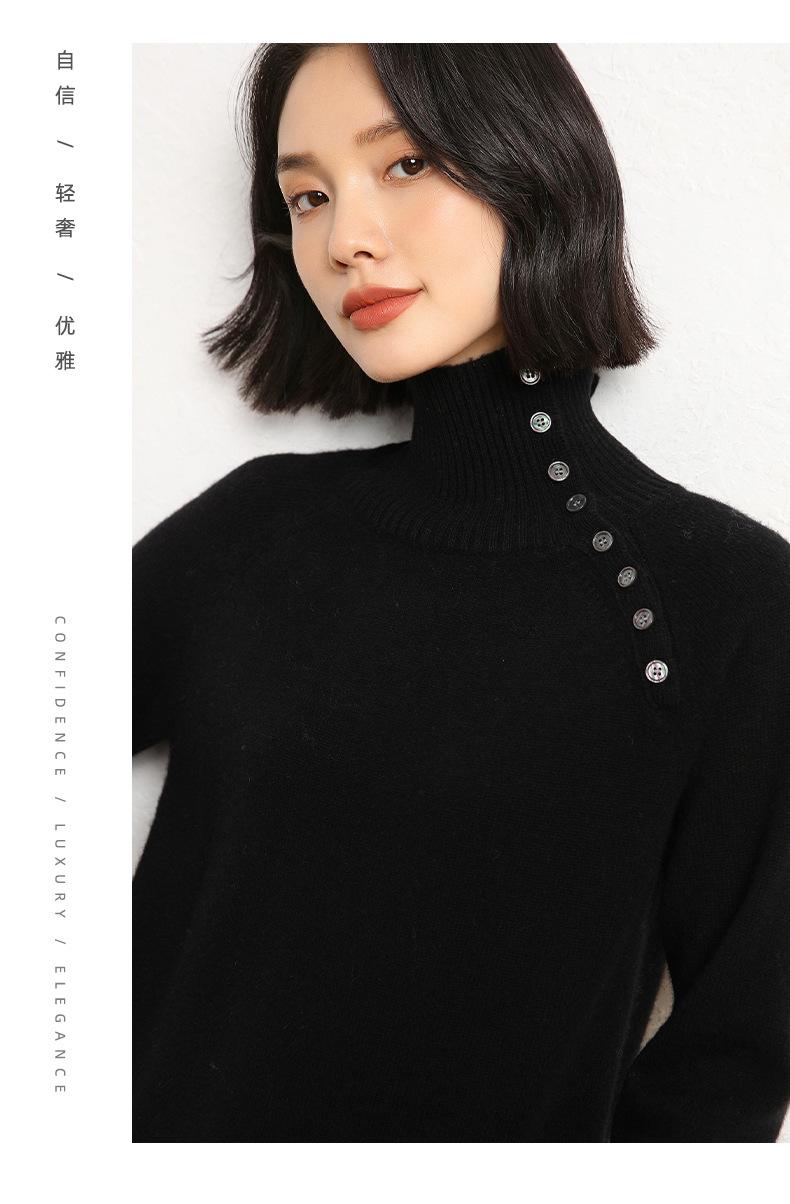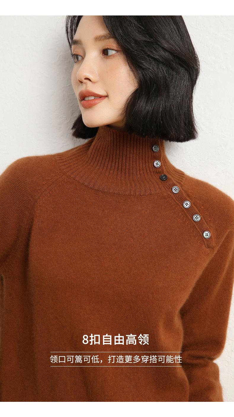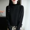 2025 Otoño/Invierno Nueva Moda Cuello Alto Suéter de Color Sólido para Mujer Ocho Botones Adelgazante para Ir al Trabajo Tejido de Cachemira Camisa Básica