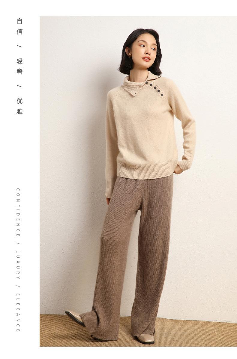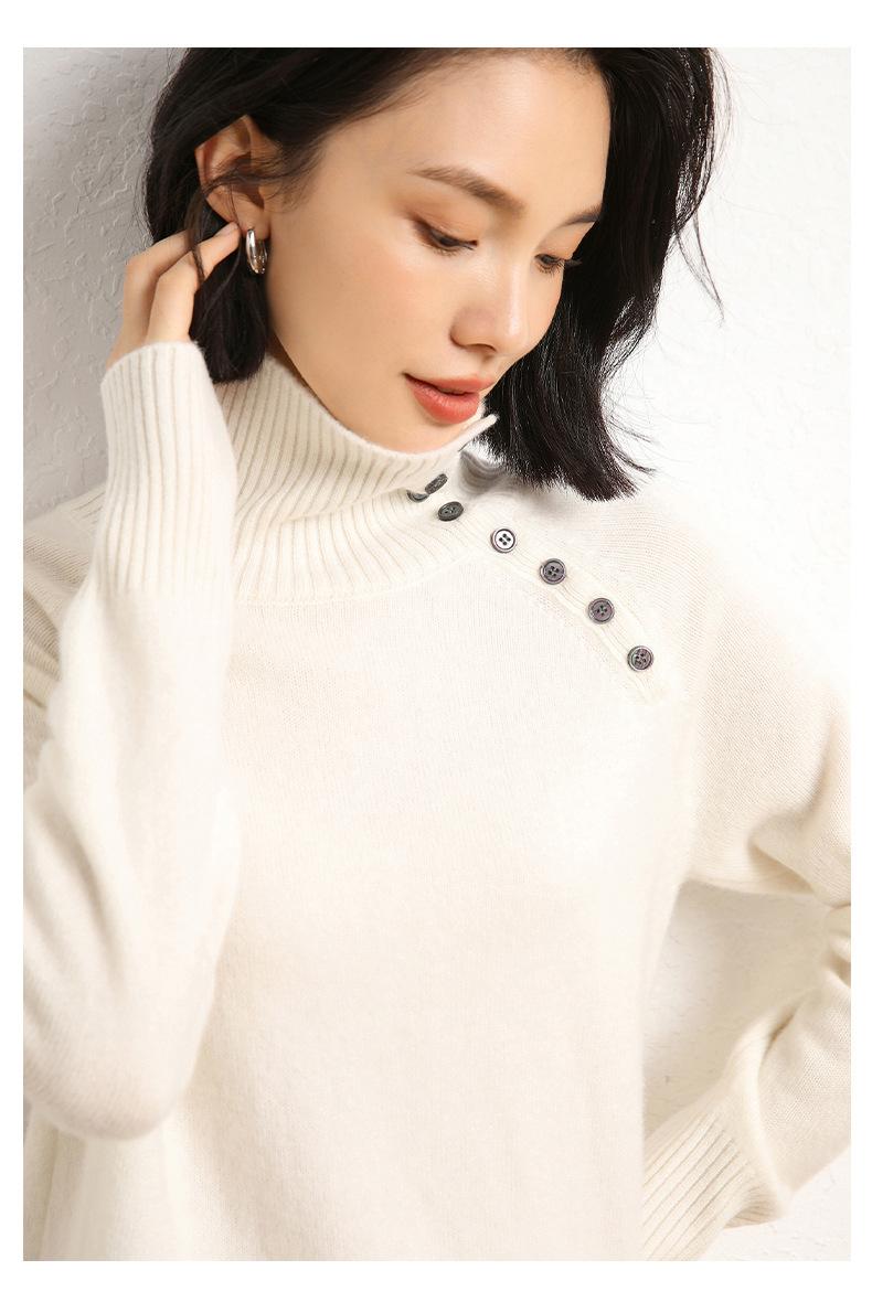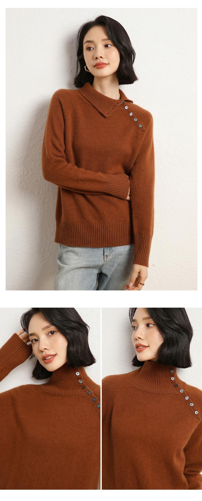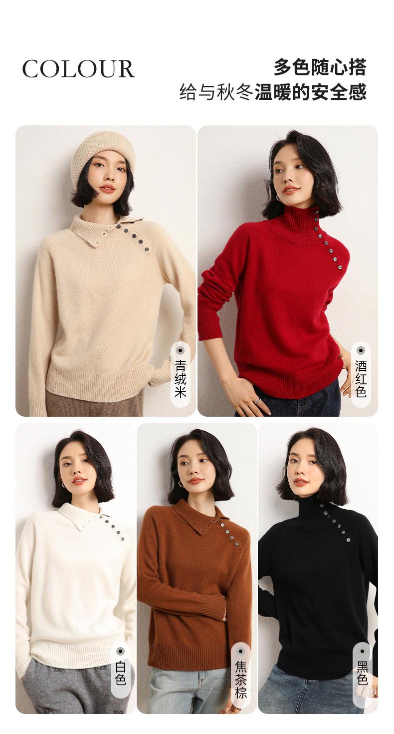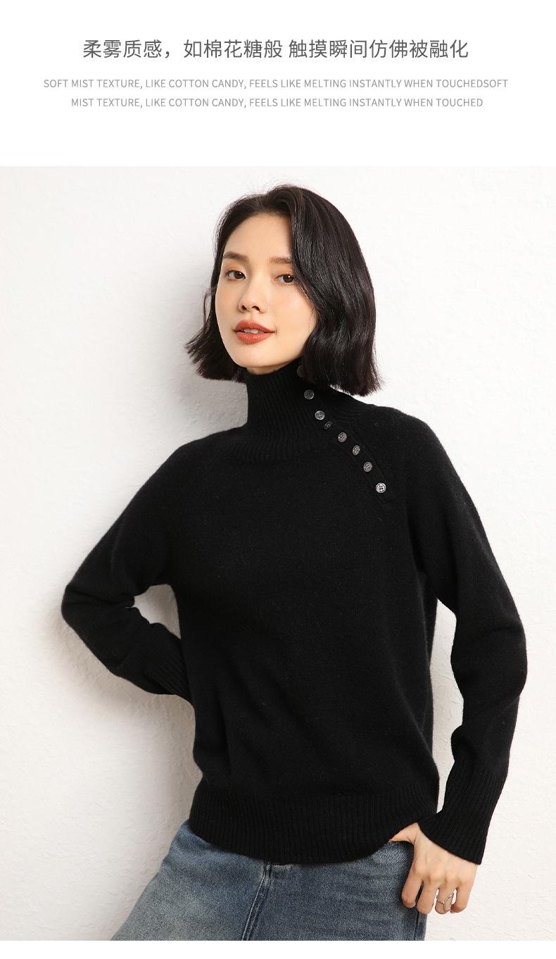 2025 Otoño/Invierno Nueva Moda Cuello Alto Suéter de Color Sólido para Mujer Ocho Botones Adelgazante para Ir al Trabajo Tejido de Cachemira Camisa Básica