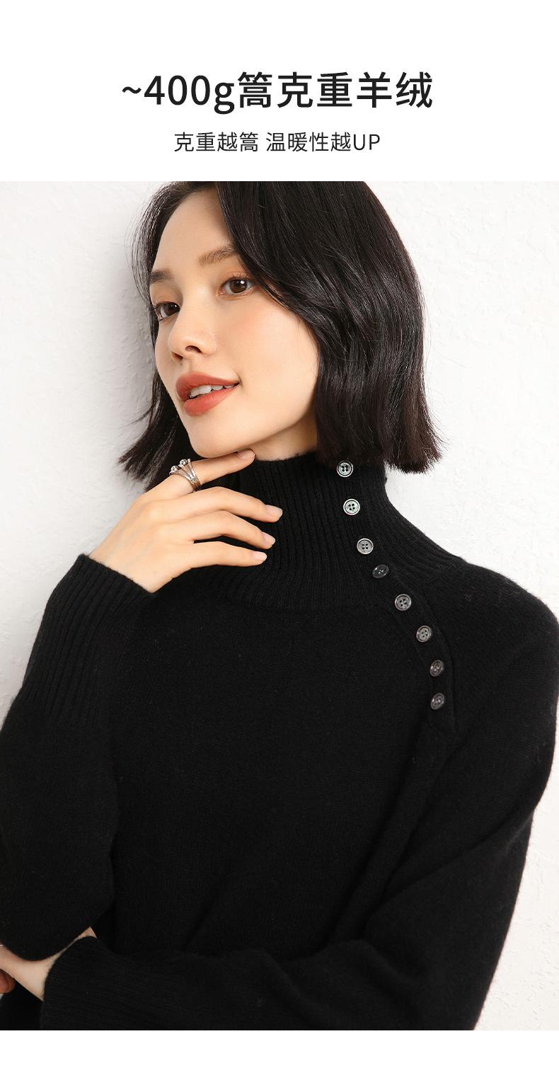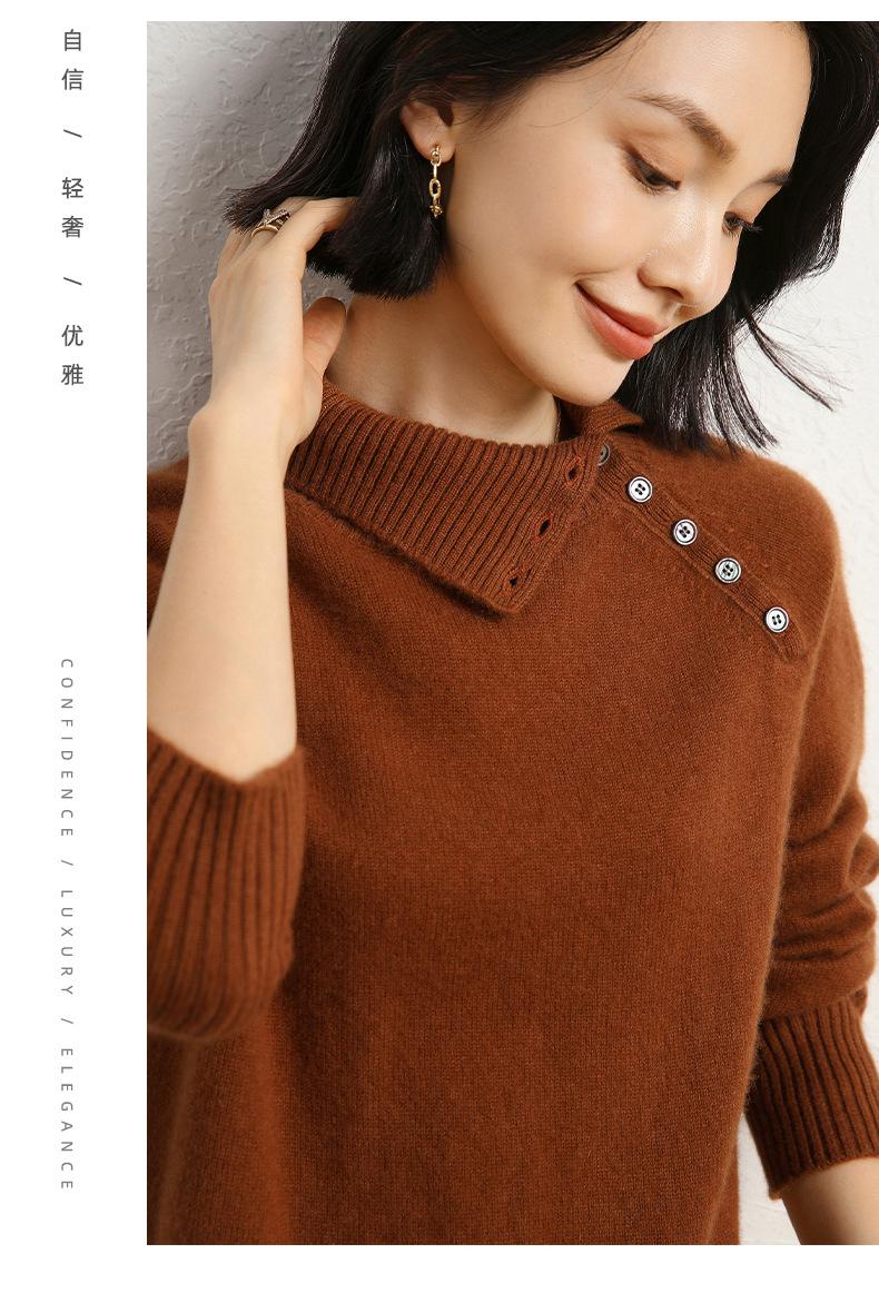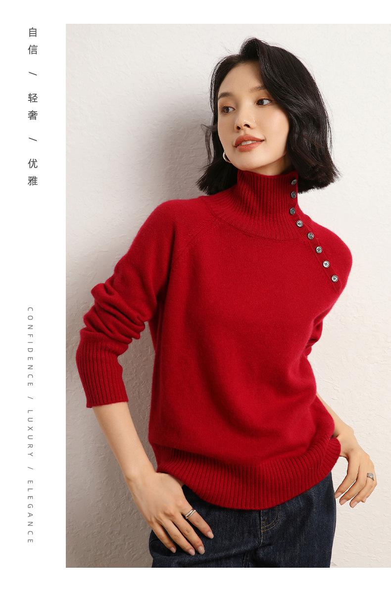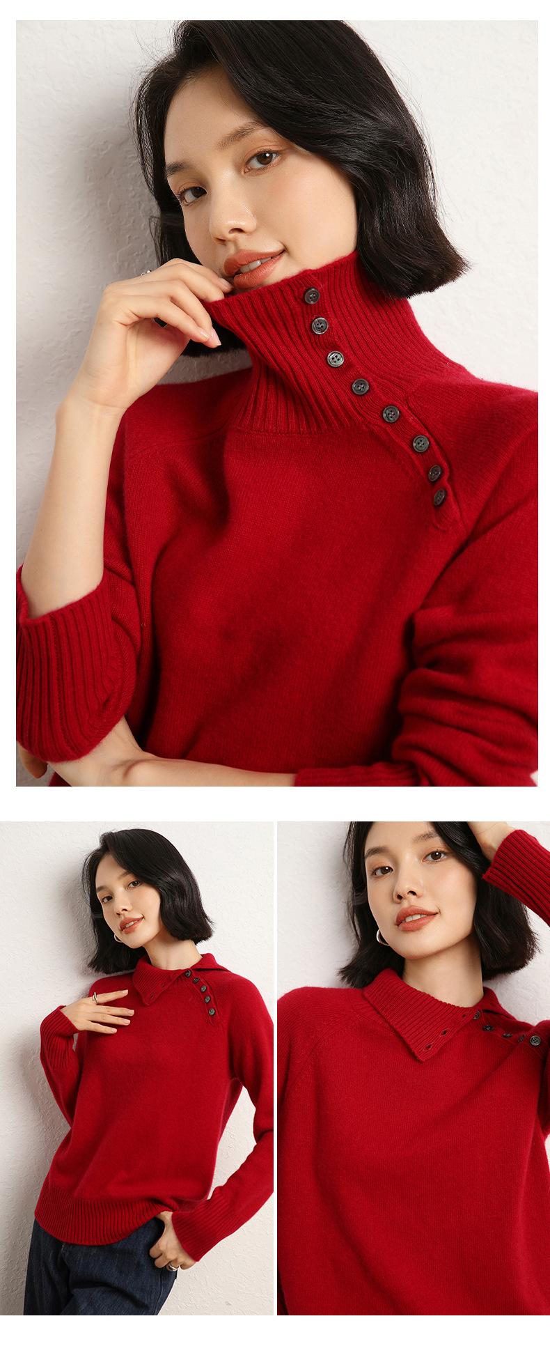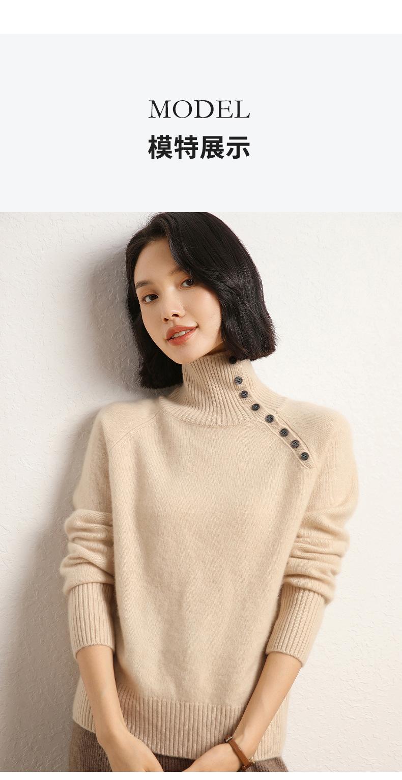 2025 Otoño/Invierno Nueva Moda Cuello Alto Suéter de Color Sólido para Mujer Ocho Botones Adelgazante para Ir al Trabajo Tejido de Cachemira Camisa Básica