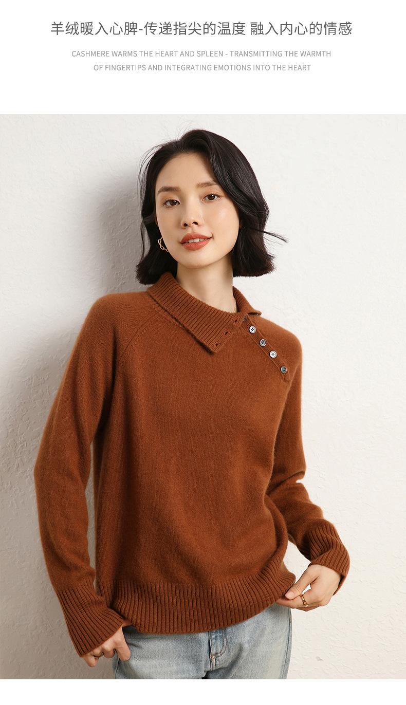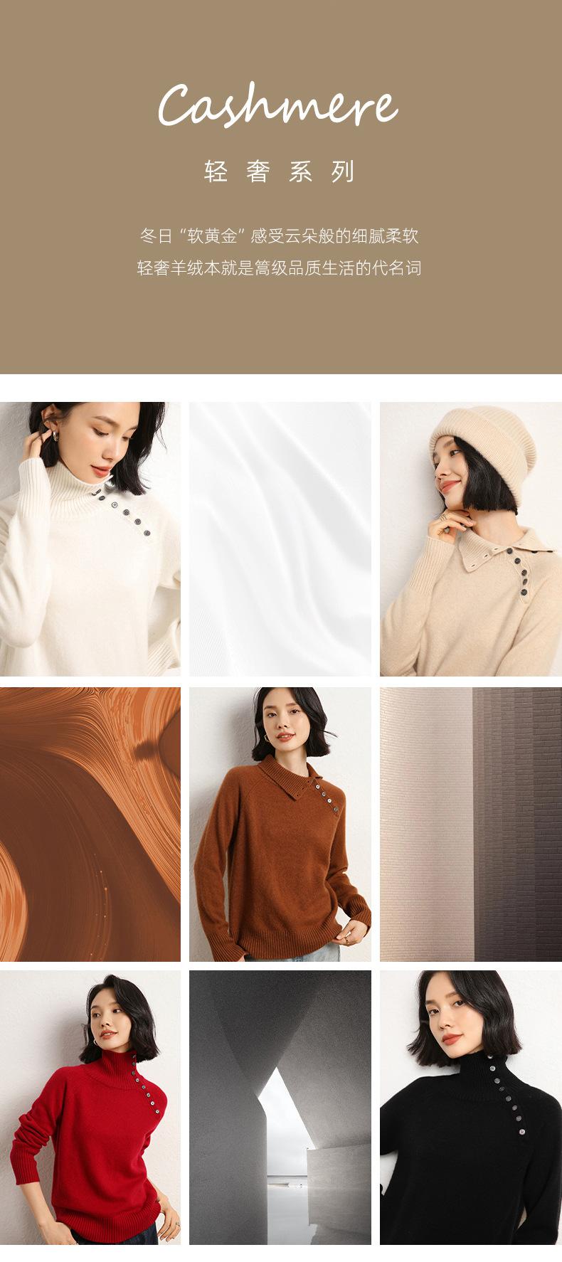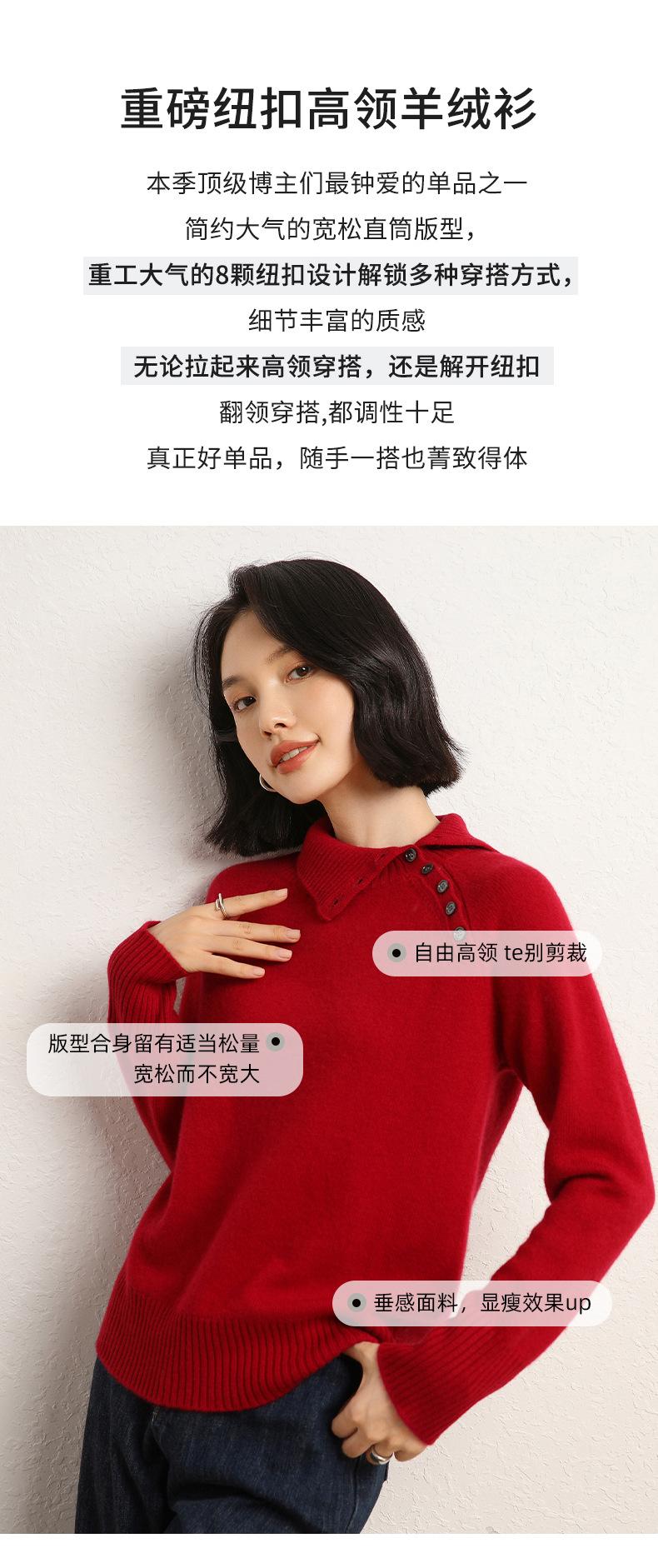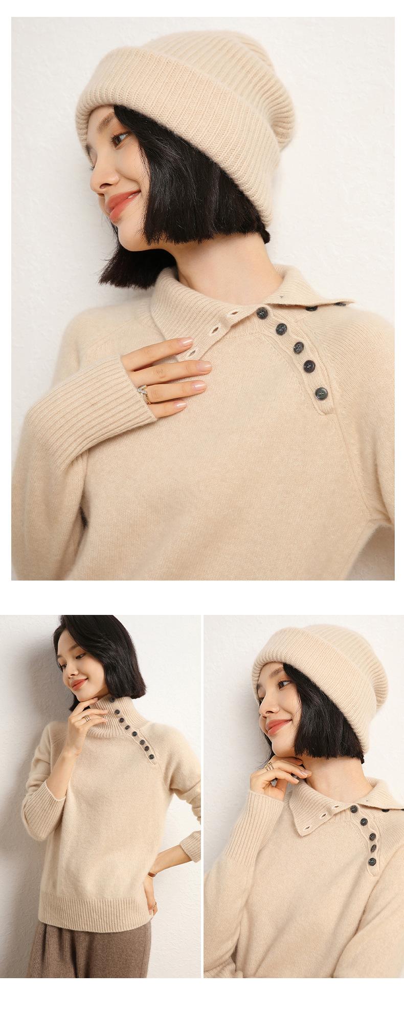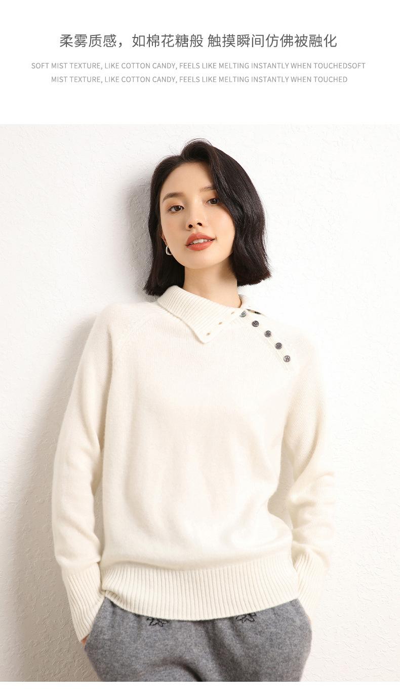 2025 Otoño/Invierno Nueva Moda Cuello Alto Suéter de Color Sólido para Mujer Ocho Botones Adelgazante para Ir al Trabajo Tejido de Cachemira Camisa Básica
