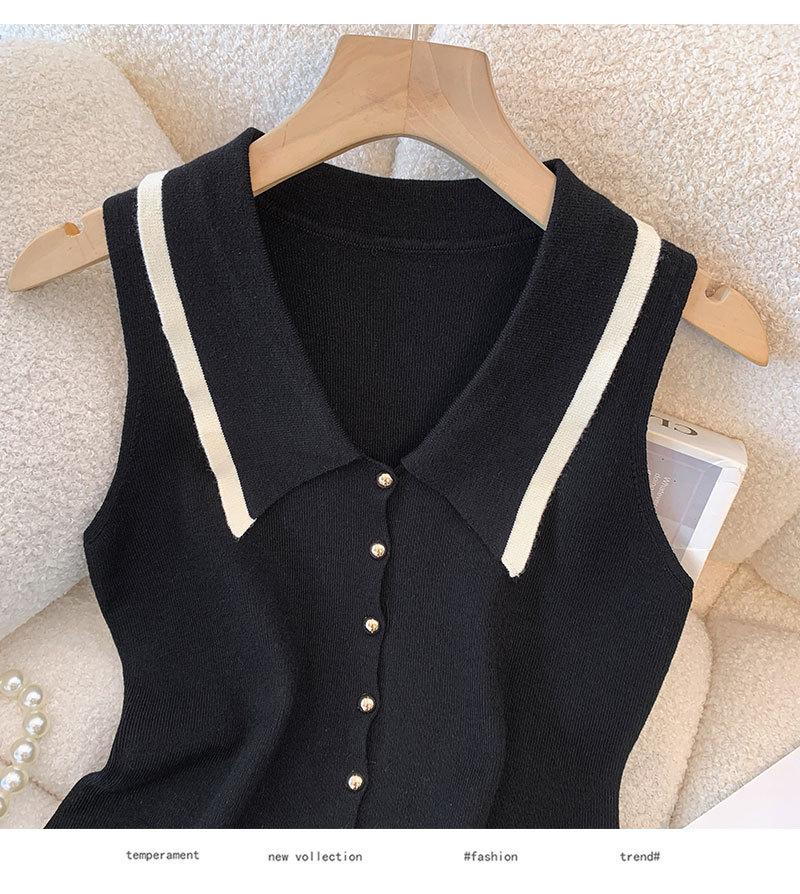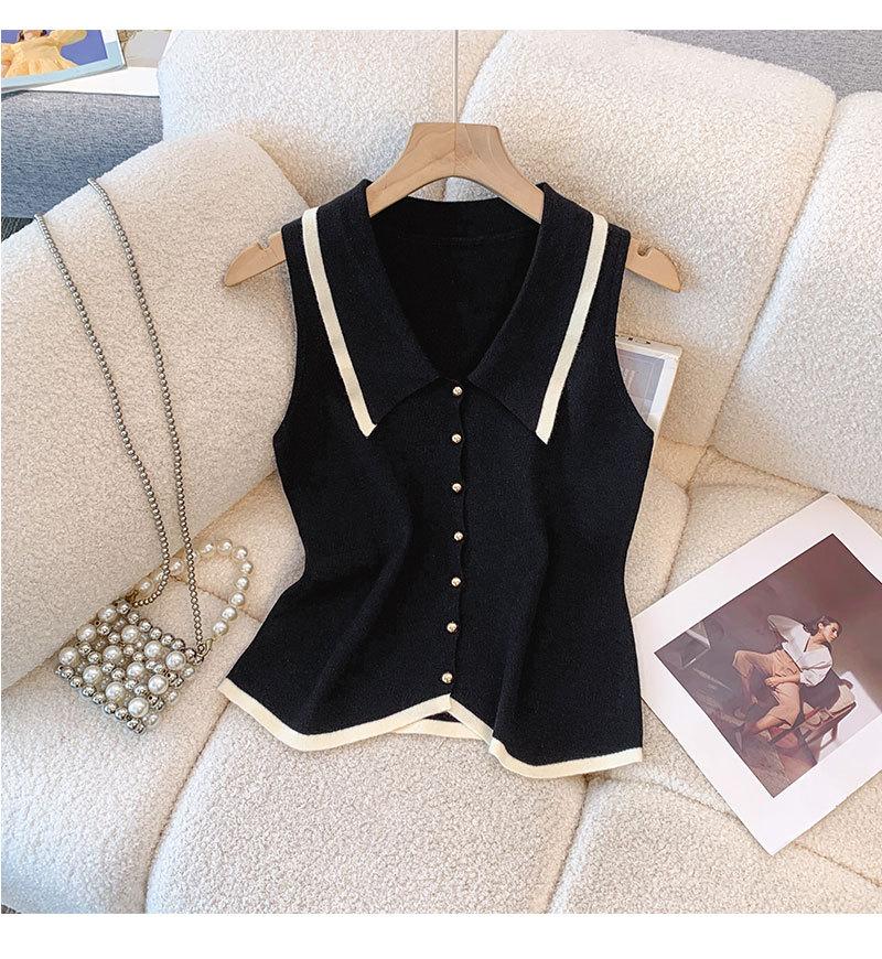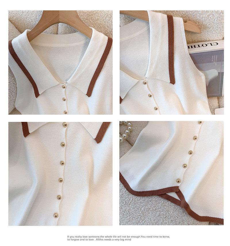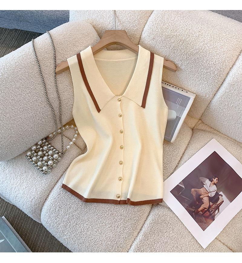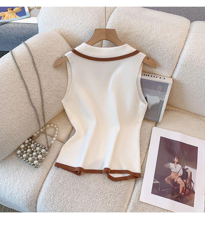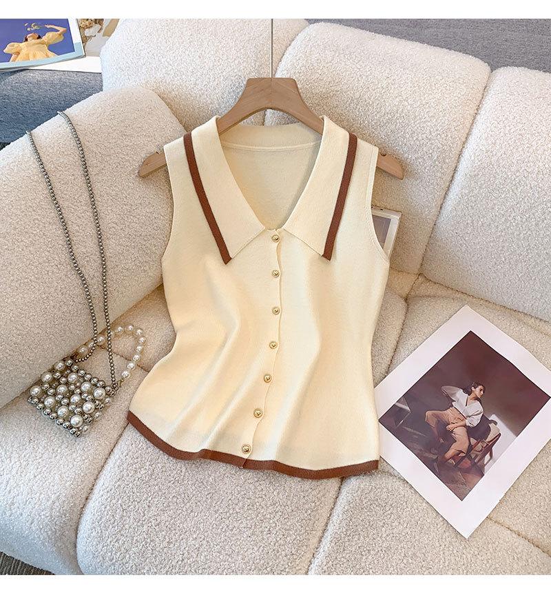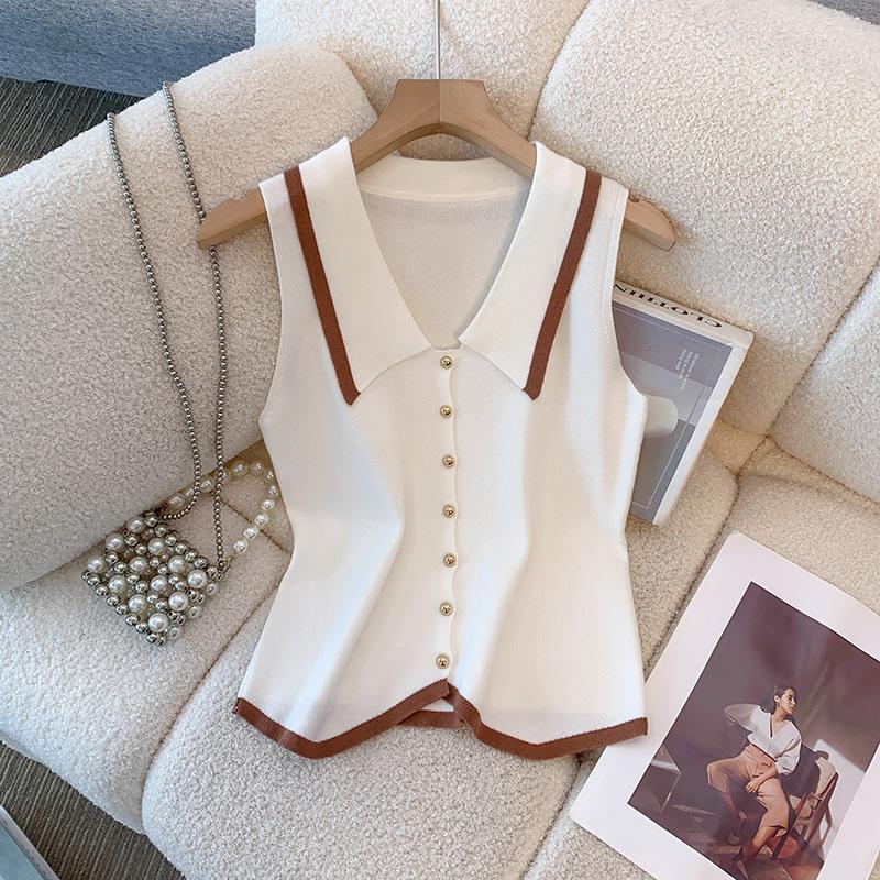 Nuevo Chaleco de Punto sin Mangas con Solapa Estilo Francés para Mujer, Diseño de Verano, Top Polo Corto Ajustado, Moderno