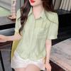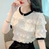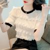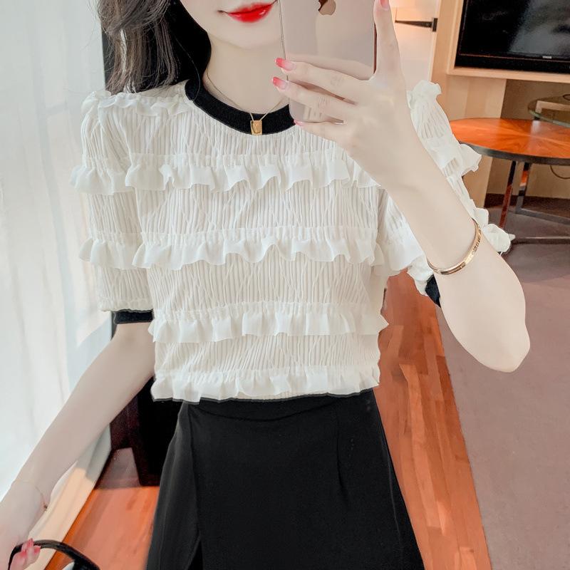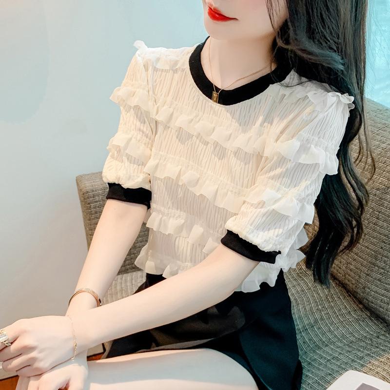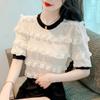 Blusas de estilo occidental para mujer, Camisas de gasa de verano que cubren el vientre, Camisetas de encaje dulces de manga corta para mujer