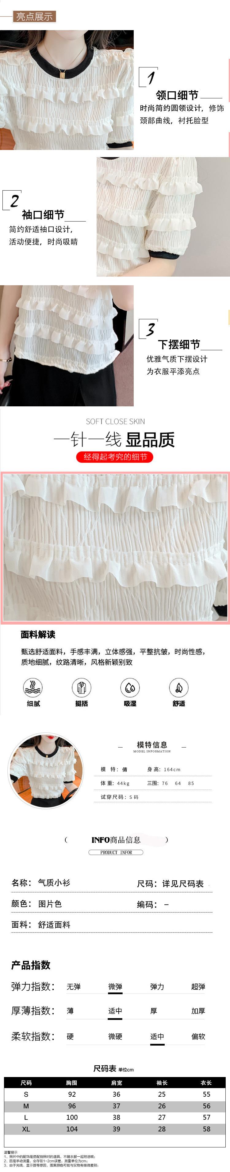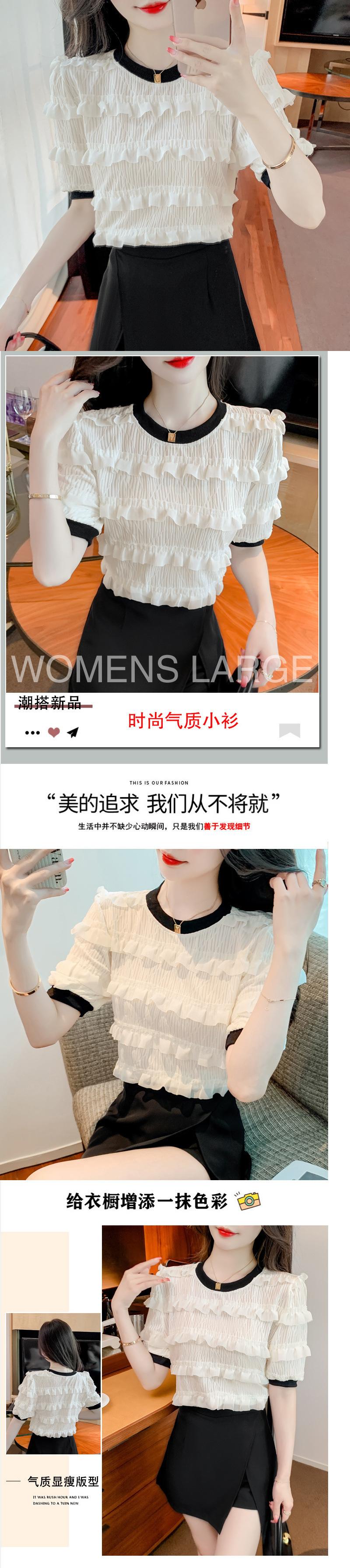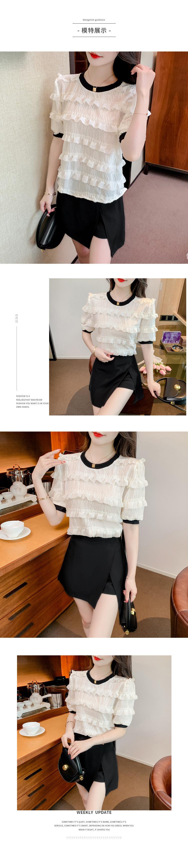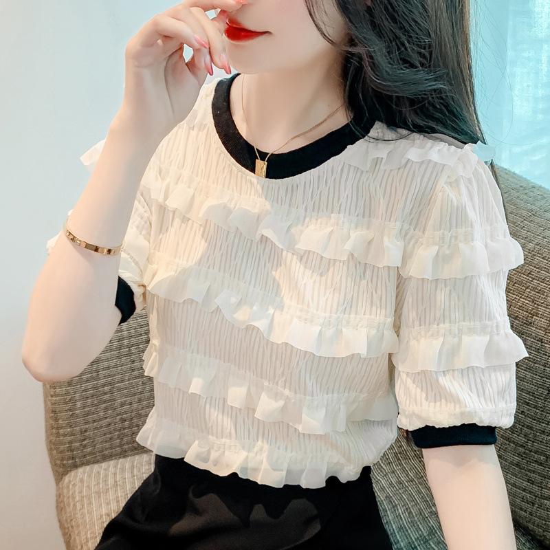 Top de Moda para Mujer Verano Chifón Cubre Vientre Blusa de Chifón Encaje Dulce Manga Corta Camiseta de Mujer (Ligeramente Transparente)