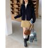 3er Mañana Estilo Otoño Moda Cárdigan Suéter Abrigo de Punto Solapa Doble Cremallera ZY3166
