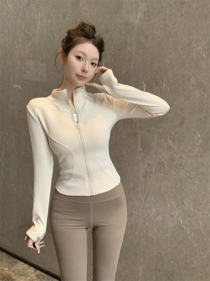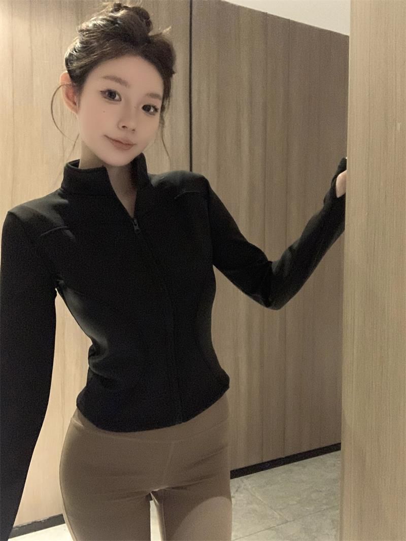 Primavera y Otoño Estilo Deseo Puro Top Cuello Alto Cremallera Deportivo Ajustado Casual Manga Larga Chaqueta Mujer 2025 Nuevo Top Versátil