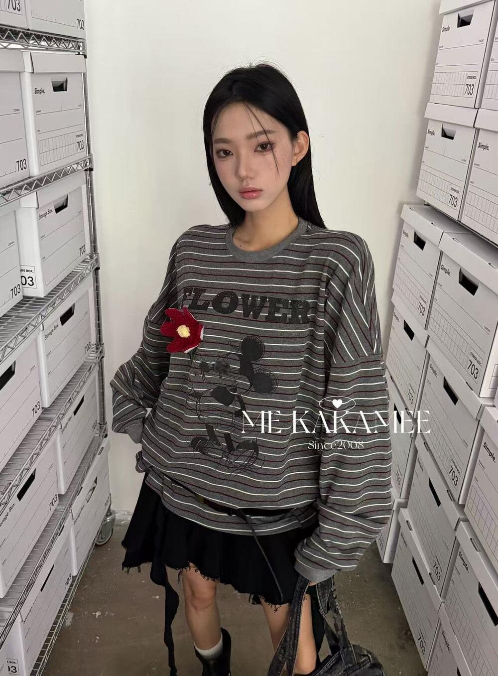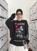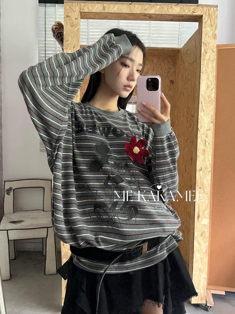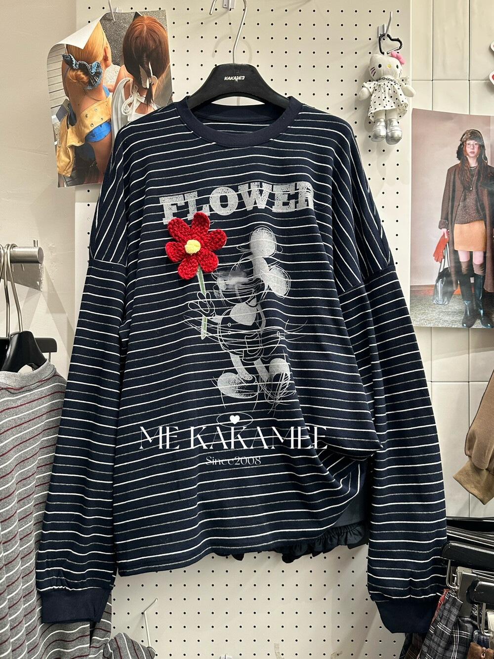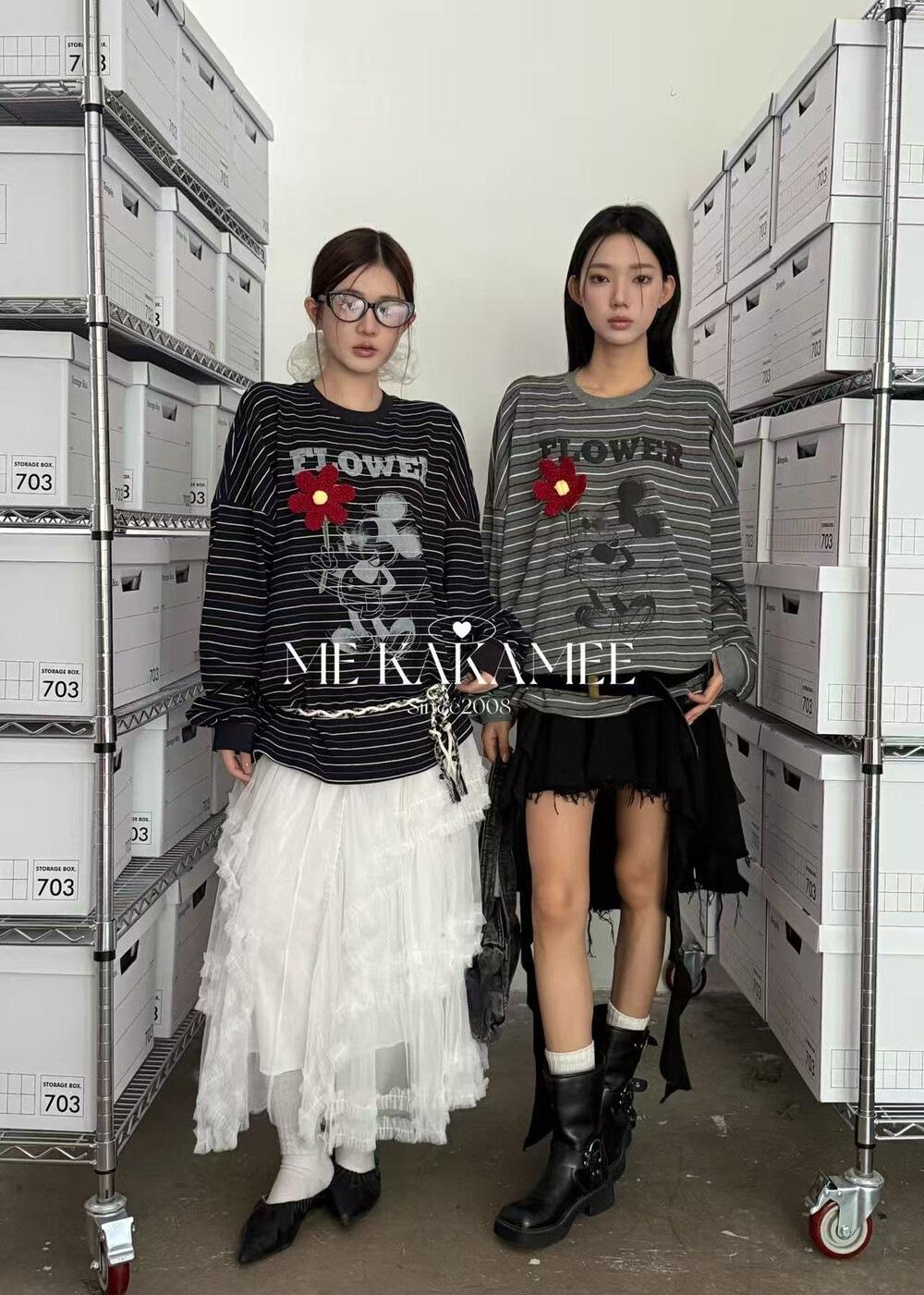 ME KAKAMEE Trece Líneas Otoño Dibujo Animado Americano MQ Casual Holgada Oversized Camiseta de Manga Larga Mujer 8911