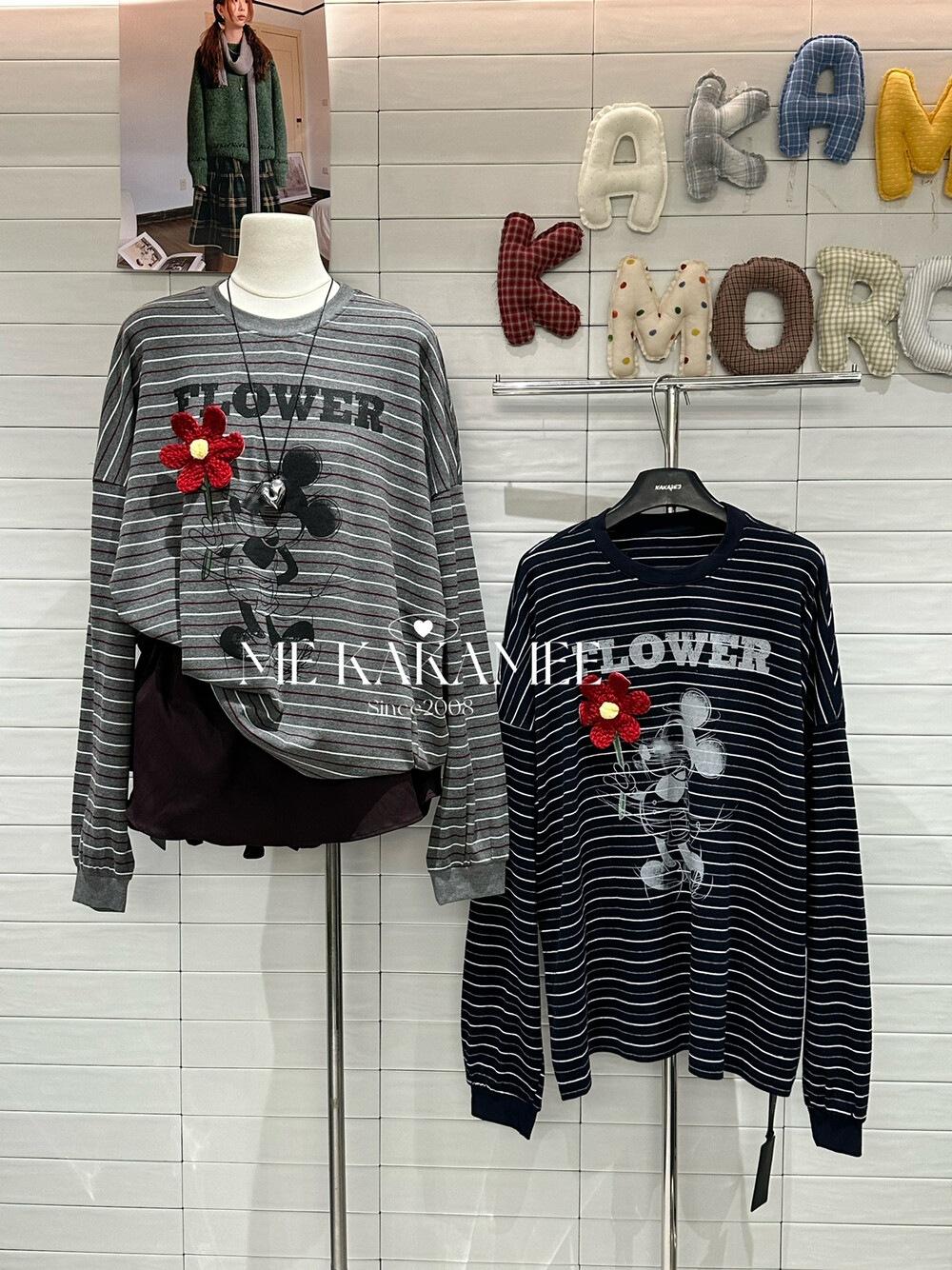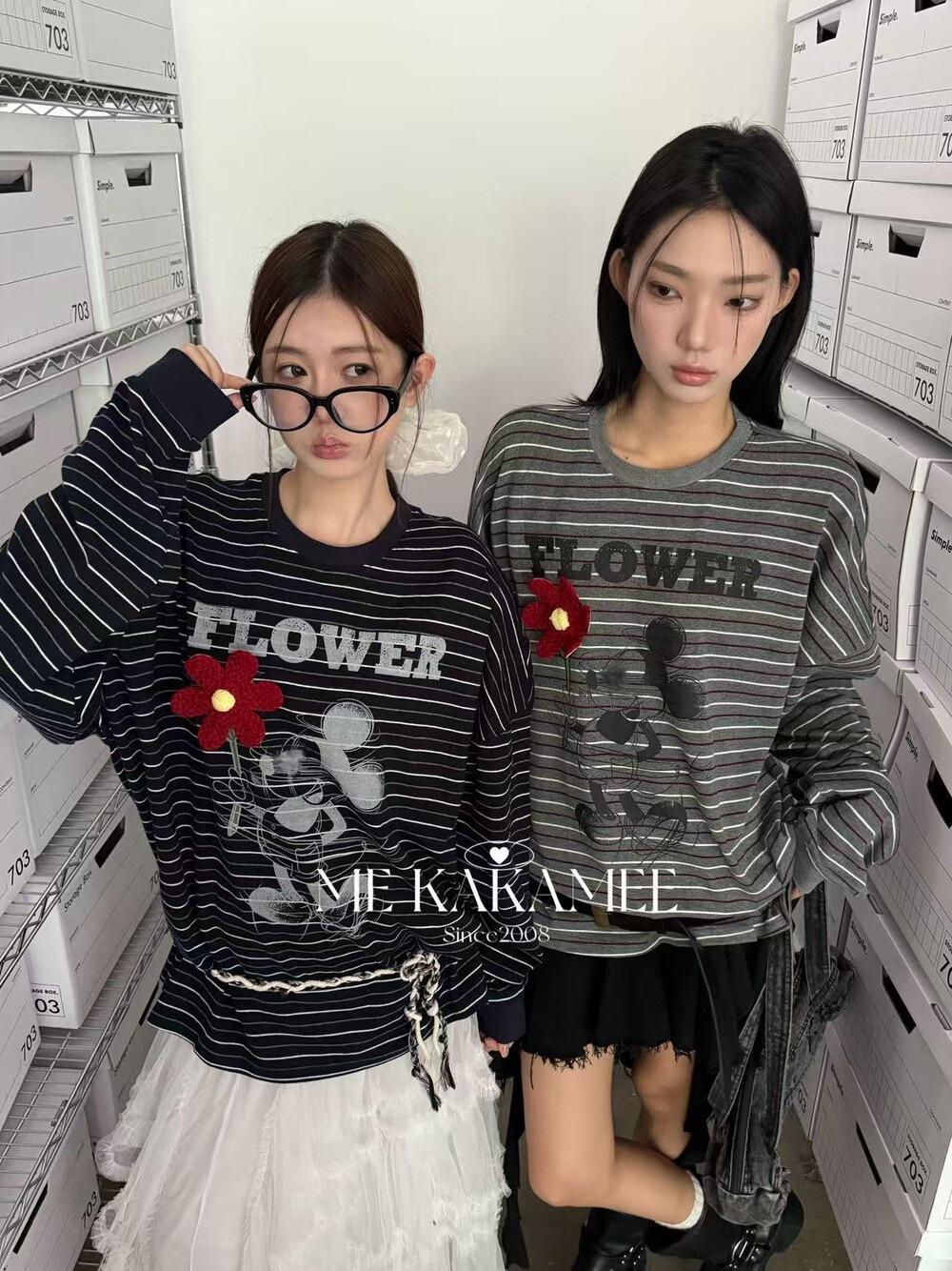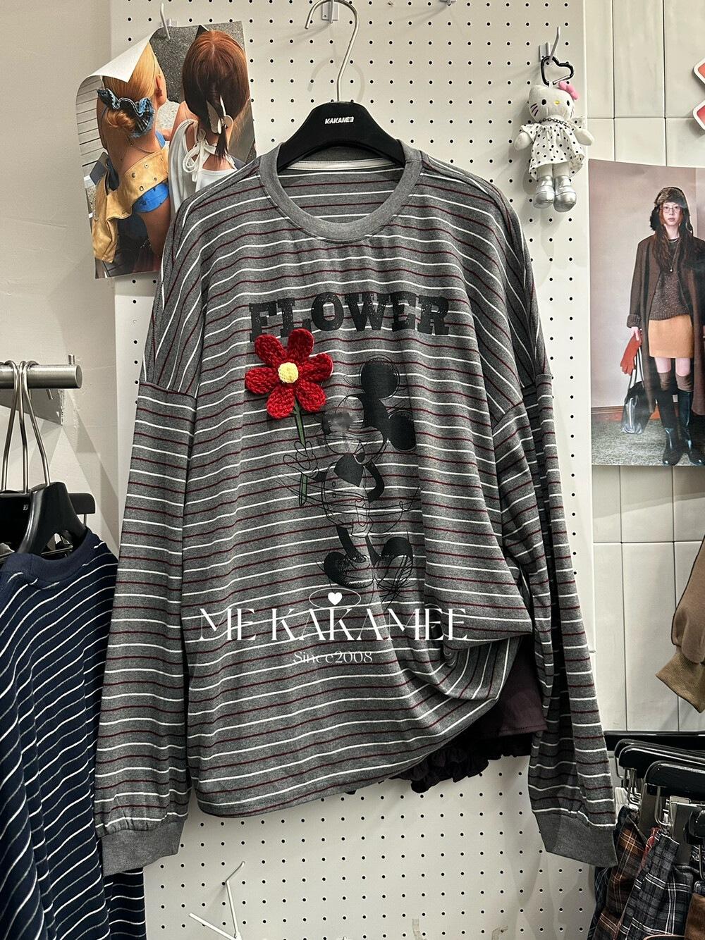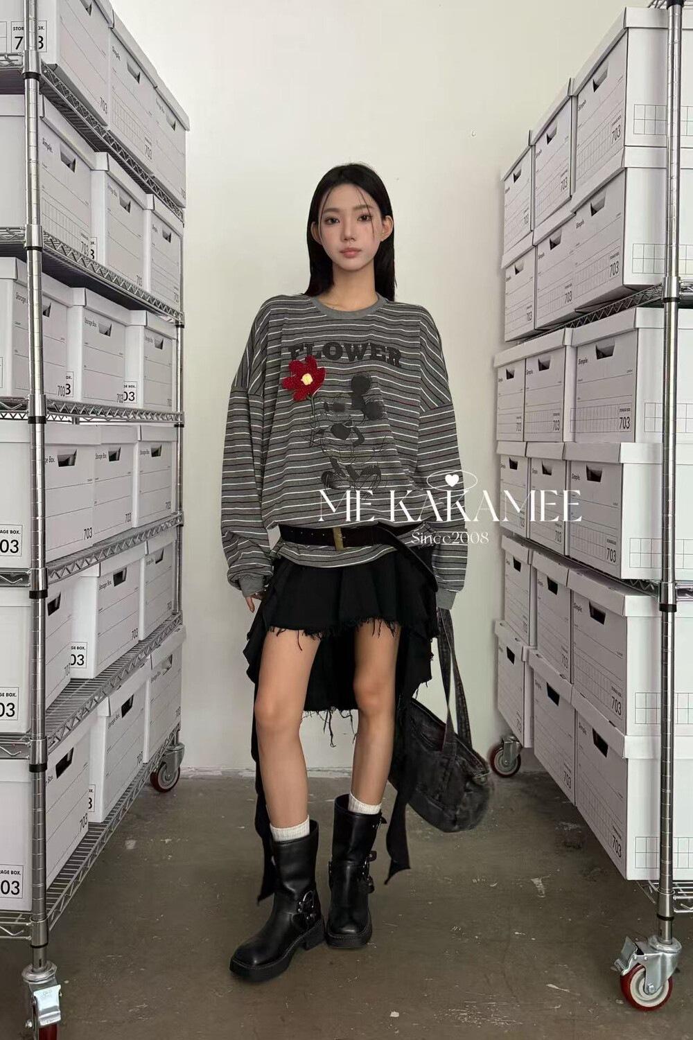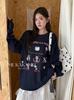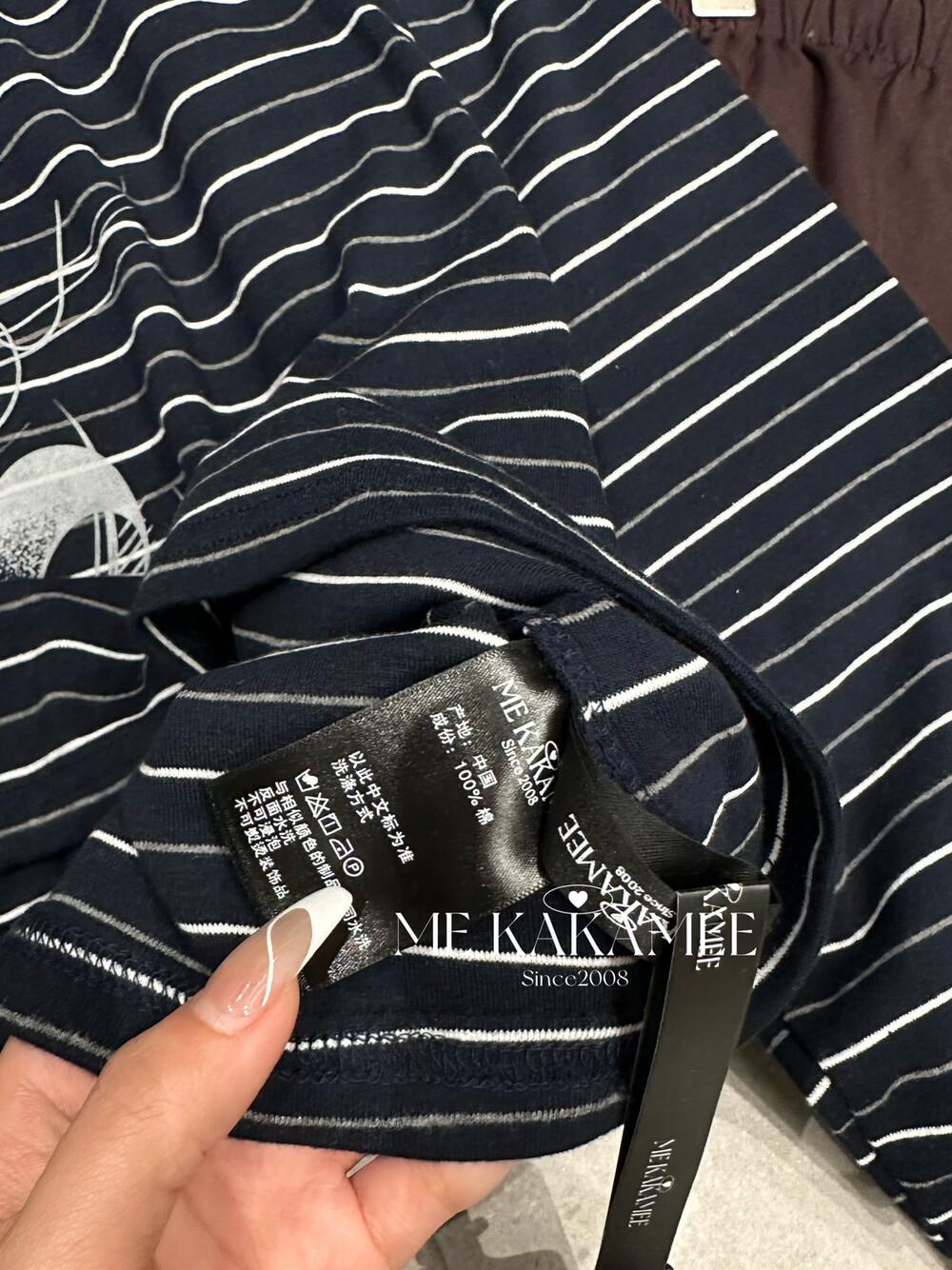 ME KAKAMEE Trece Líneas Otoño Dibujo Animado Americano MQ Casual Holgada Oversized Camiseta de Manga Larga Mujer 8911