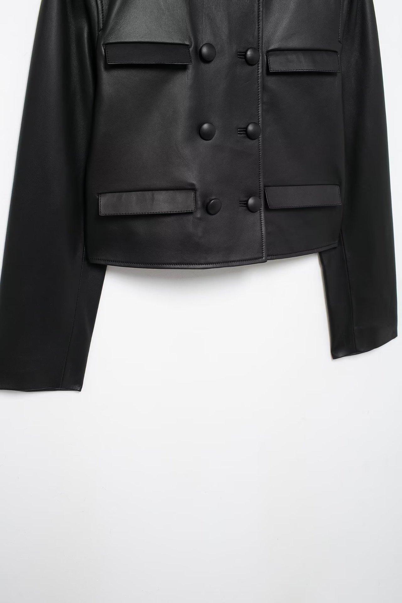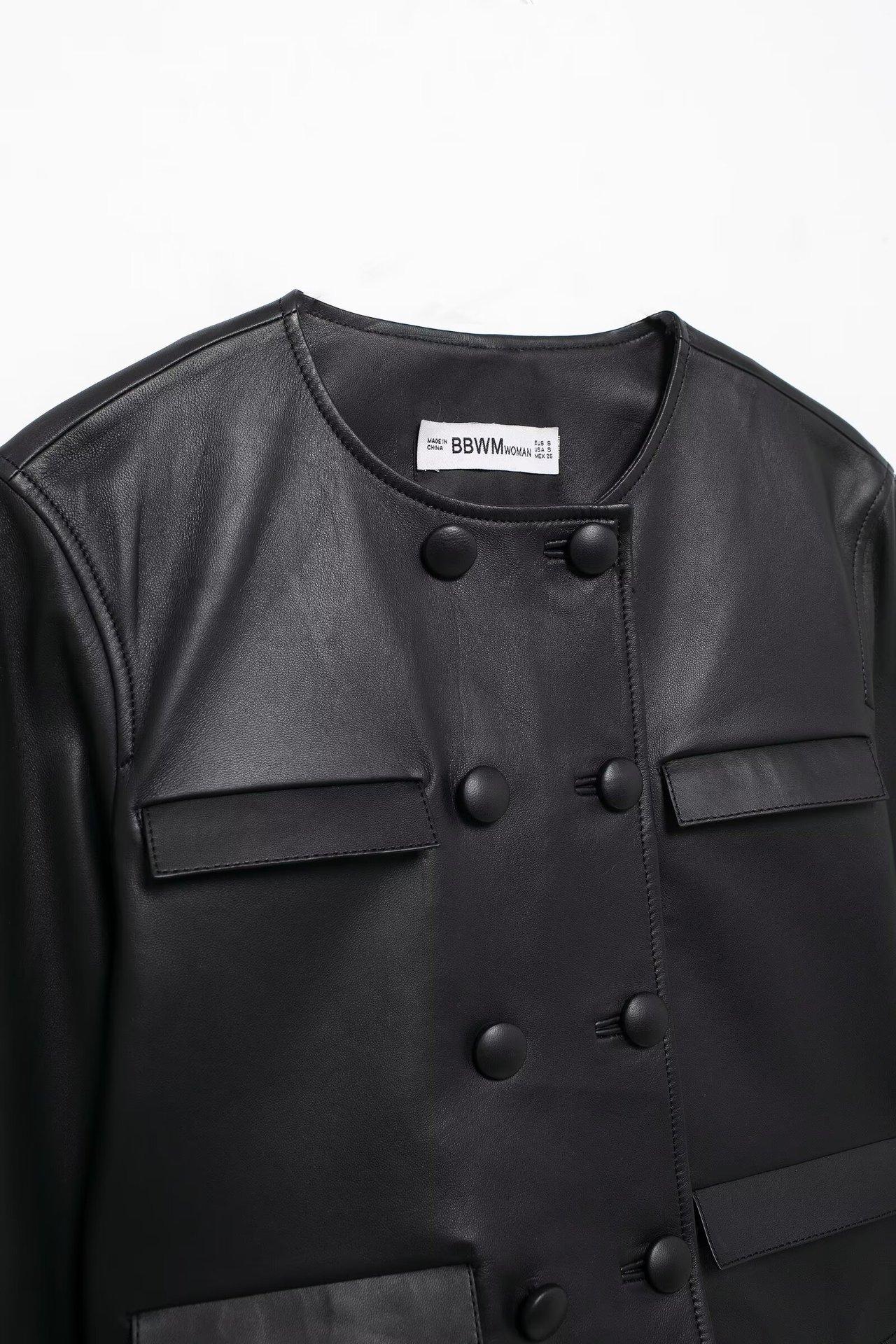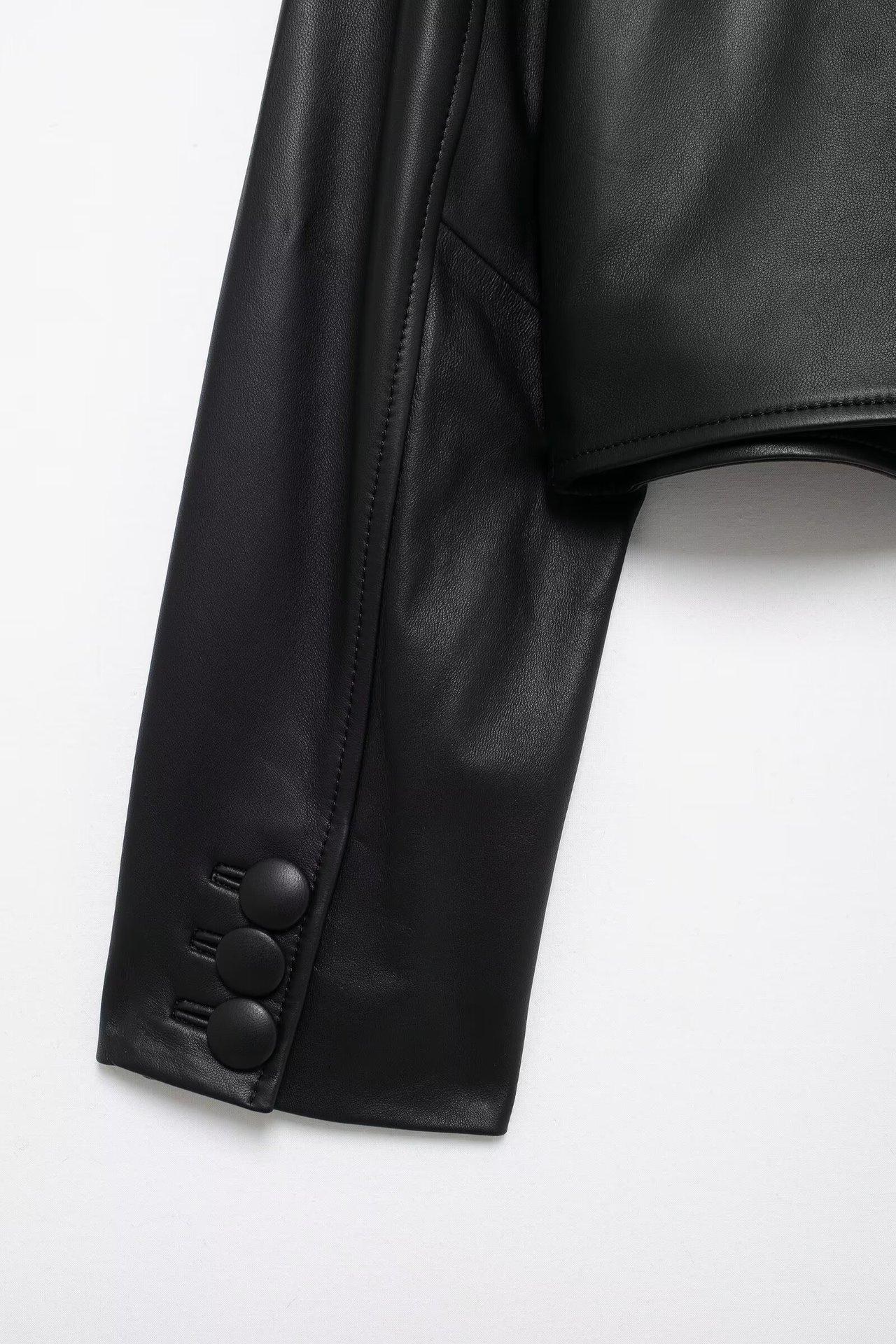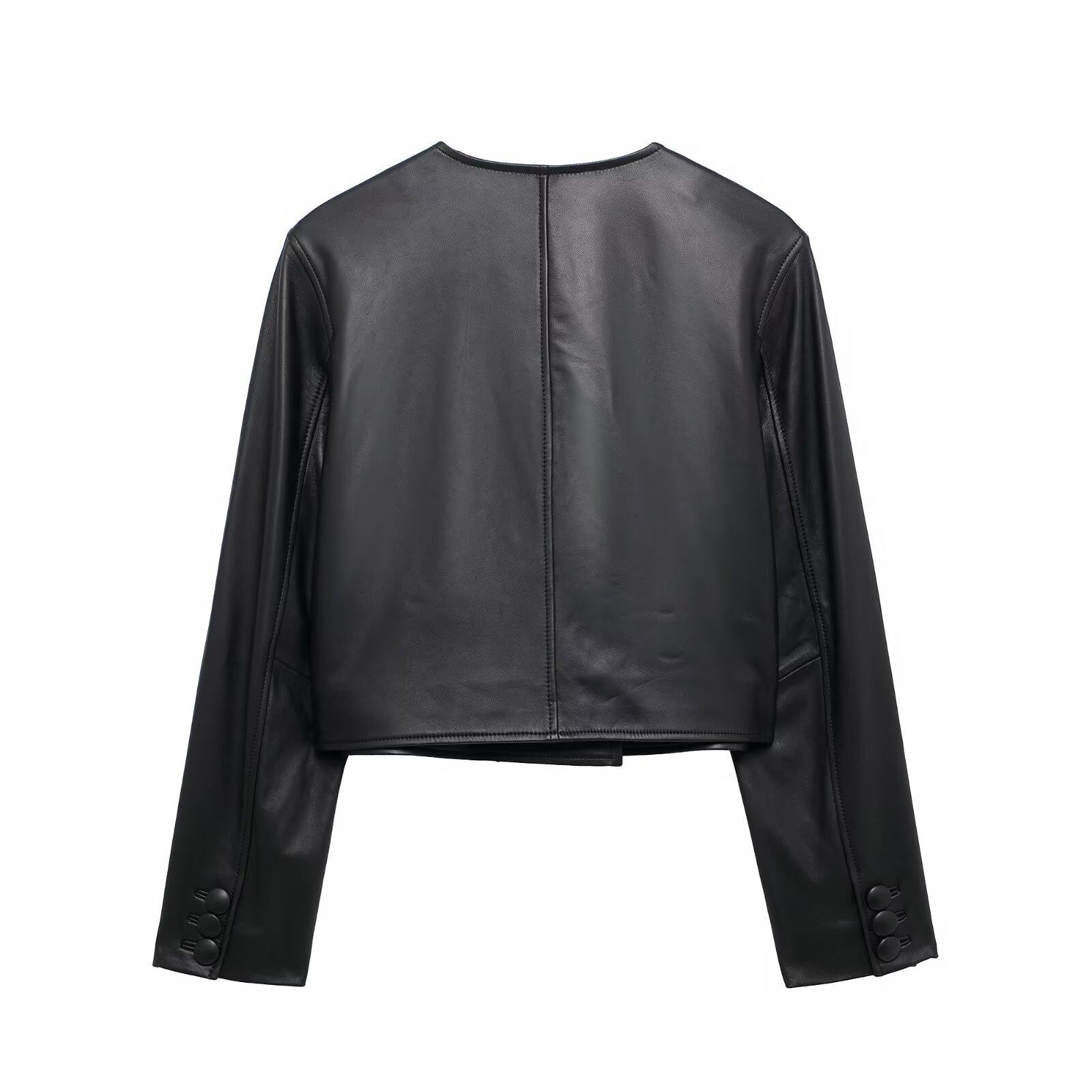 Amazon al por mayor para mujer transfronterizo 2025 Primavera Nuevo Estilo Europeo y Americano Chaqueta Corta de Cuero con Botones Abrigo