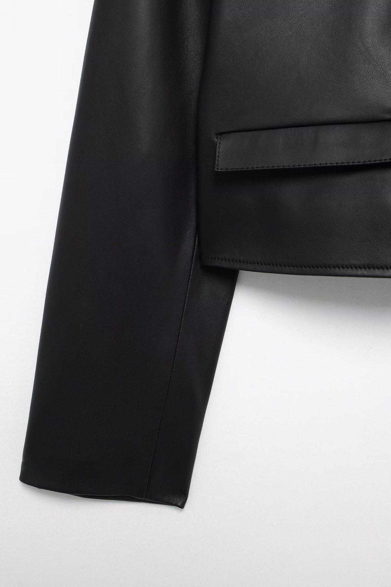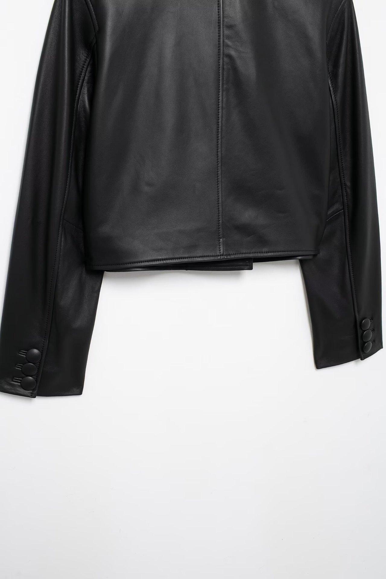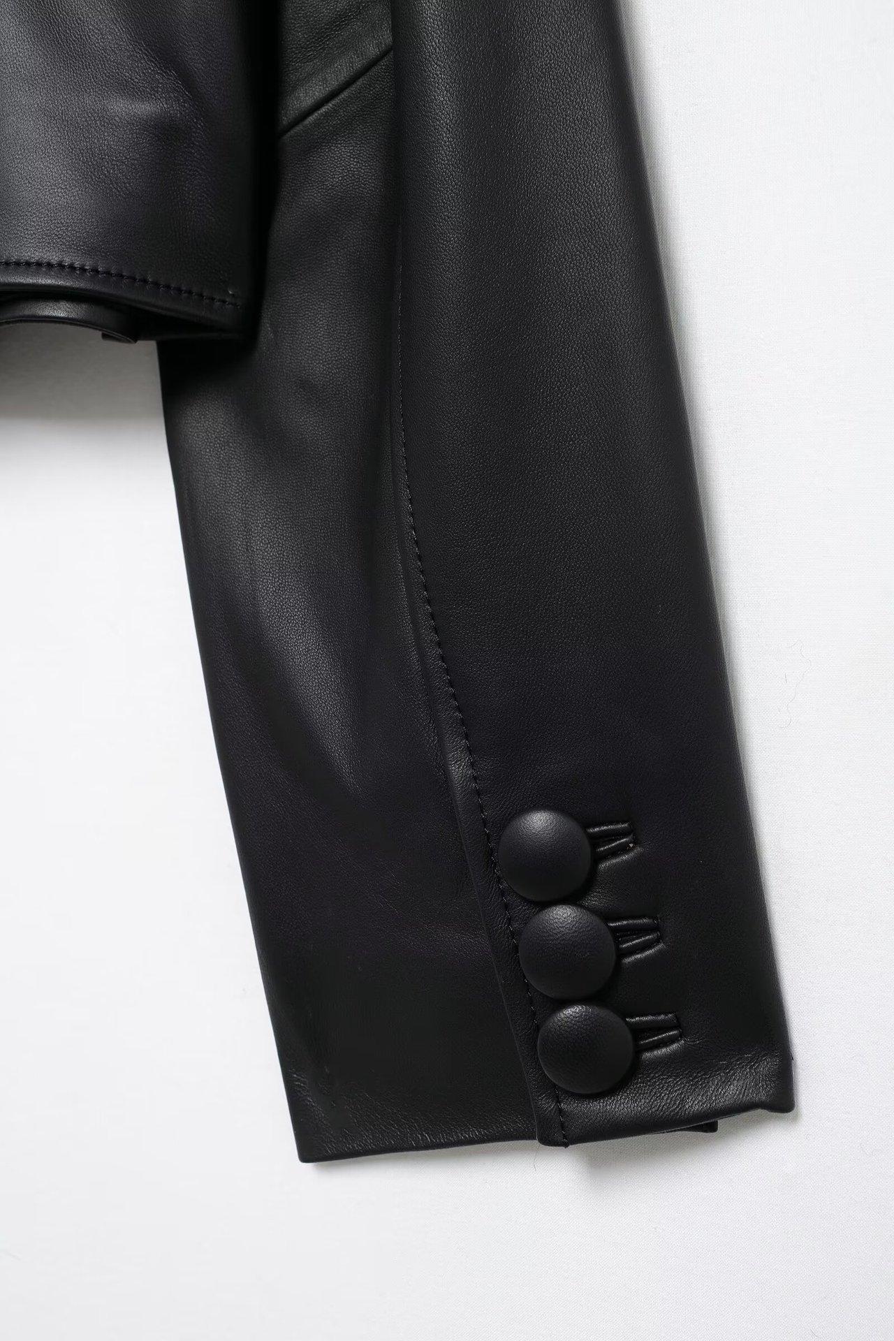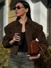 Amazon al por mayor para mujer transfronterizo 2025 Primavera Nuevo Estilo Europeo y Americano Chaqueta Corta de Cuero con Botones Abrigo