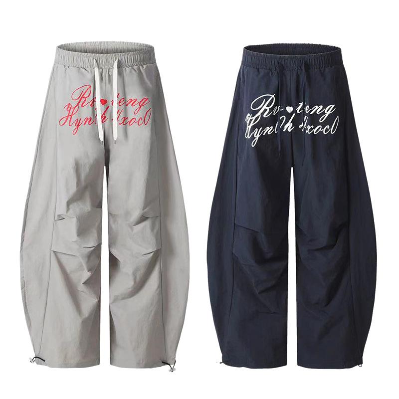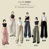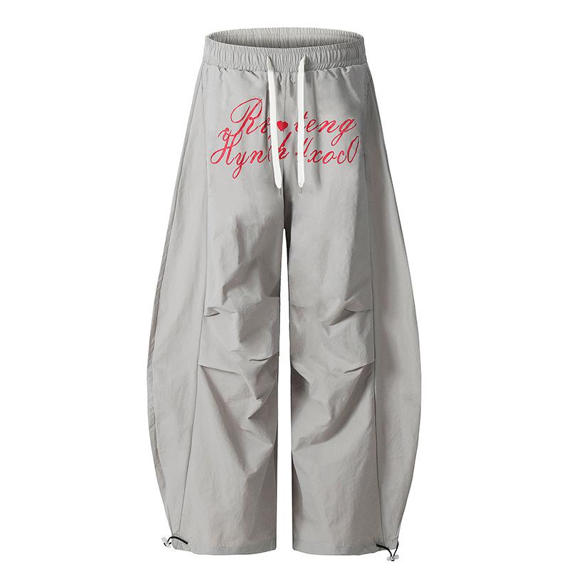 Pantalones Largos Casuales Unisex de Personalidad Holgados Rectos Retro Modernos de Gama Alta para Mujer con Diseño de Cordón con Letras