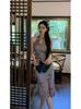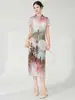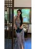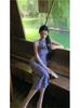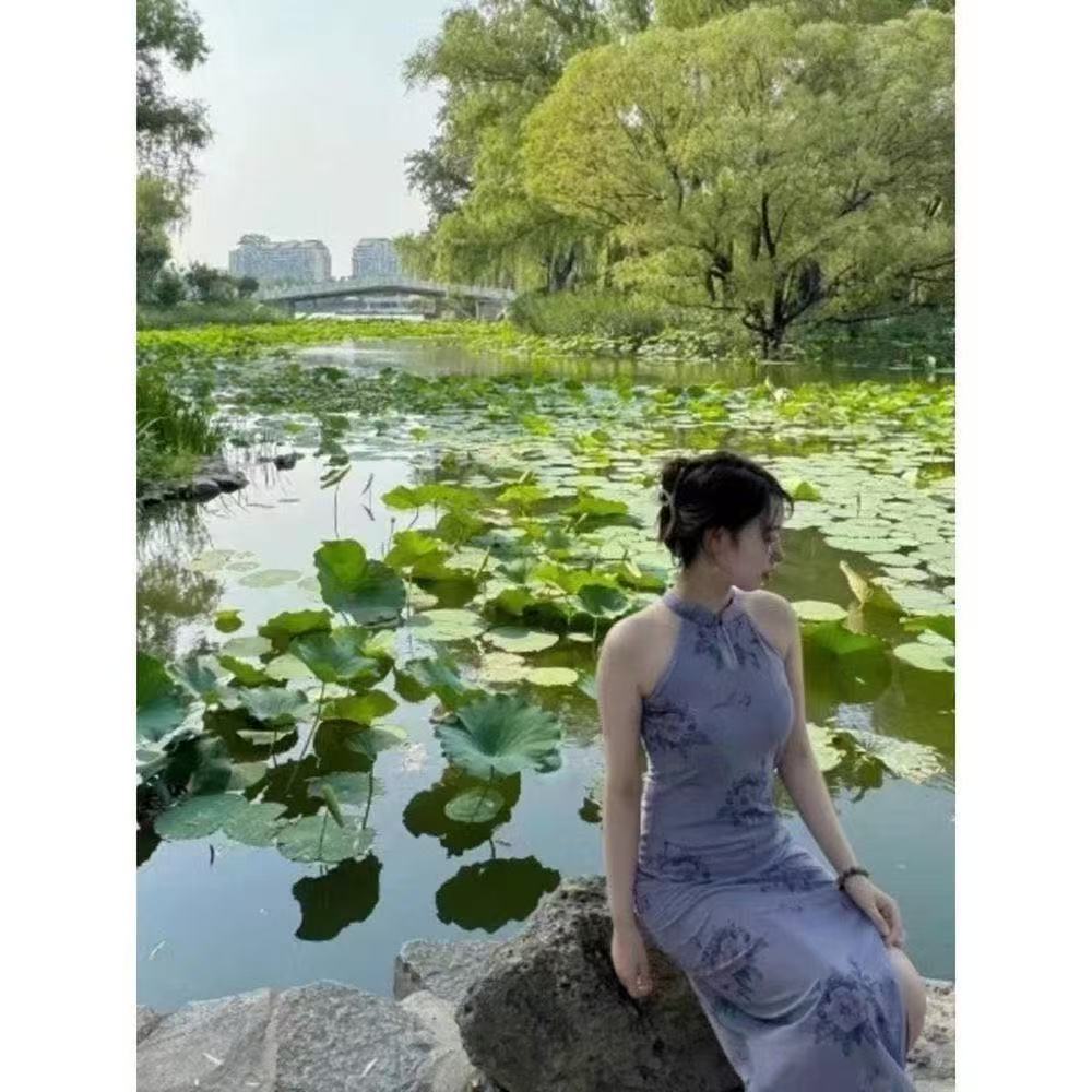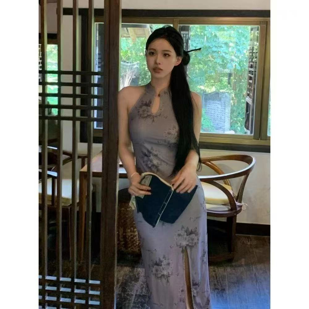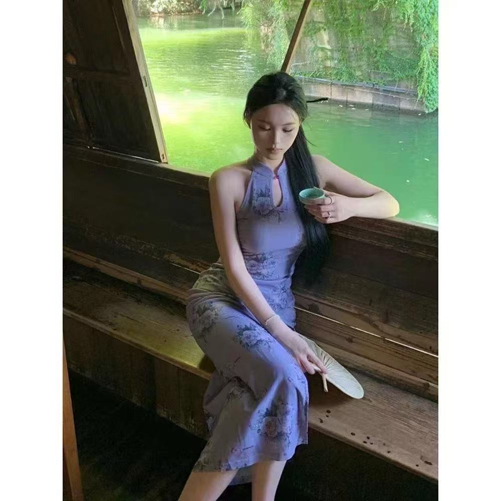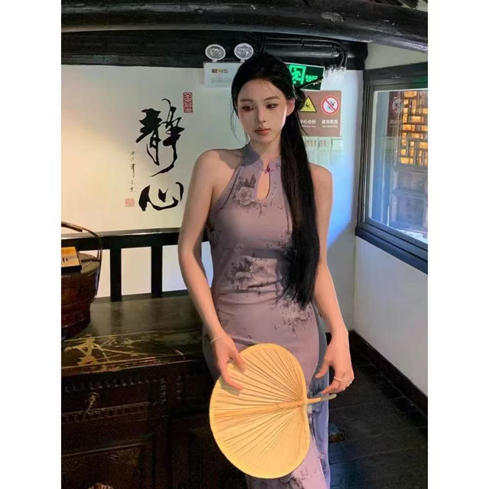 2025 púrpura-rojo calado estilo chino estampado cheongsam mejorado vestido diseño retro sensación suave nicho abertura en capas