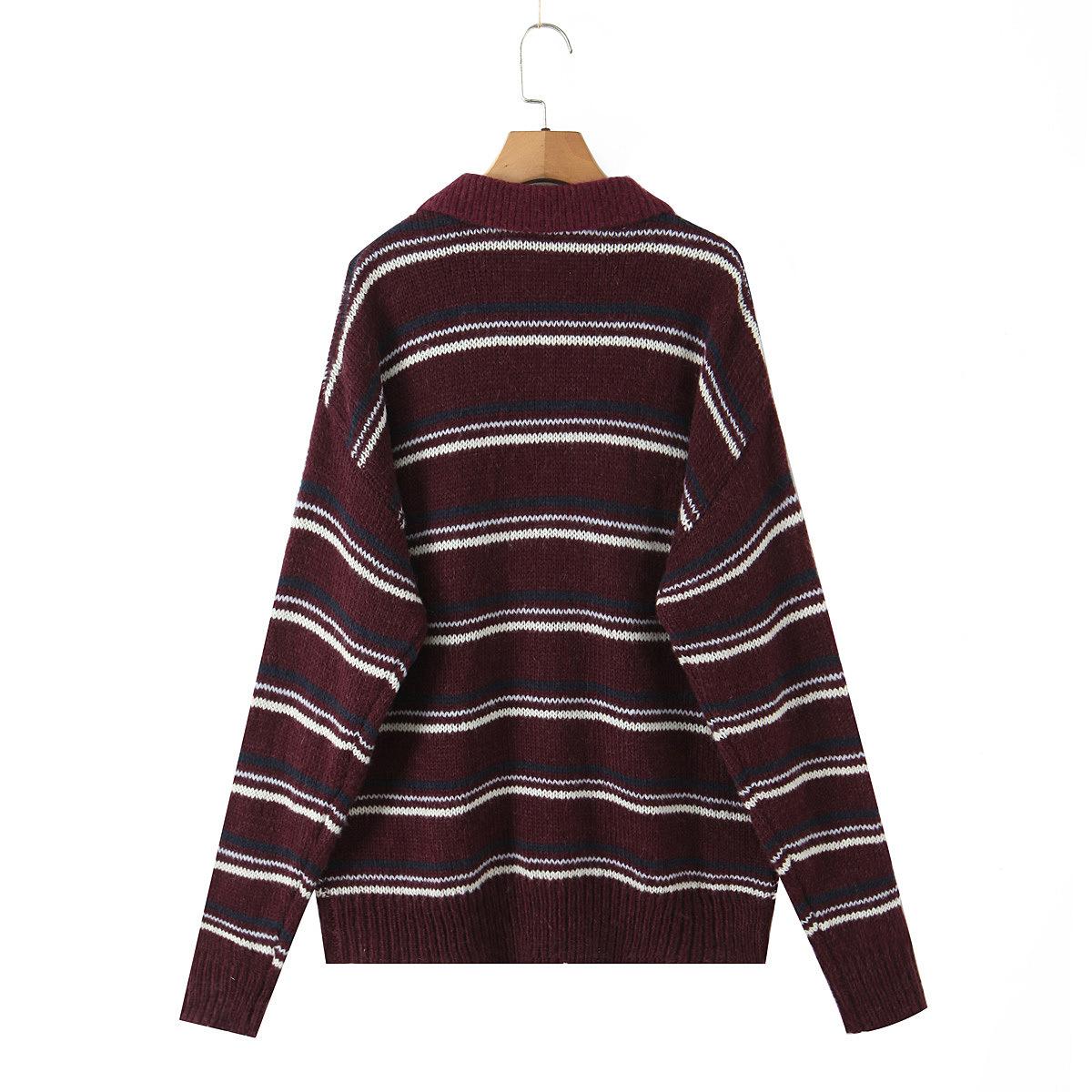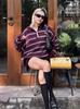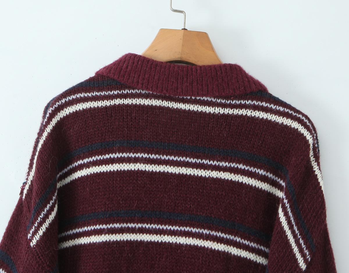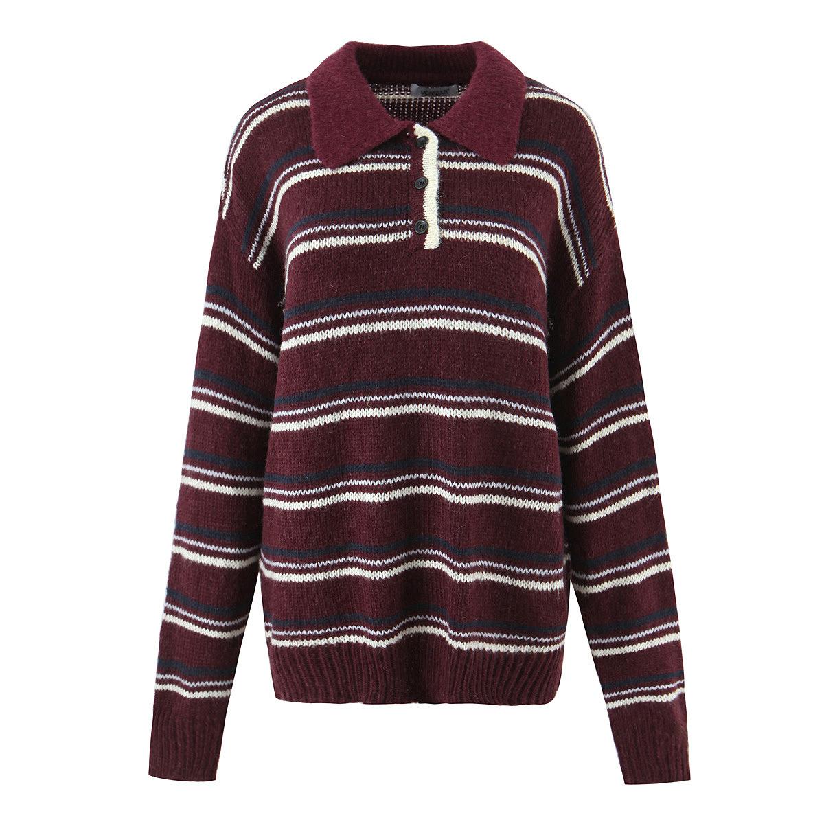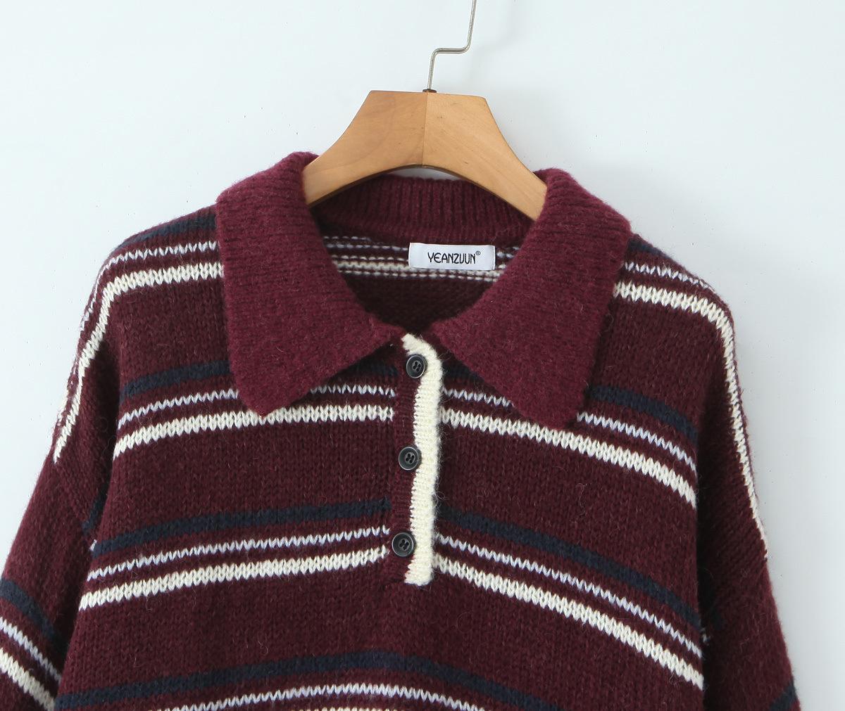 Ropa de Mujer de Comercio Exterior Transfronterizo 2025 Otoño Estilo Europeo y Americano Cuello POLO Manga Larga Bloque de Color Rayado Top de Punto para Mujer D79790