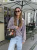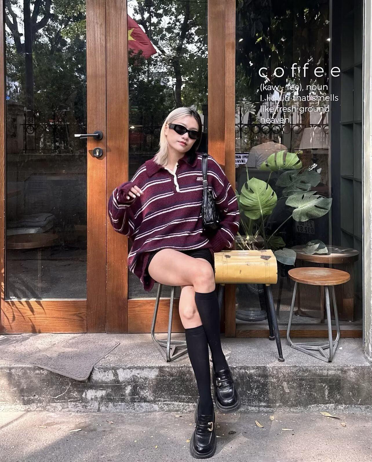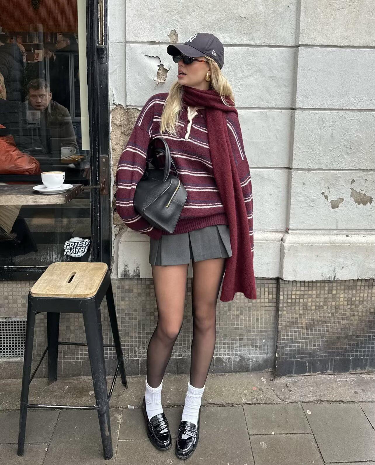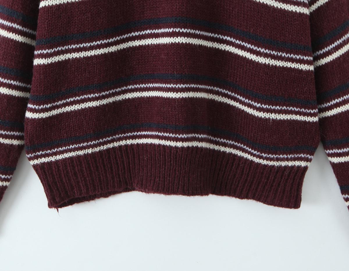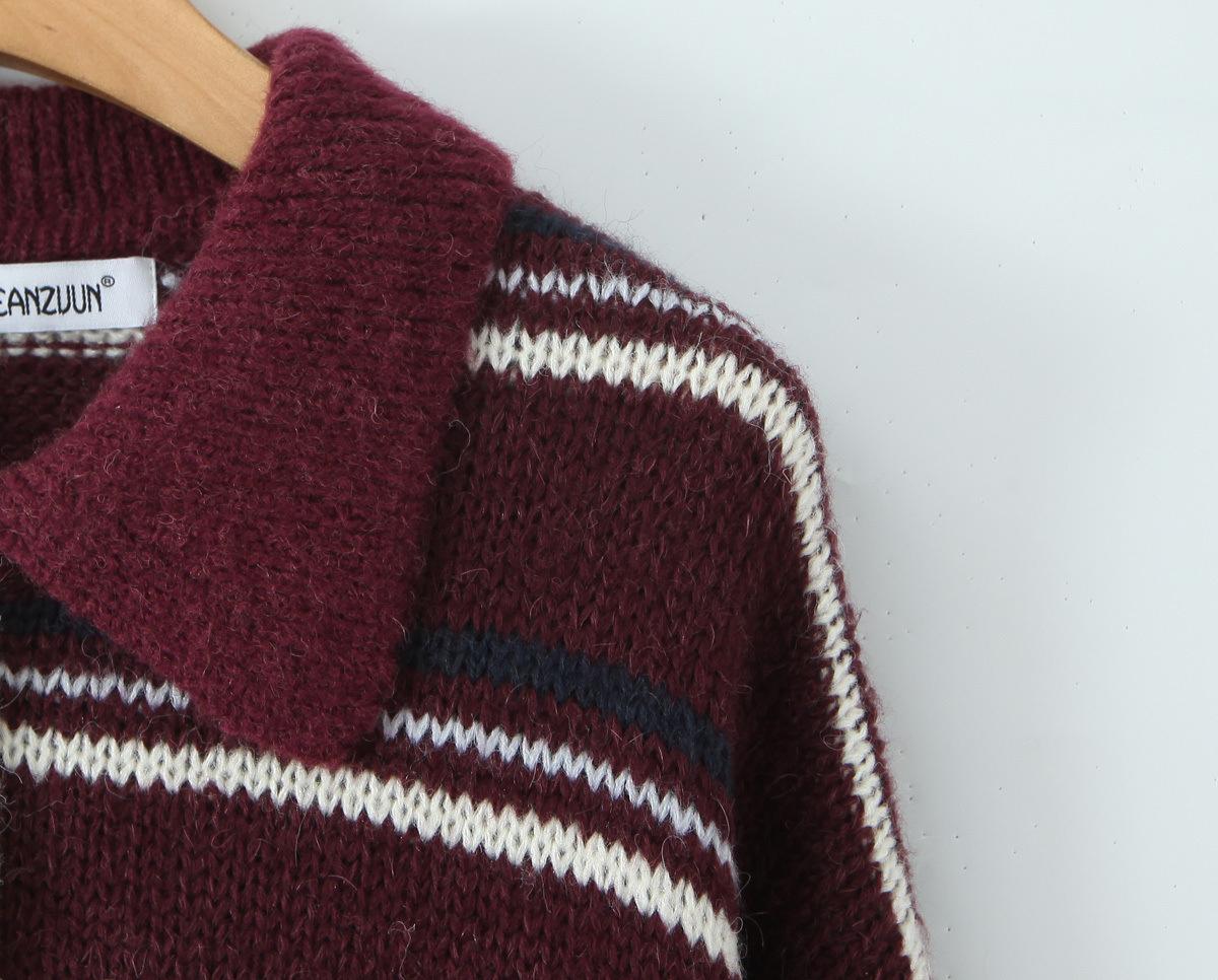 Ropa de Mujer de Comercio Exterior Transfronterizo 2025 Otoño Estilo Europeo y Americano Cuello POLO Manga Larga Bloque de Color Rayado Top de Punto para Mujer D79790