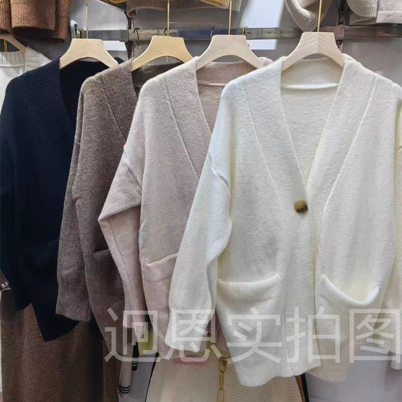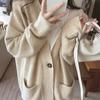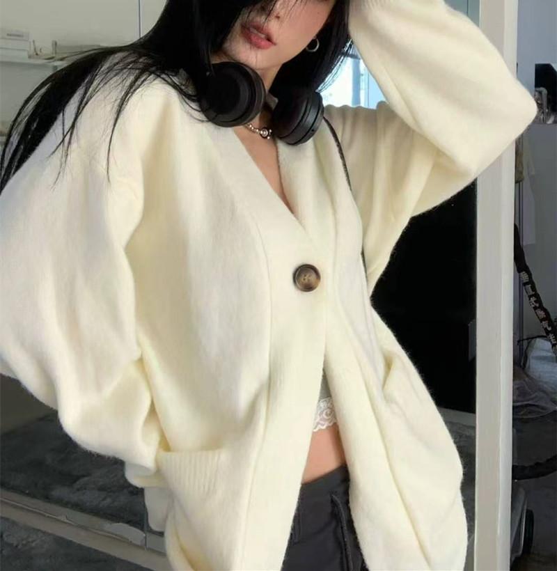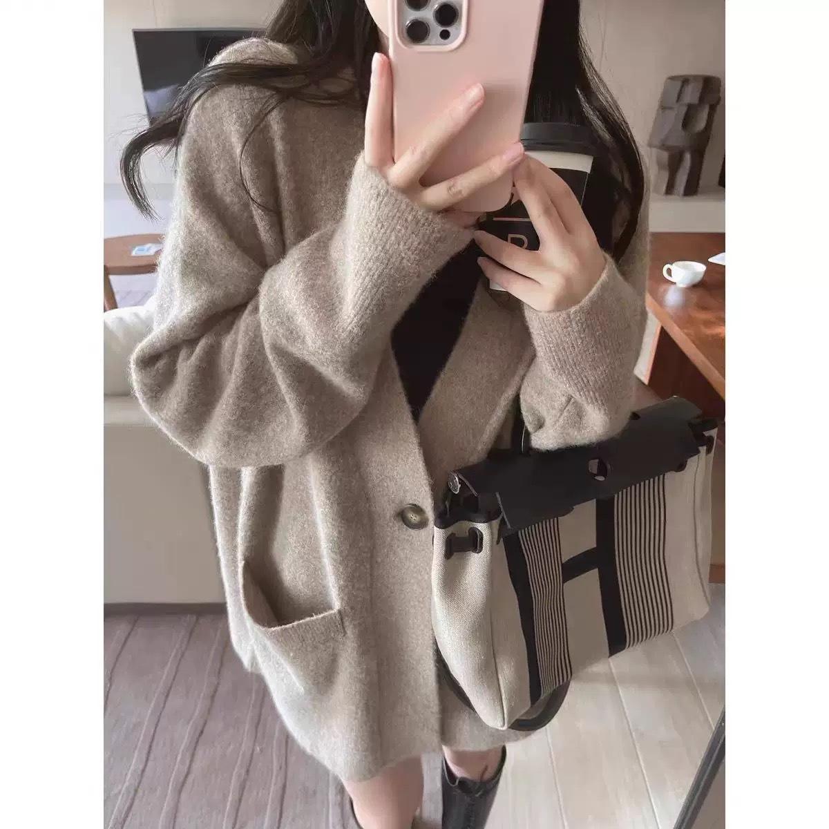 Cárdigan de punto color avena viento suave para mujer 2025 principios de primavera nuevo temperamento holgado largo medio