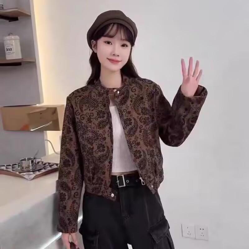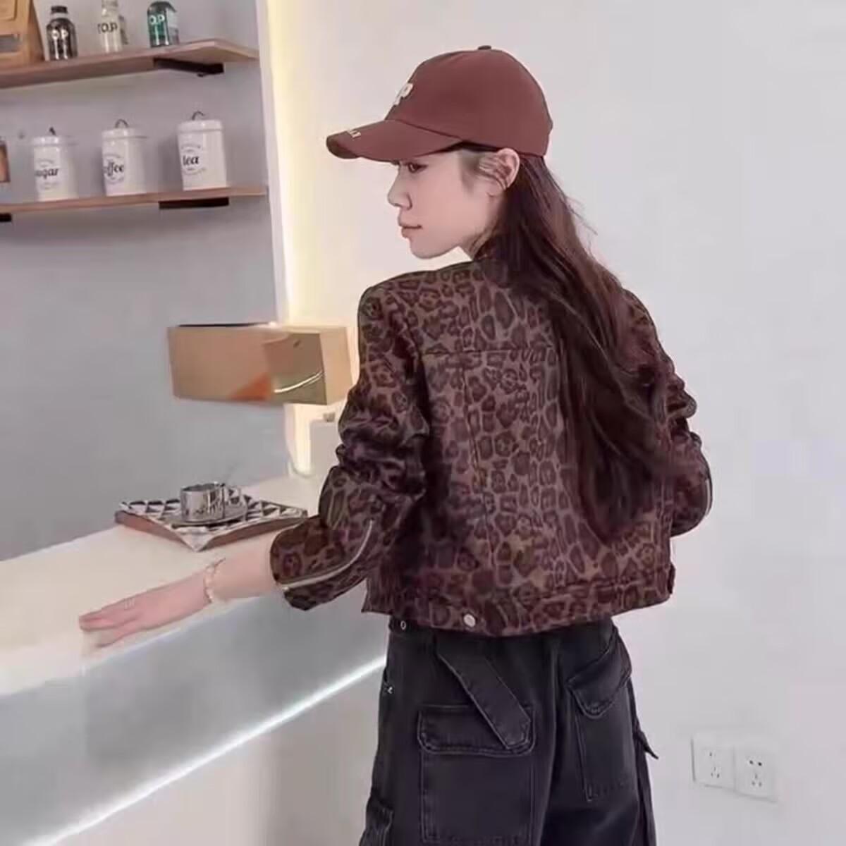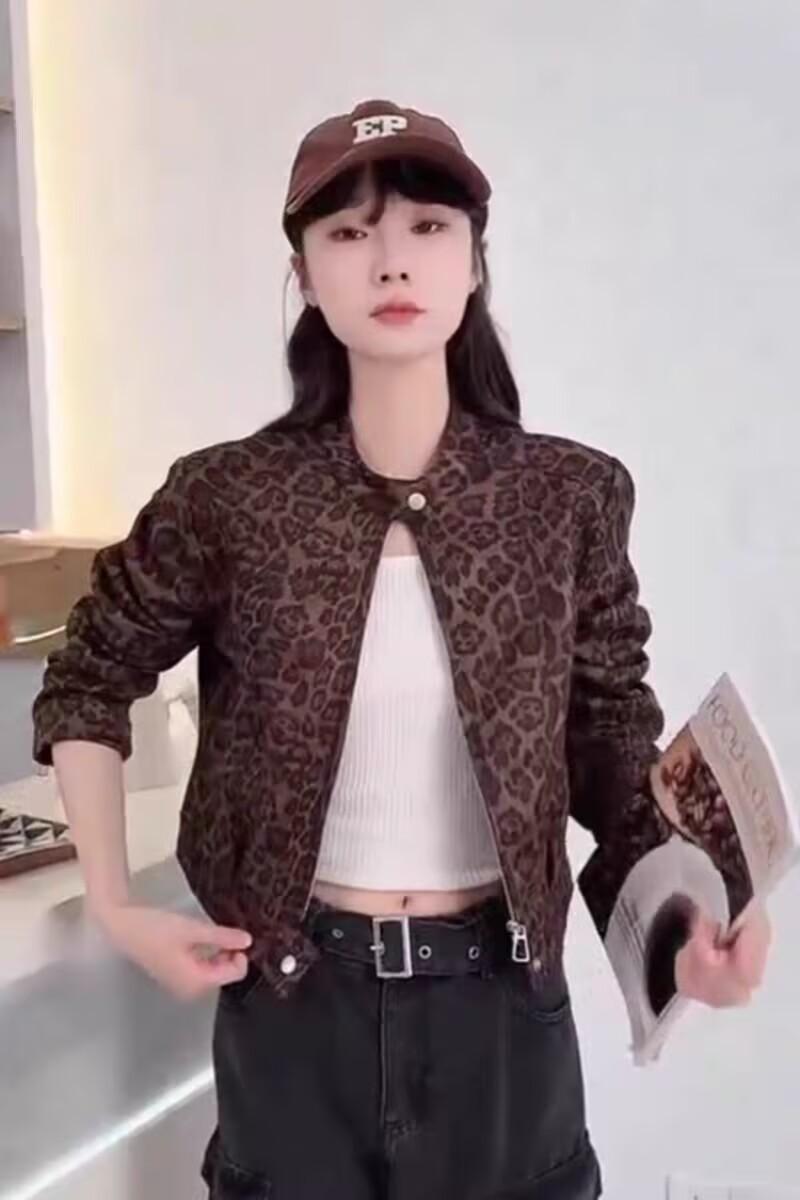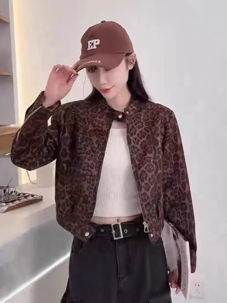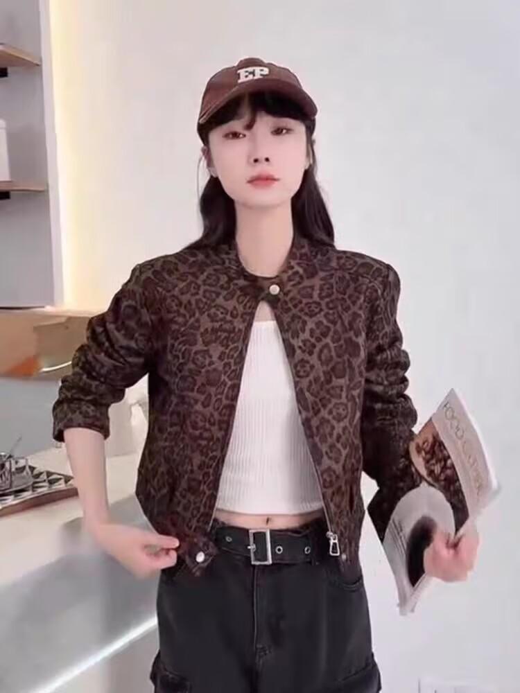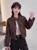 Popular Chaqueta Corta con Cremallera de Cuello Alto Retro de Gama Alta con Estampado de Leopardo para Mujer 25 Otoño Nueva Moda Chaqueta Top Talla Pequeña