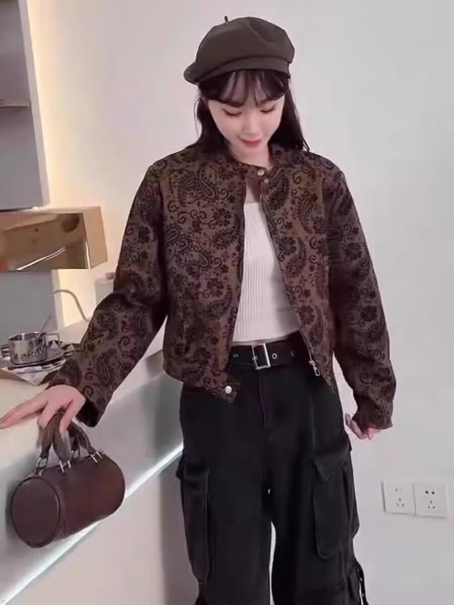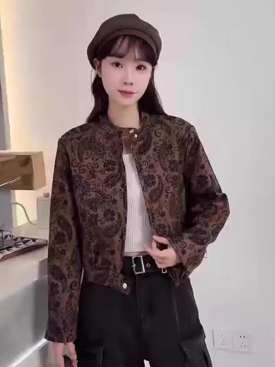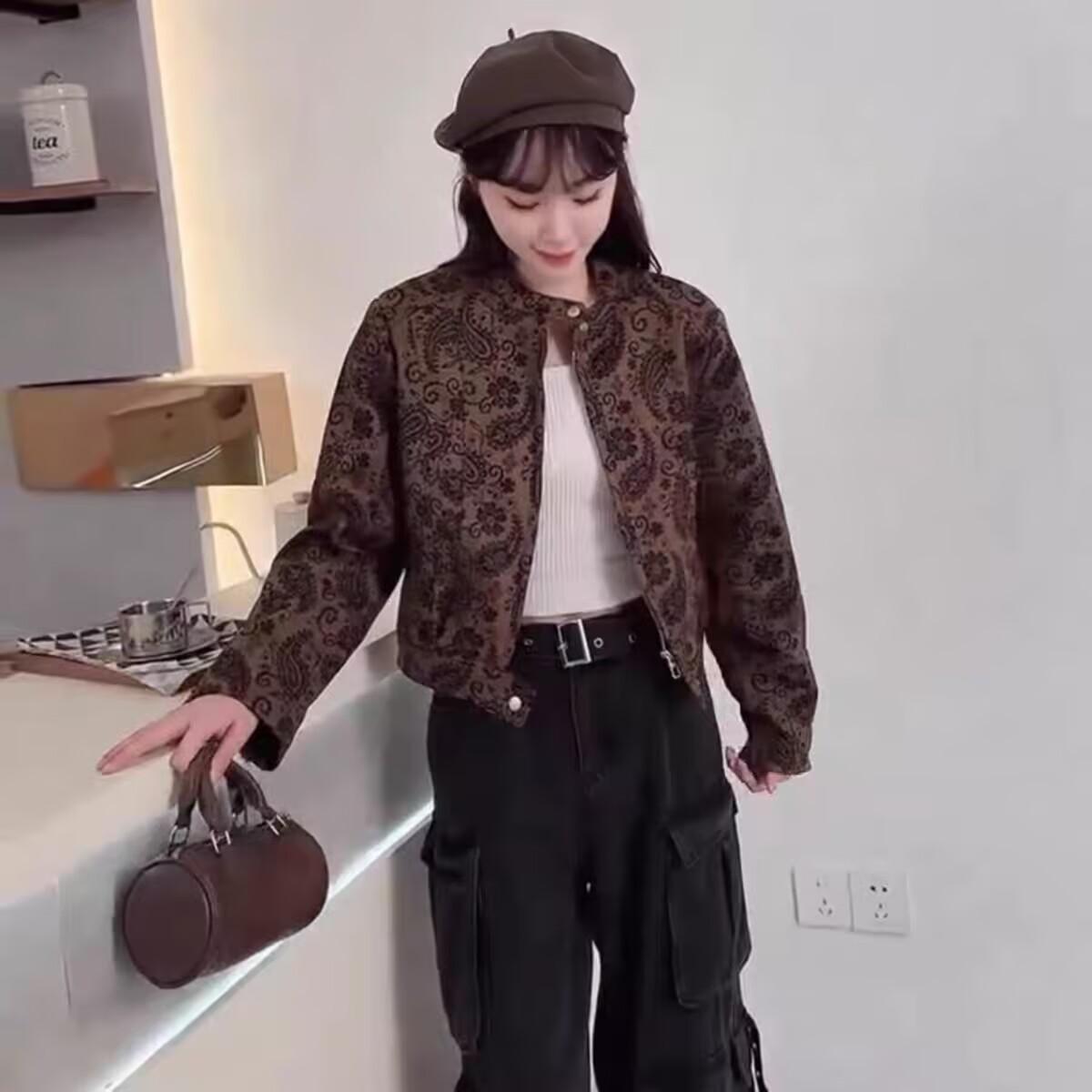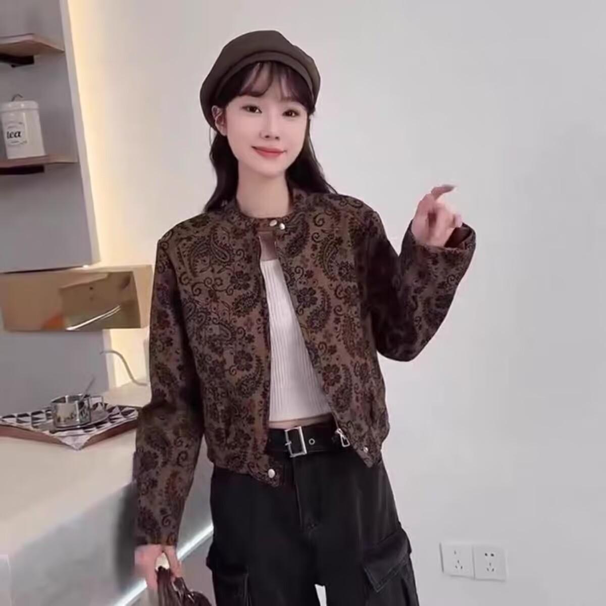 Popular Chaqueta Corta con Cremallera de Cuello Alto Retro de Gama Alta con Estampado de Leopardo para Mujer 25 Otoño Nueva Moda Chaqueta Top Talla Pequeña
