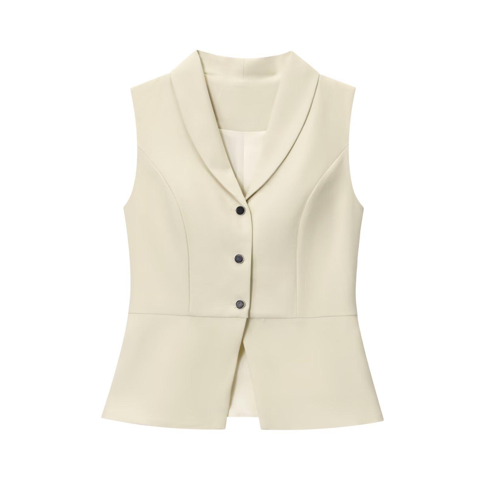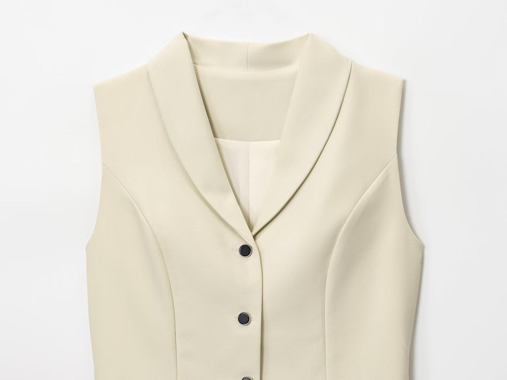 Z Estilo transfronterizo europeo y americano 2025 nueva moda temperamento retro francés solapa sin mangas chaleco adelgazante ceñido a la cintura